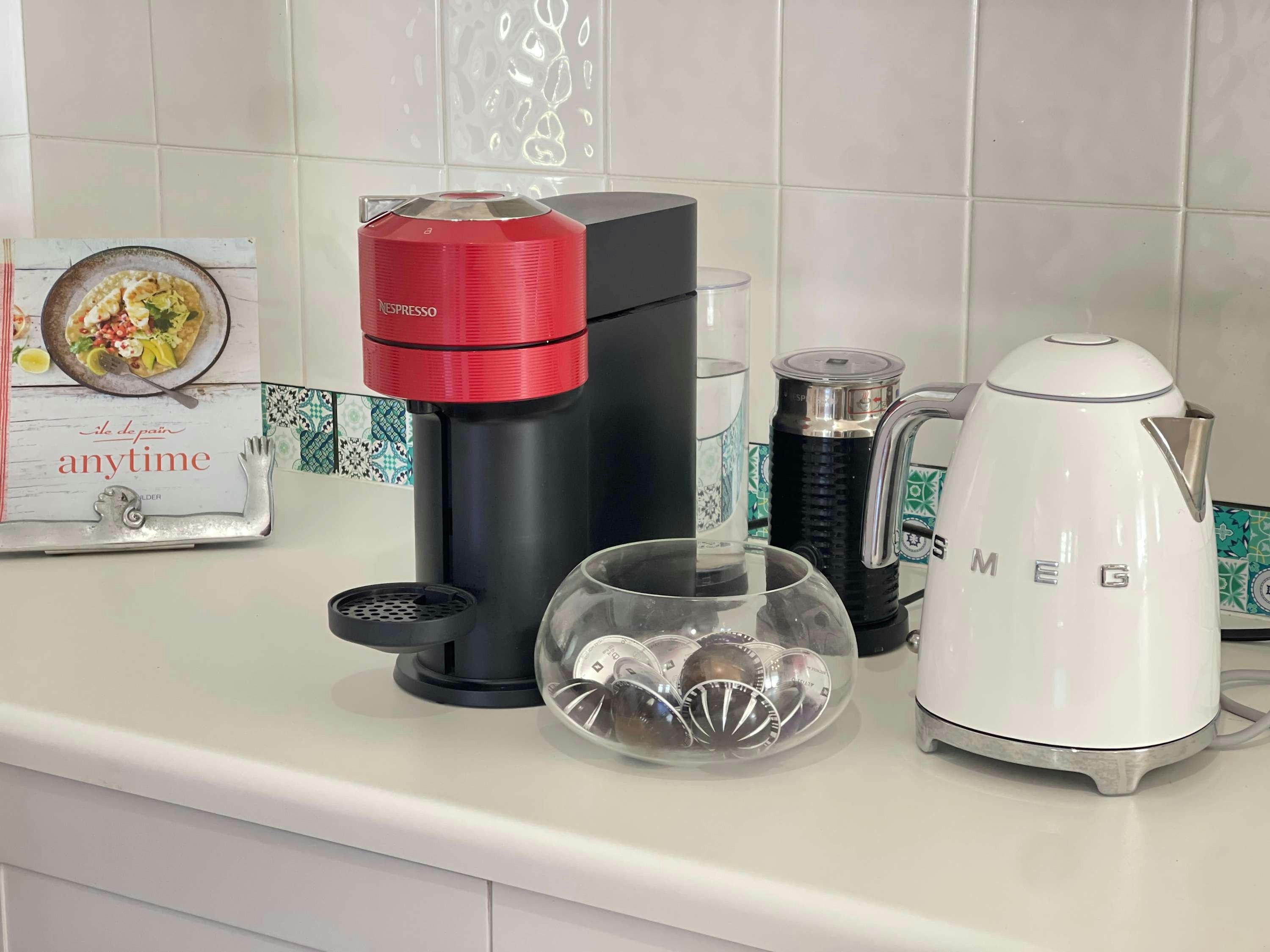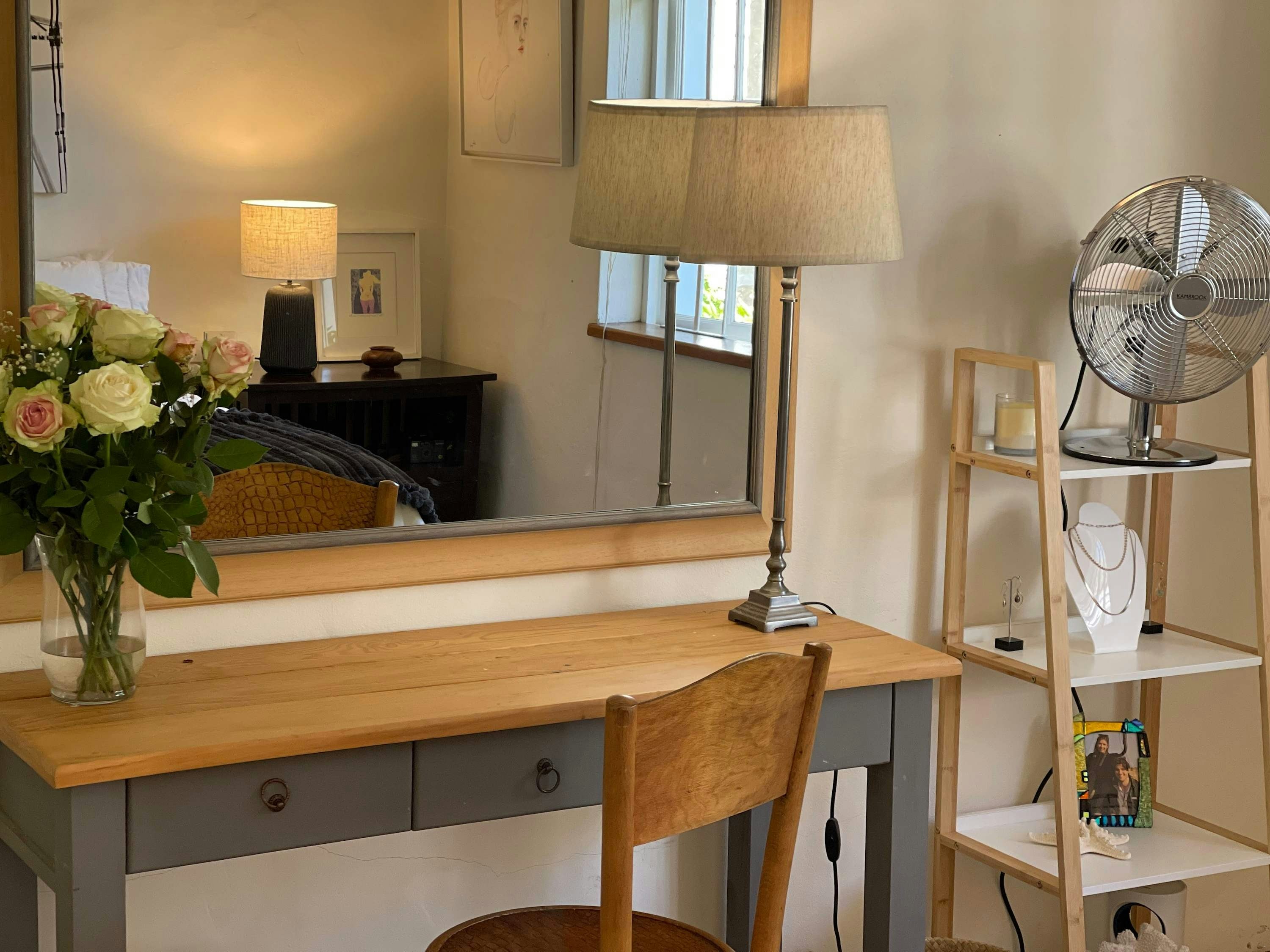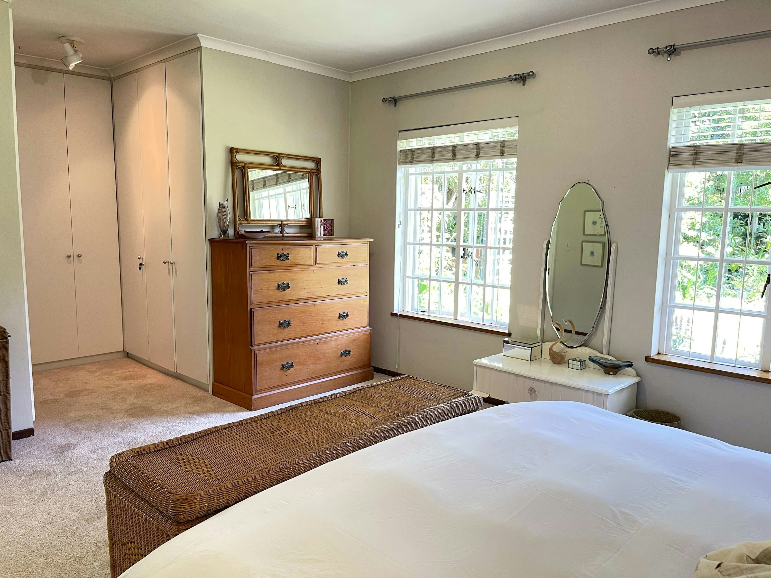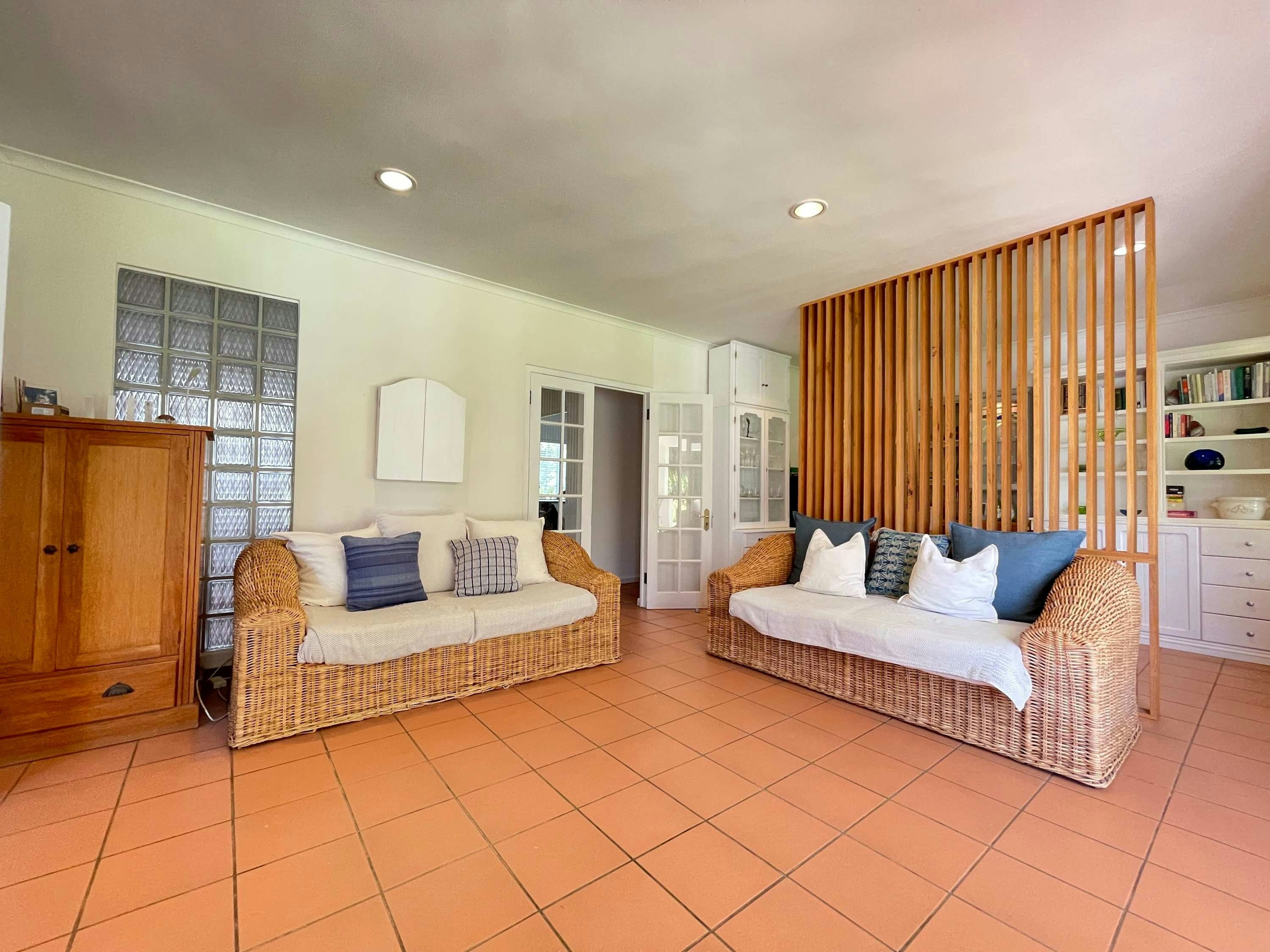 The kitchen is equipped with a fridge-freezer, gas stove, oven, microwave, dishwasher, cutlery and crockery and tea- and coffee-making facilities. A washing machine and tumble dryer is available for the guests’ convenience. The living area is furnished with comfortable couches, a TV with DStv and Netflix, a fireplace and a dining table.