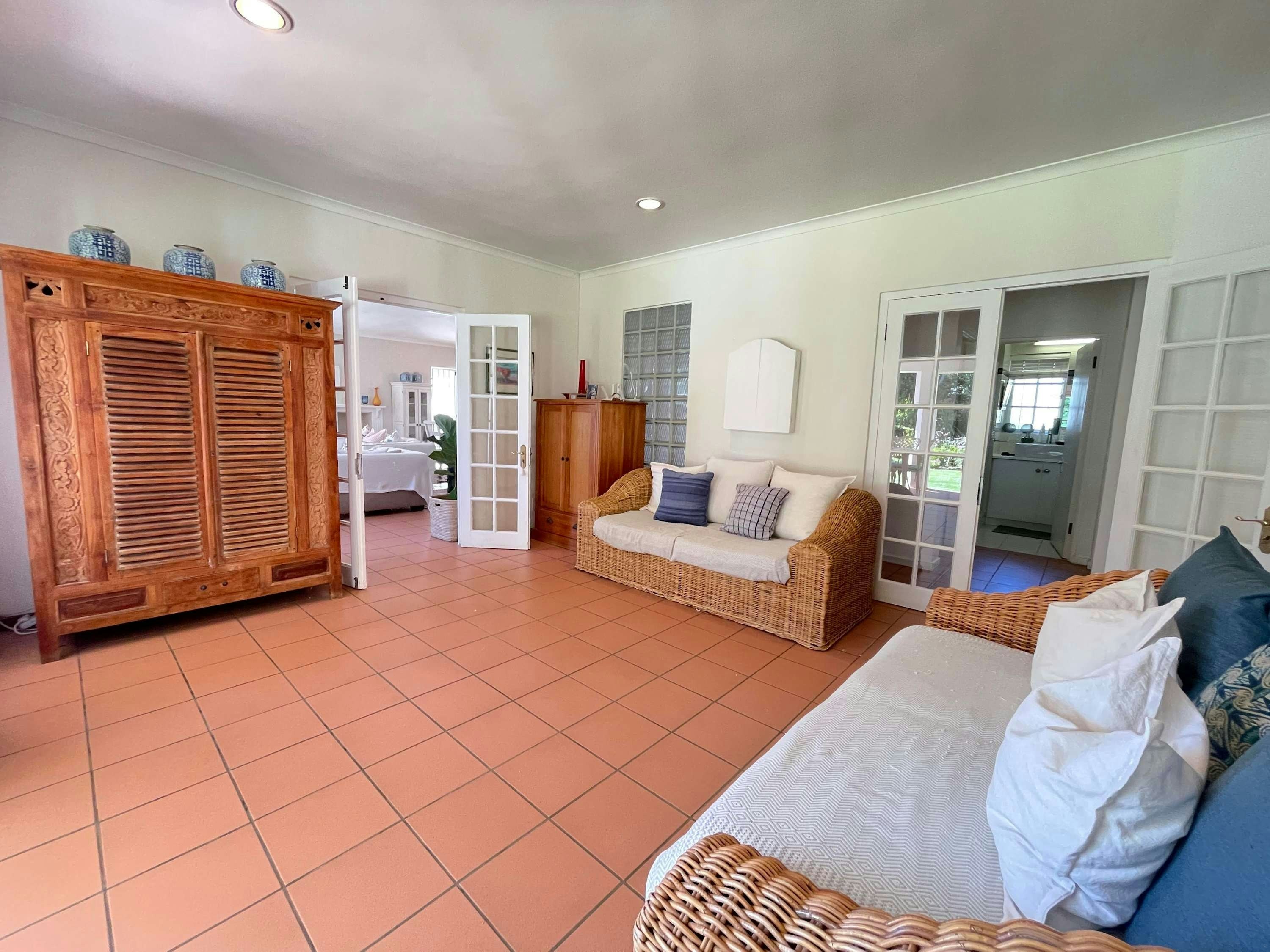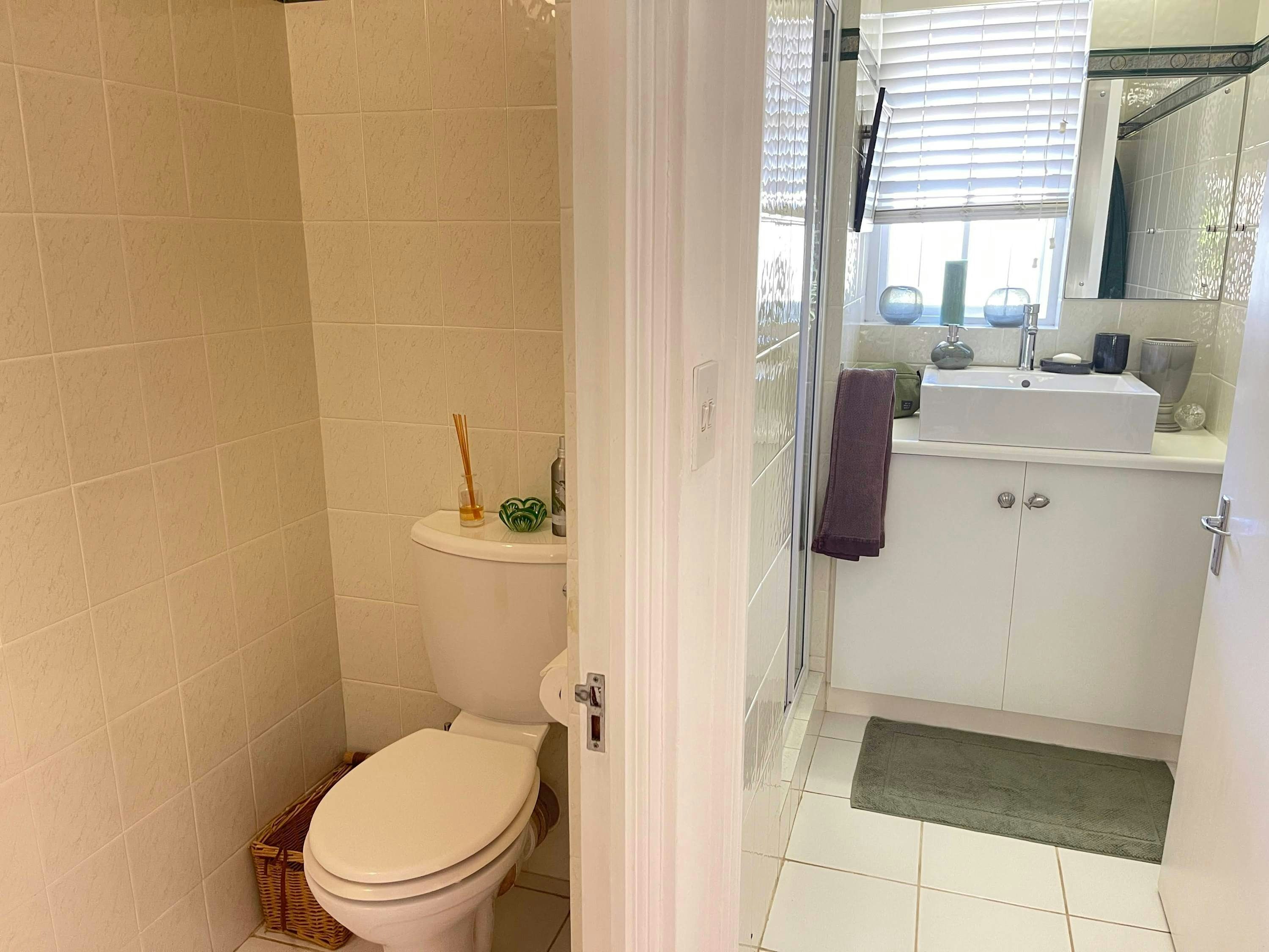The spacious double-storey villa features 3 bedrooms and 3 bathrooms and can accommodate up to 6 guests. The first bedroom is furnished with a king-size bed and has an en-suite bathroom that is fitted with a bath, shower, washbasin and toilet. The second bedroom is furnished with a double bed and has an en-suite bathroom fitted with a bath. The third bedroom is furnished with a queen-size bed and makes use of a shared bathroom fitted with a shower, washbasin and an adjacent toilet. Linen and bath towels are provided, however guests are required to bring their own beach towels.
