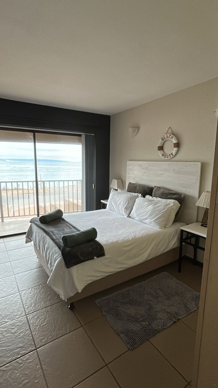 Dié woonstel teen die see het 'n 180°-uitsig oor die see en strandmeer. Die hoofslaapkamer lei na 'n balkon met 'n see-uitsig en 'n dubbelbed en die tweede slaapkamer het 2 enkelbeddens. Die ruim badkamer het 'n stort en word gedeel. Die kombuisie is met 'n yskas, oondjie, tweeplaatstoof, mikrogolfoond en 'n ketel toegerus. Die oopplan-leefarea het slaapbank, ingeboude braai, WiFi en DStv en lei na 'n balkon met 'n uitsig oor die see.