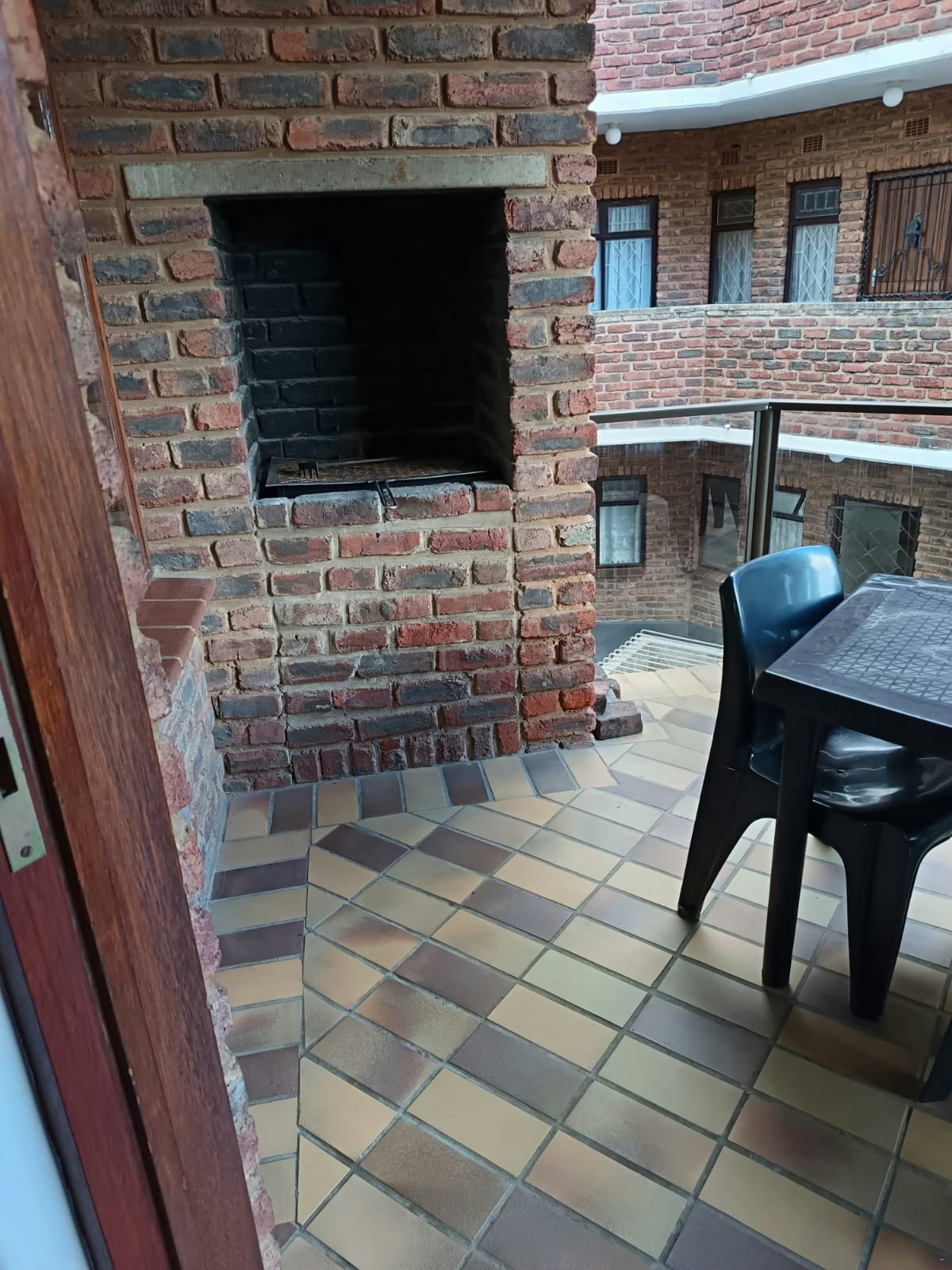 Die skuifdeur lei na 'n stoep met 'n etenstafel met sitplek vir 4 gaste en 'n ingeboude braai. Gaste het ook toegang tot 'n gemeenskaplike swembad en veilige parkeerplek.