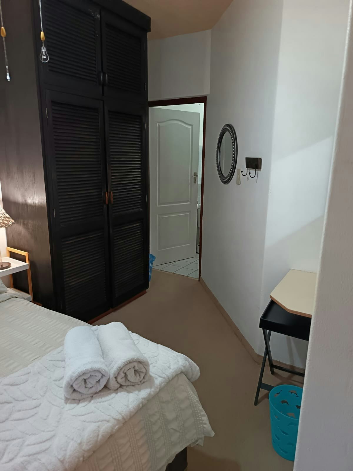 Die eenheid bied slaapplek aan 4 volwassenes en 2 kinders en beskik oor 2 slaapkamers en 2 badkamers. Die hoofslaapkamer het 'n dubbelbed en 'n en suite-badkamer met 'n bad, wasbak en 'n toilet. Die ander slaapkamer het 'n dubbelbed en 'n stapelbed vir kinders. Daar is 'n stort, wasbak en 'n toilet in die badkamer. Alle linne word voorsien, maar gaste moet hul eie handdoeke saambring.