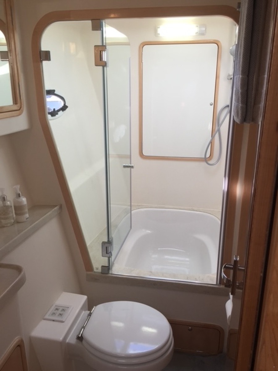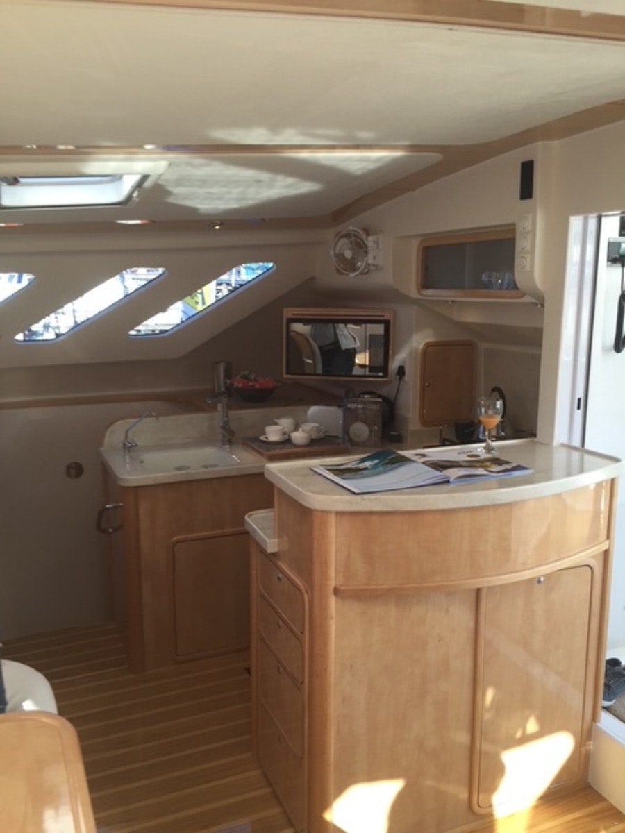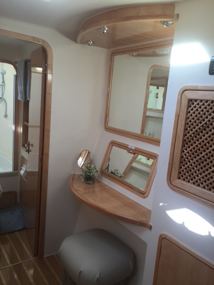 The boat can accommodate 4 guests in 2 bedrooms and 2 bathrooms. Both of the bedrooms are furnished with a double bed. The first bathroom is fitted with a shower fixed over the bath, washbasin and toilet, while the second bathroom is fitted with a shower, washbasin, and toilet. Linen, bath and swimming towels are provided.
