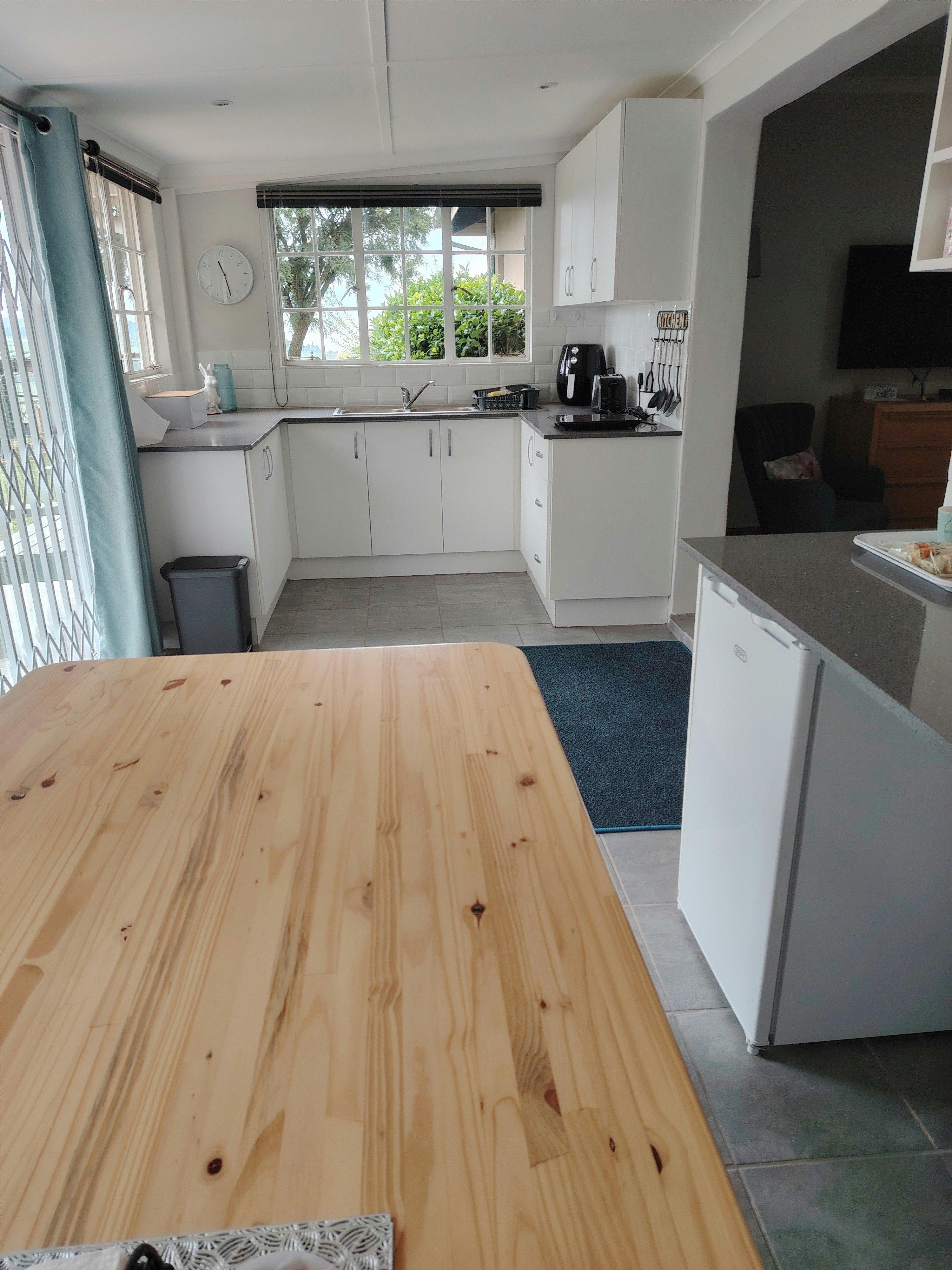 Die leefarea beskik oor 'n eetarea en 'n sitkamer met 'n gemaklike rusbank en TV. Die kombuis is toegerus met 'n yskas, enkel-induksieplaat, lugbraaier en 'n mikrogolfoond.