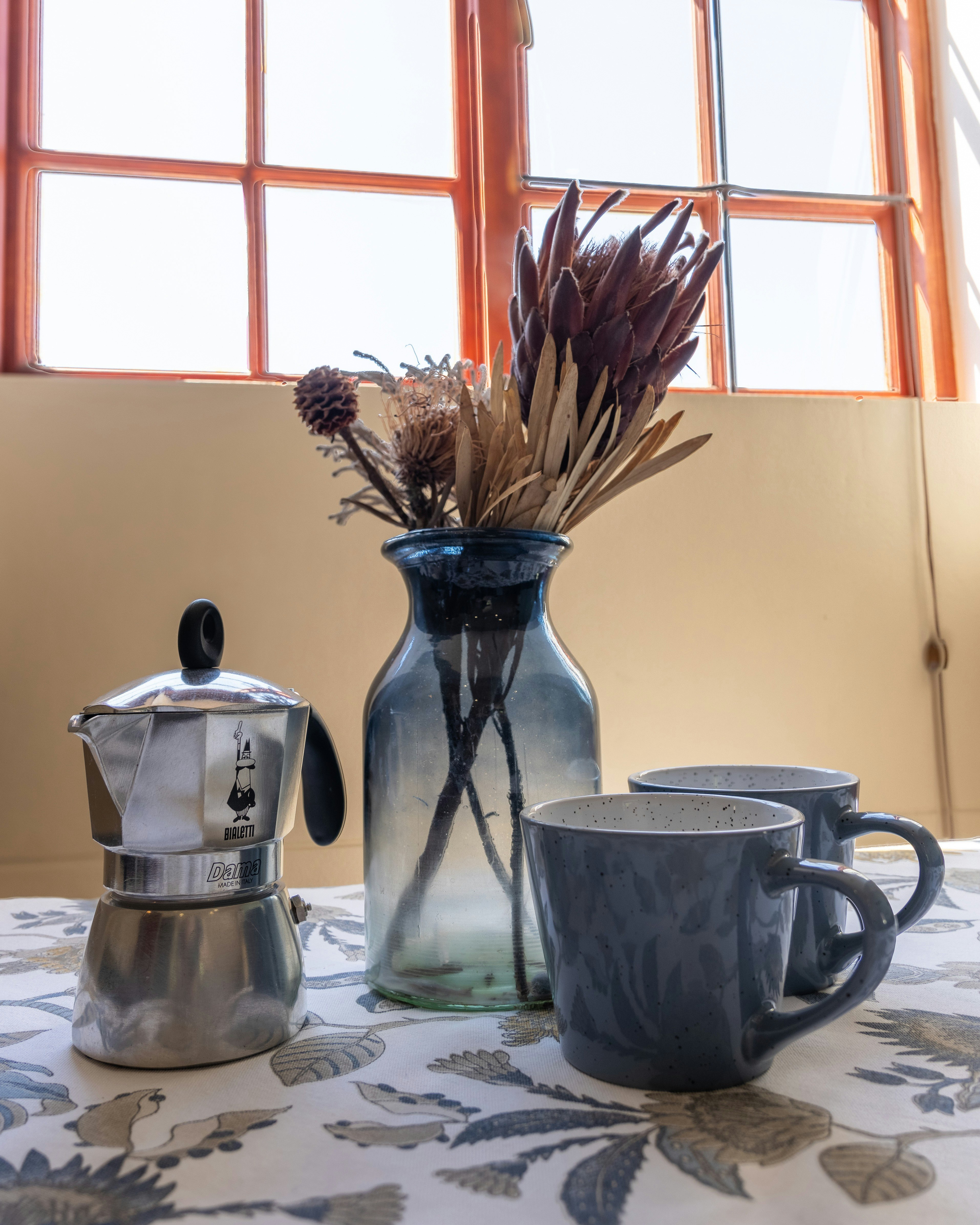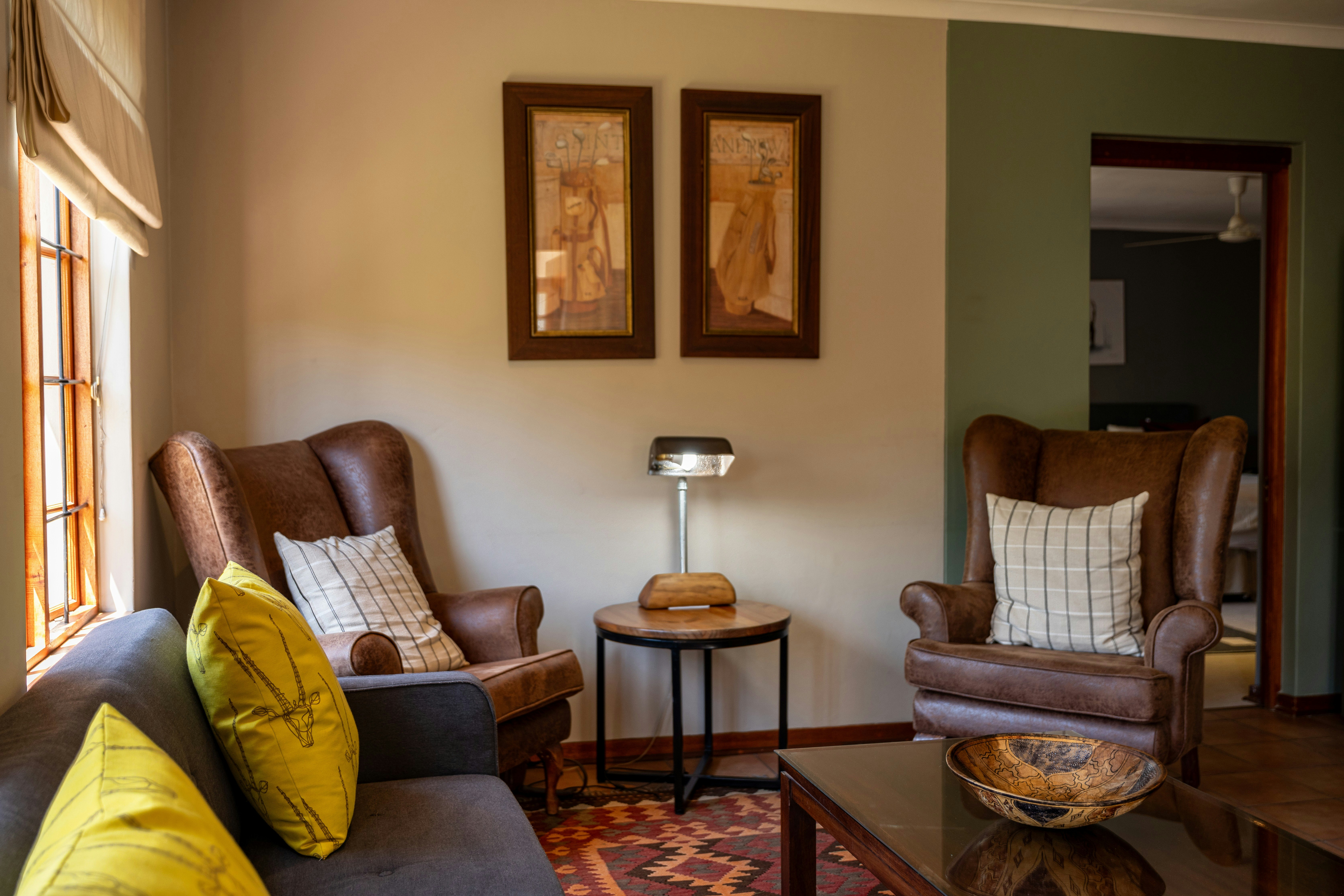Die leefarea lei na 'n stoep van 24 vierkante meter met 'n ingeboude braai. Dit bied 'n uitsig oor die Maluti-bergreeks, gemaklike stoele en 'n ronde tafel waar gaste maaltye saam kan geniet. Die Clarens Village Conservation is 500 m se stap weg en gratis permitte en kaarte is by gaste se verblyf ingesluit.