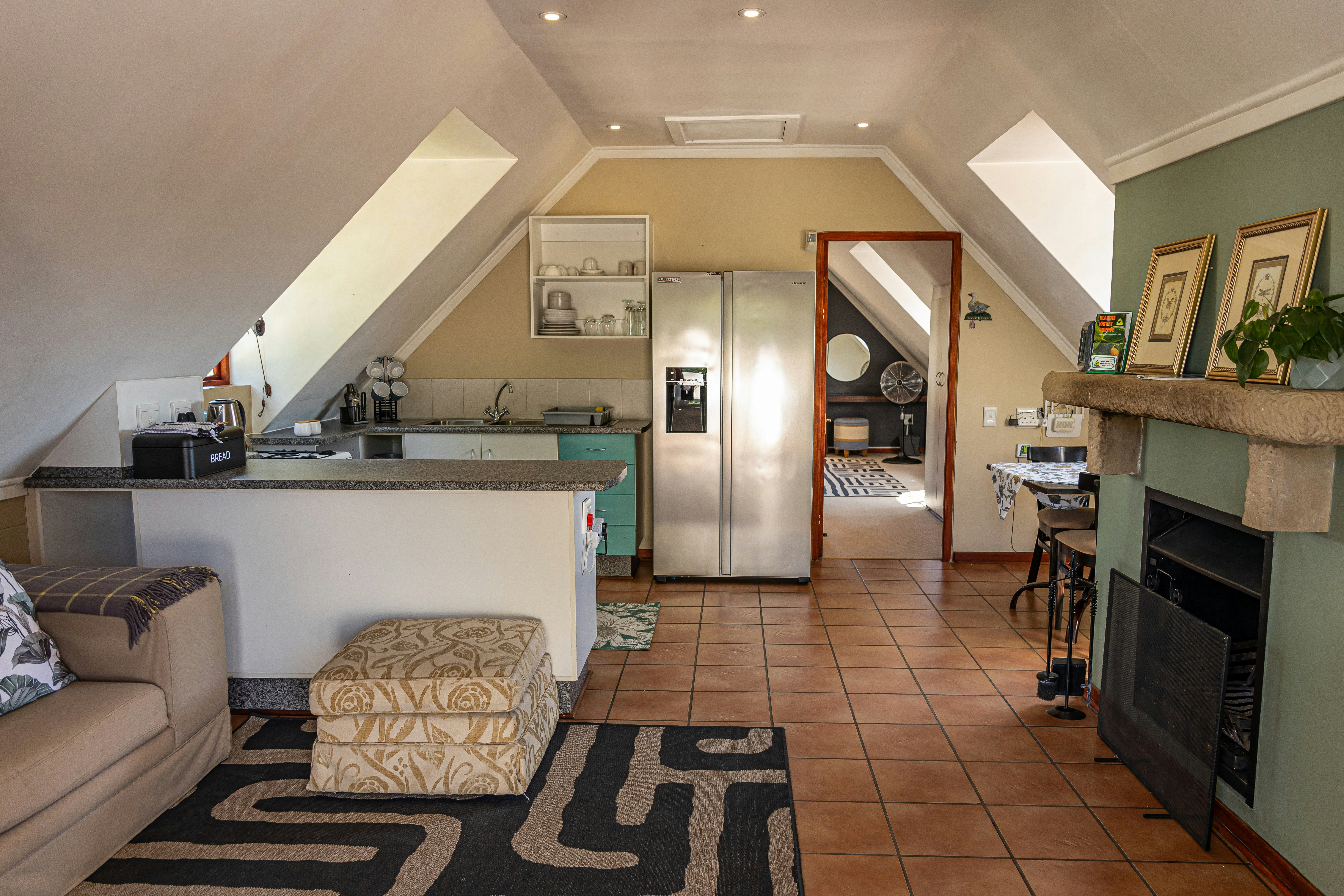 Hierdie ruim solderkamer bied slaapplek aan 2 gaste en beskik oor 1 slaapkamer, 1 badkamer en 'n oopplan-kombuis, -eetarea en -leefarea. Die slaapkamer het 'n dubbelbed en 'n lessenaar. Daar is oorgenoeg kasruimte en 'n en suite-badkamer met 'n bad, stort, wasbak en 'n toilet. Linne en handdoeke word voorsien.
