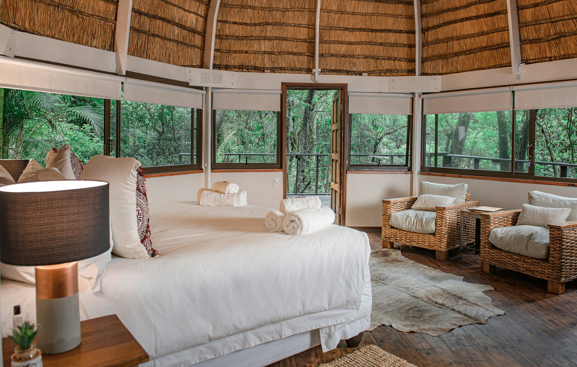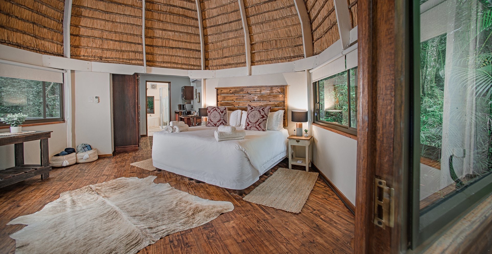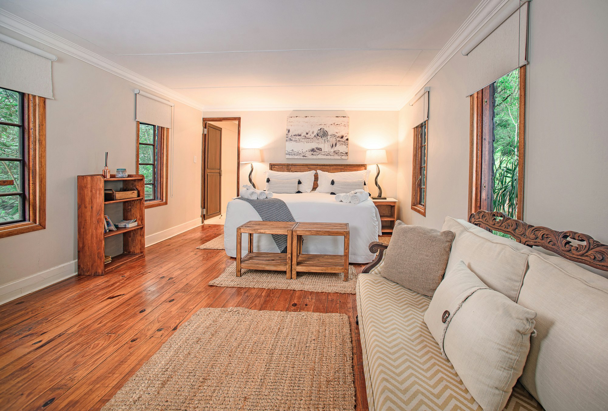 Accommodation comprises 4 Forest and River View Suites, the 2 Luxury Lake View Cottages, and the Luxury 2 Bedroom Lake View Suite. Each unit offers a lounge, tea- and coffee-making facilities, a microwave, a toaster and a bar fridge with refreshments which are available at an additional cost.