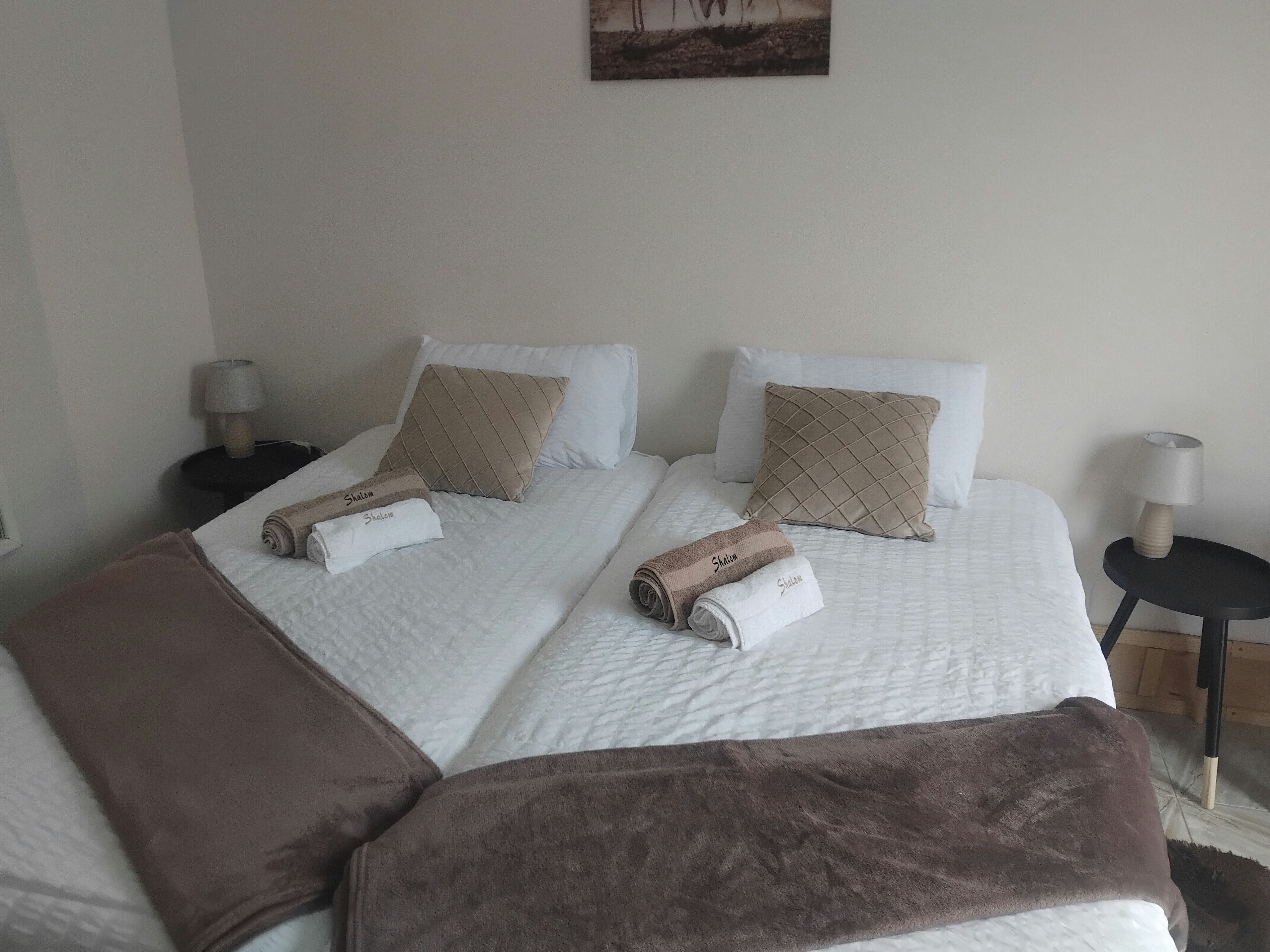Shalom bestaan uit 2 eenhede, wat slaapplek bied vir 5 gaste. Elke eenheid het 'n privaat badkamer en is toegerus vir selfsorg.