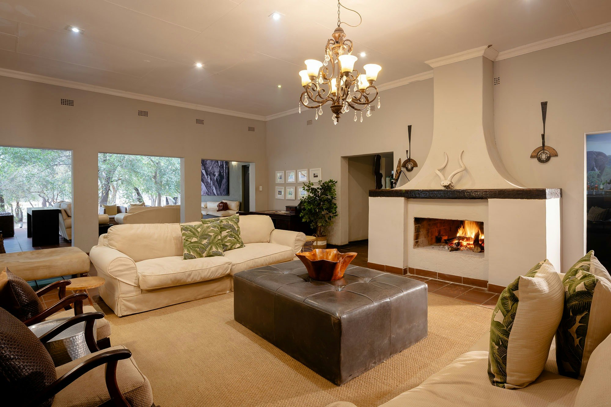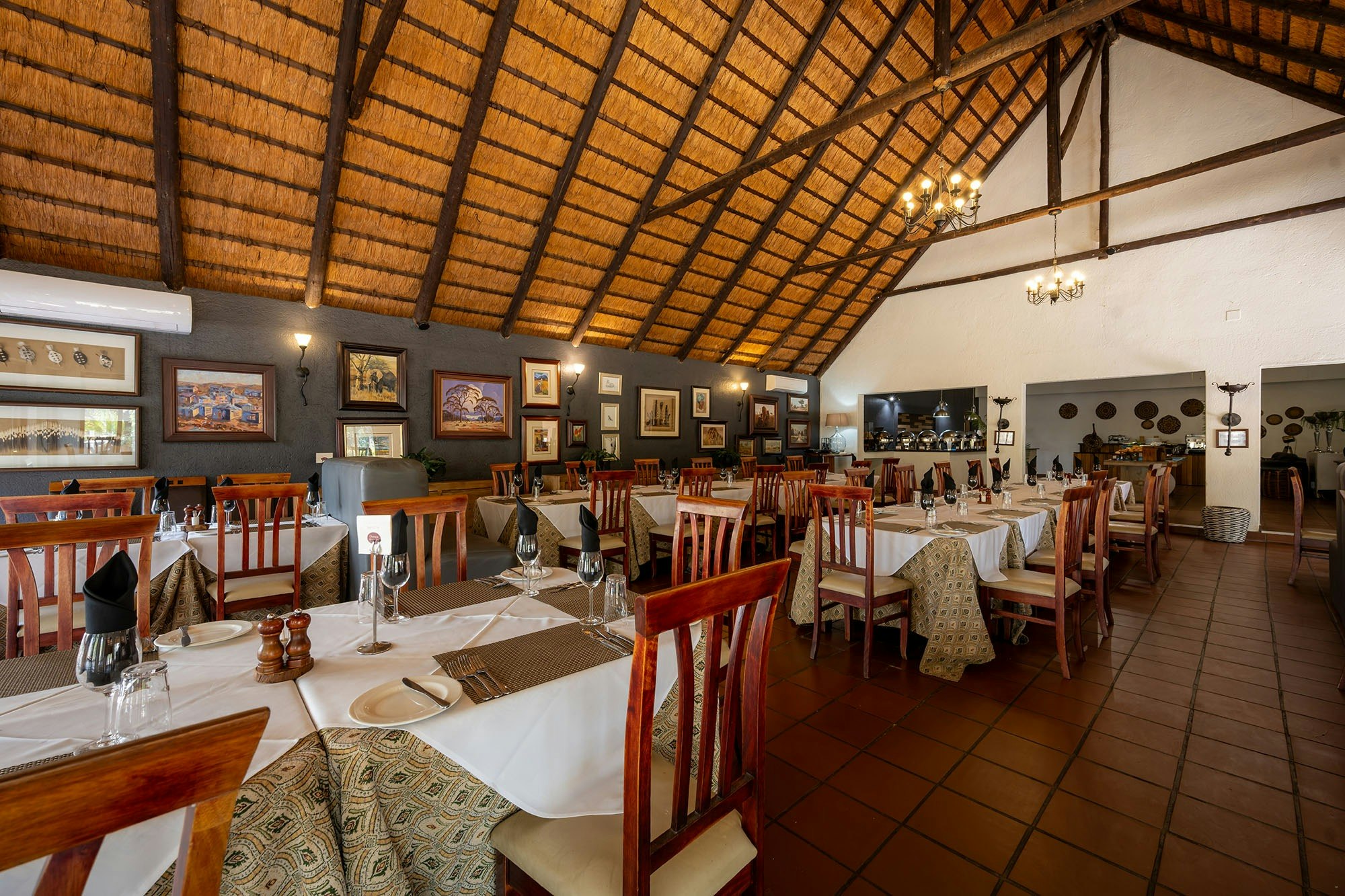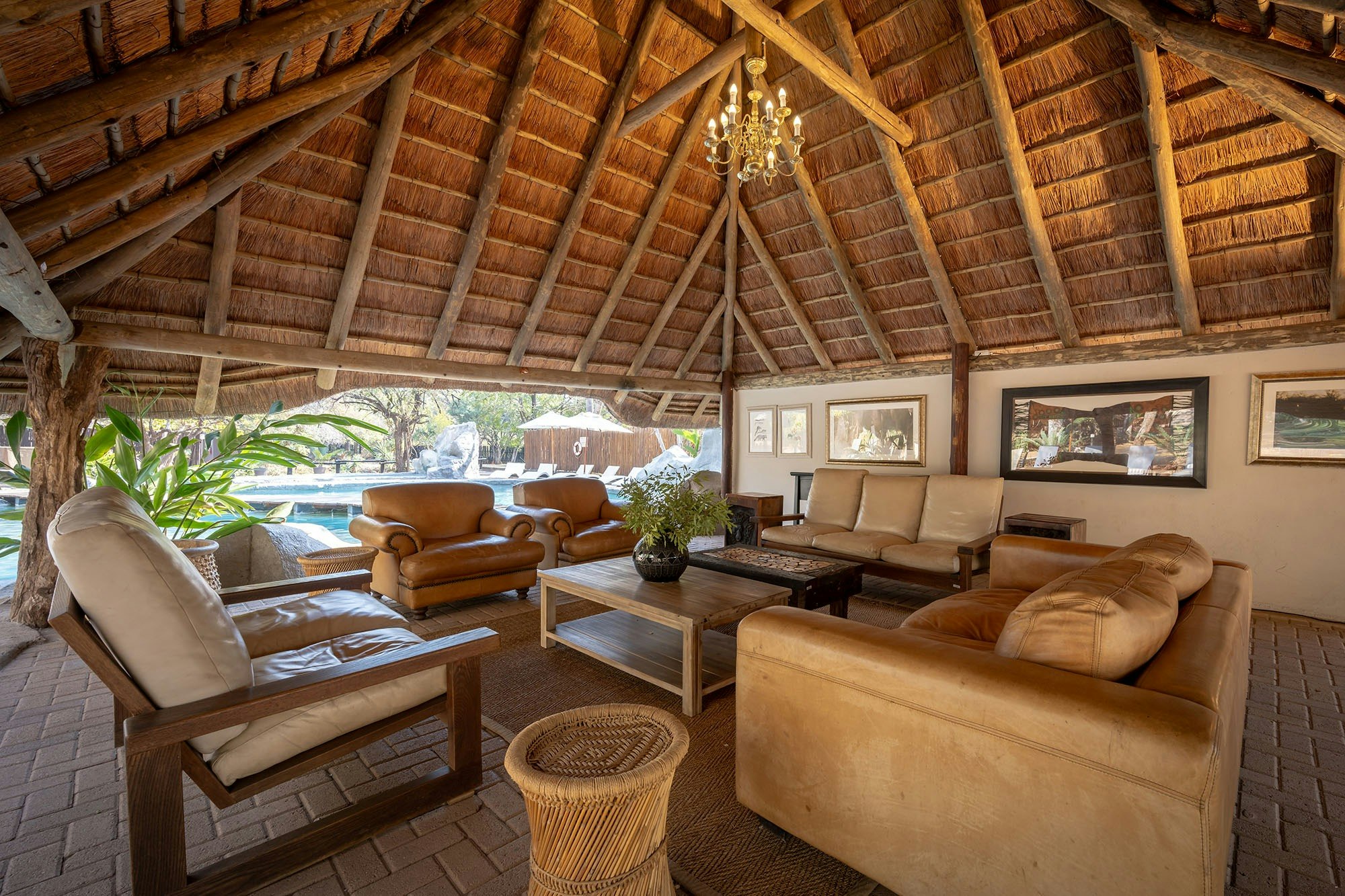 The lodge’s thatched suites are spacious, with a variety of room options to choose from. Each unit is furnished with comfortable beds and en-suite bathrooms fitted with either a shower, bath, or shower only, along with a toilet.