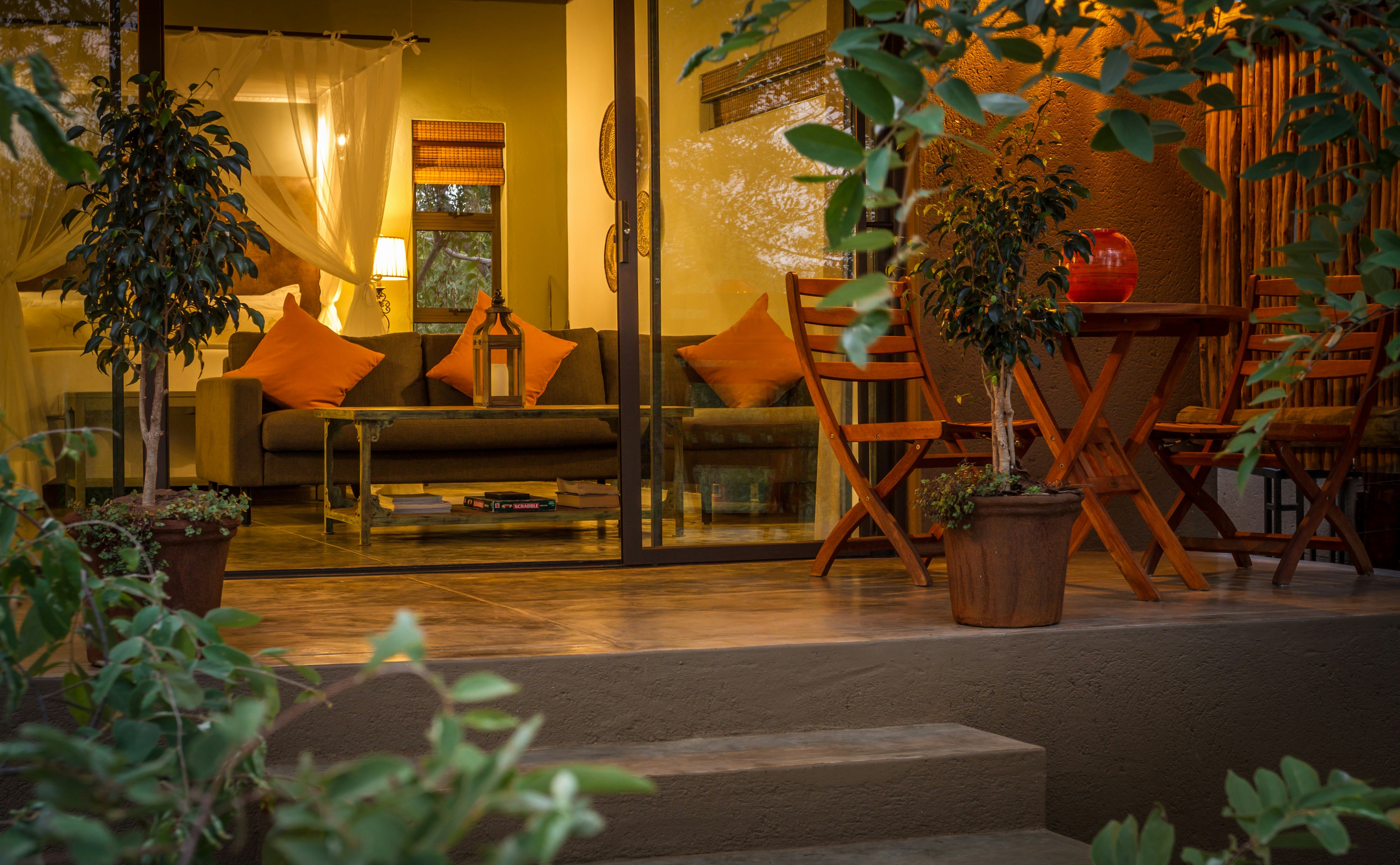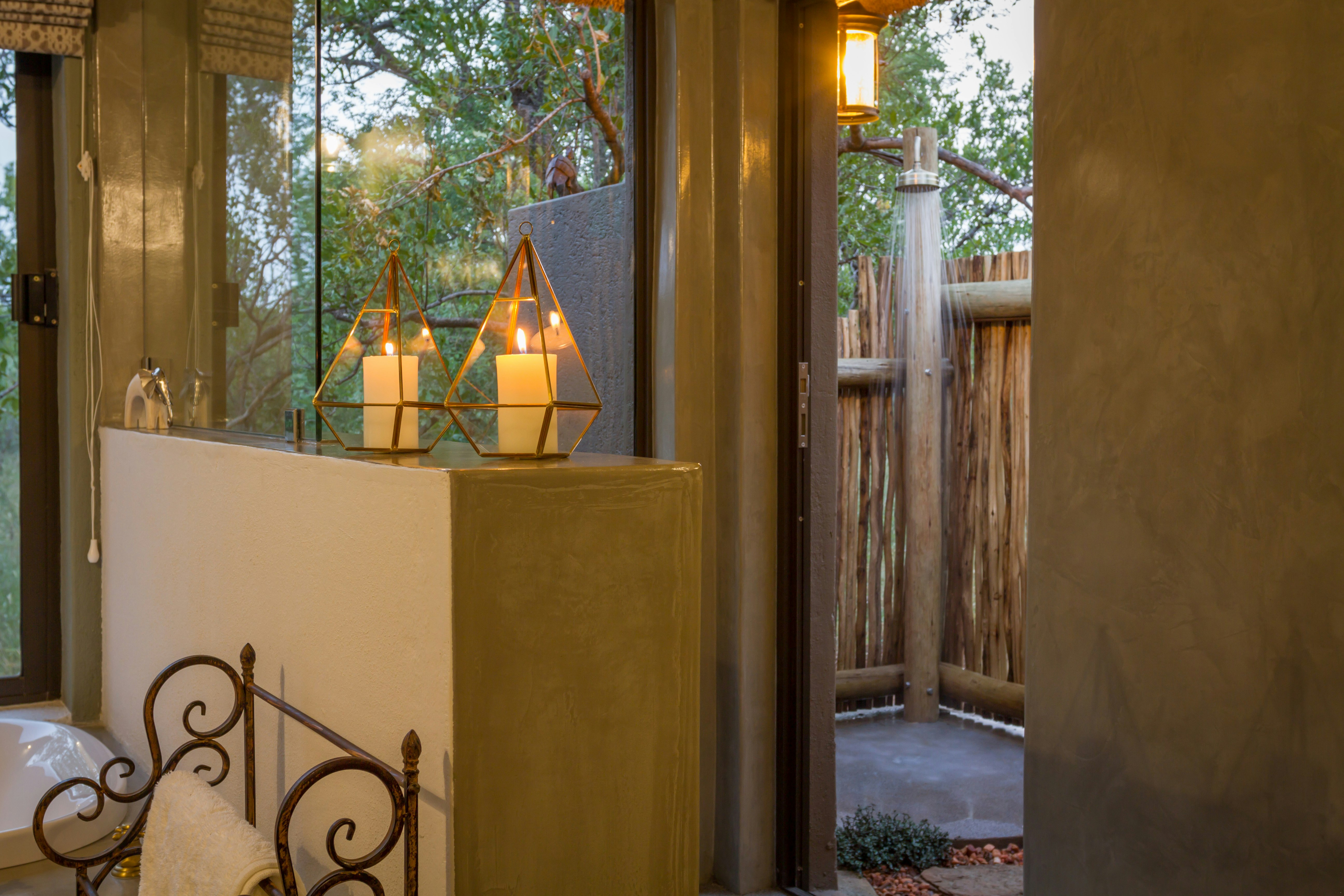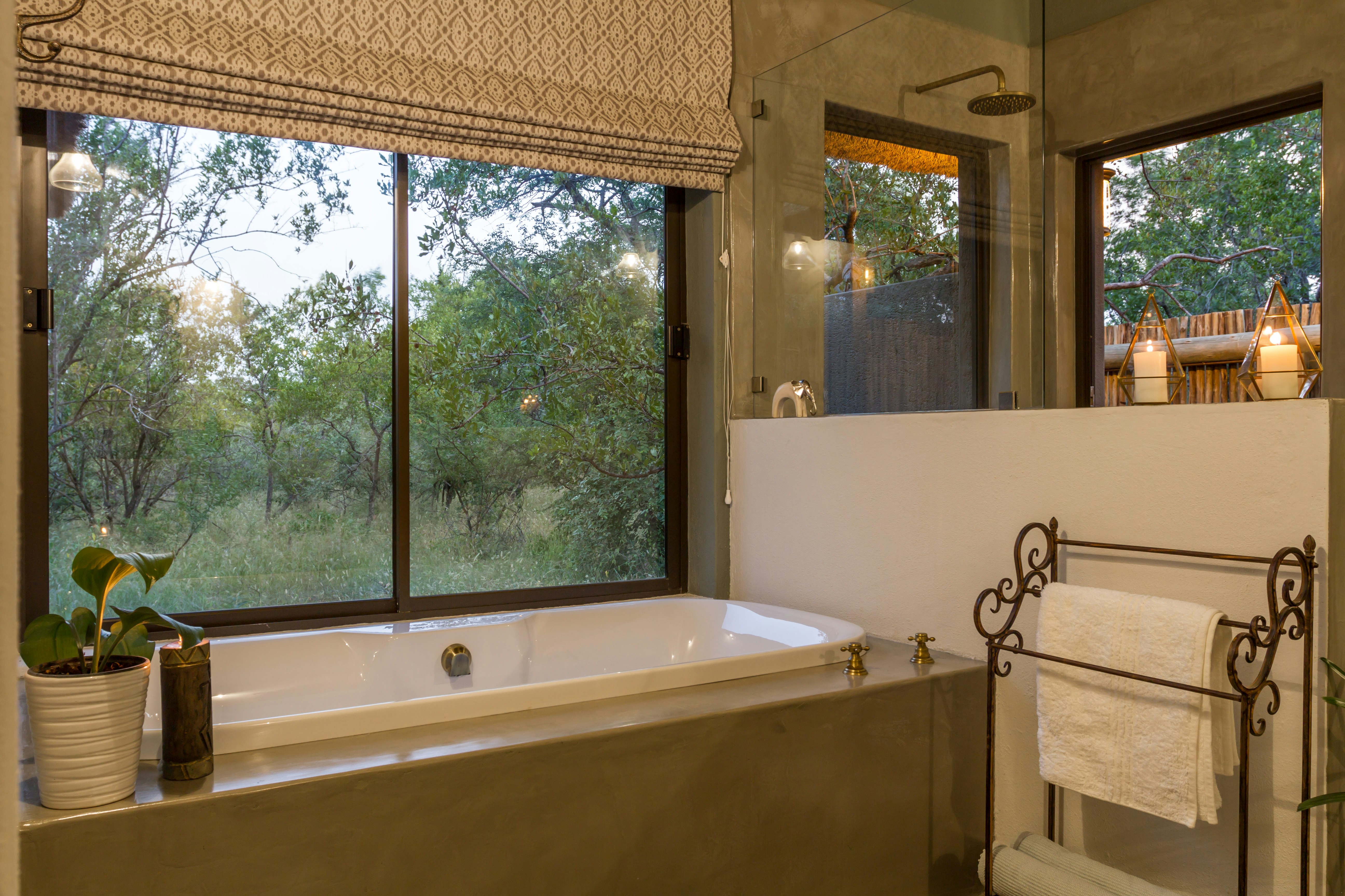 Die suite het lugversorging en die sitarea het 'n L-vormige rusbank. Die kombuis is met verhit-en-eetgeriewe soos 'n mikrogolfoond, klein skottelgoedwasser, ketel, broodrooster en 'n yskas toegerus. Die suite het skuifdeure wat na 'n onderdakstoep met 'n tafel en 2 stoele lei. Gaste kan daar sit en die bosuitsig aanskou en maaltye geniet. Gaste kan kyk hoe die wild verbyloop in die bos en die ryk voëllewe dophou.