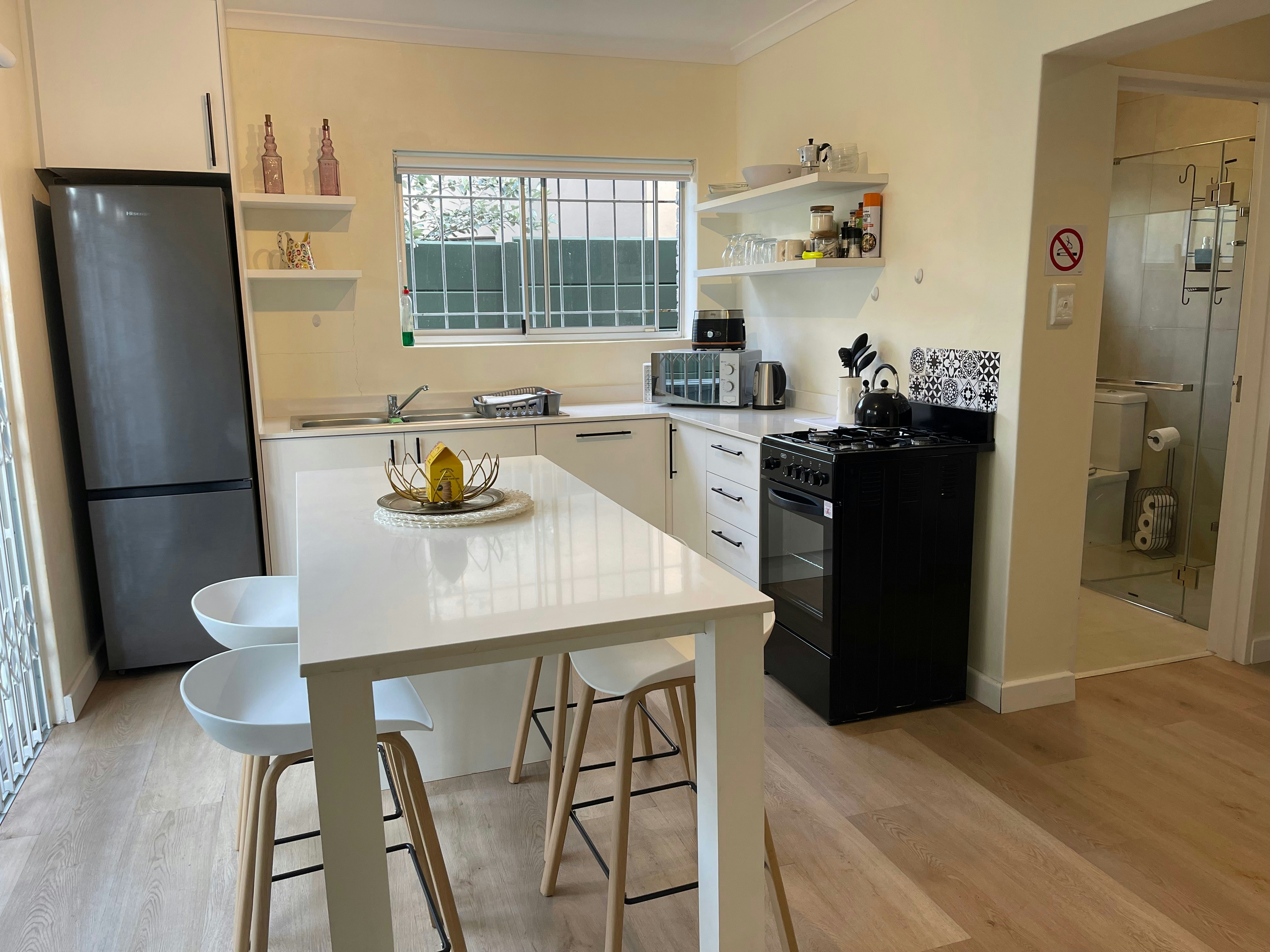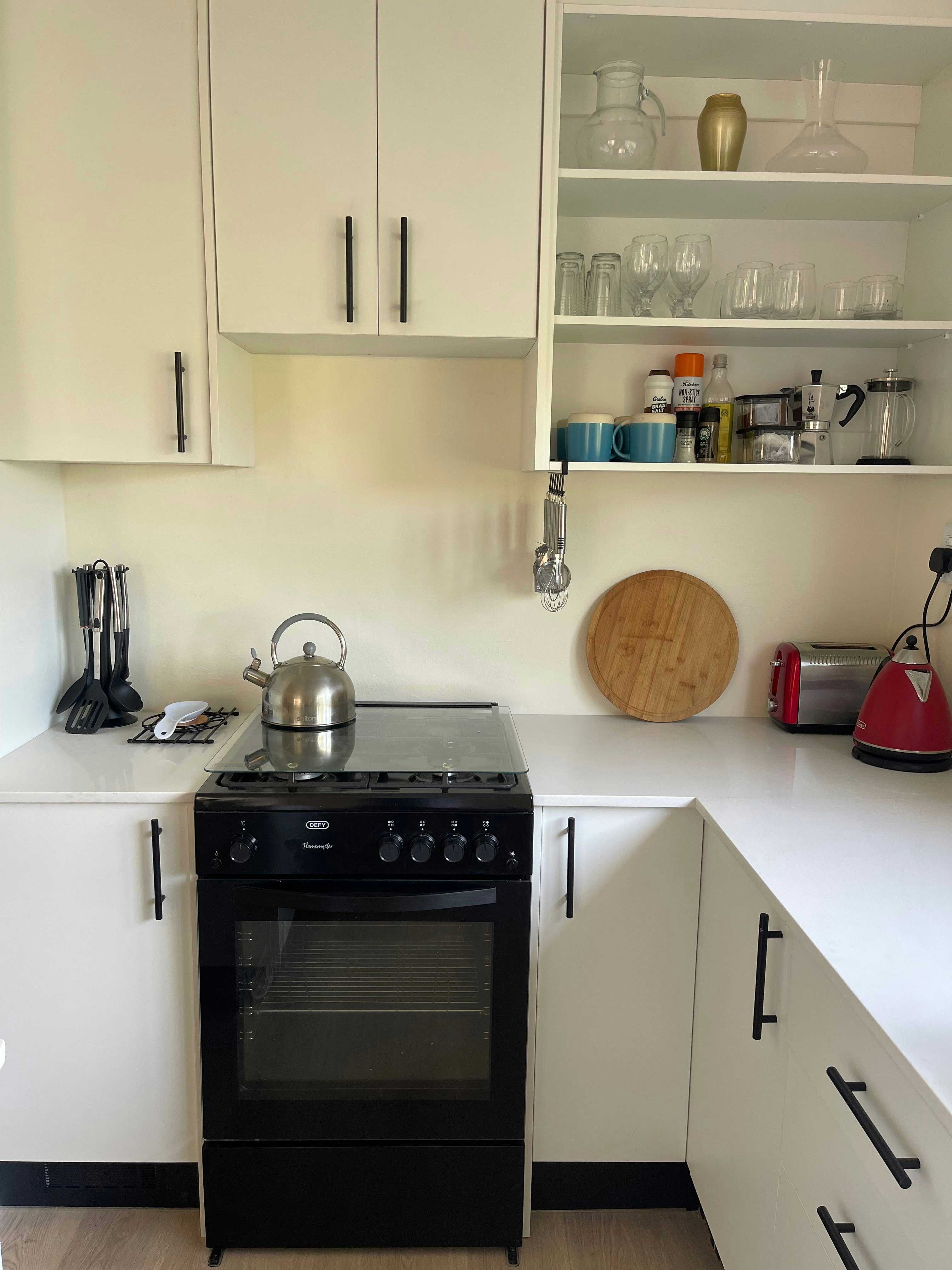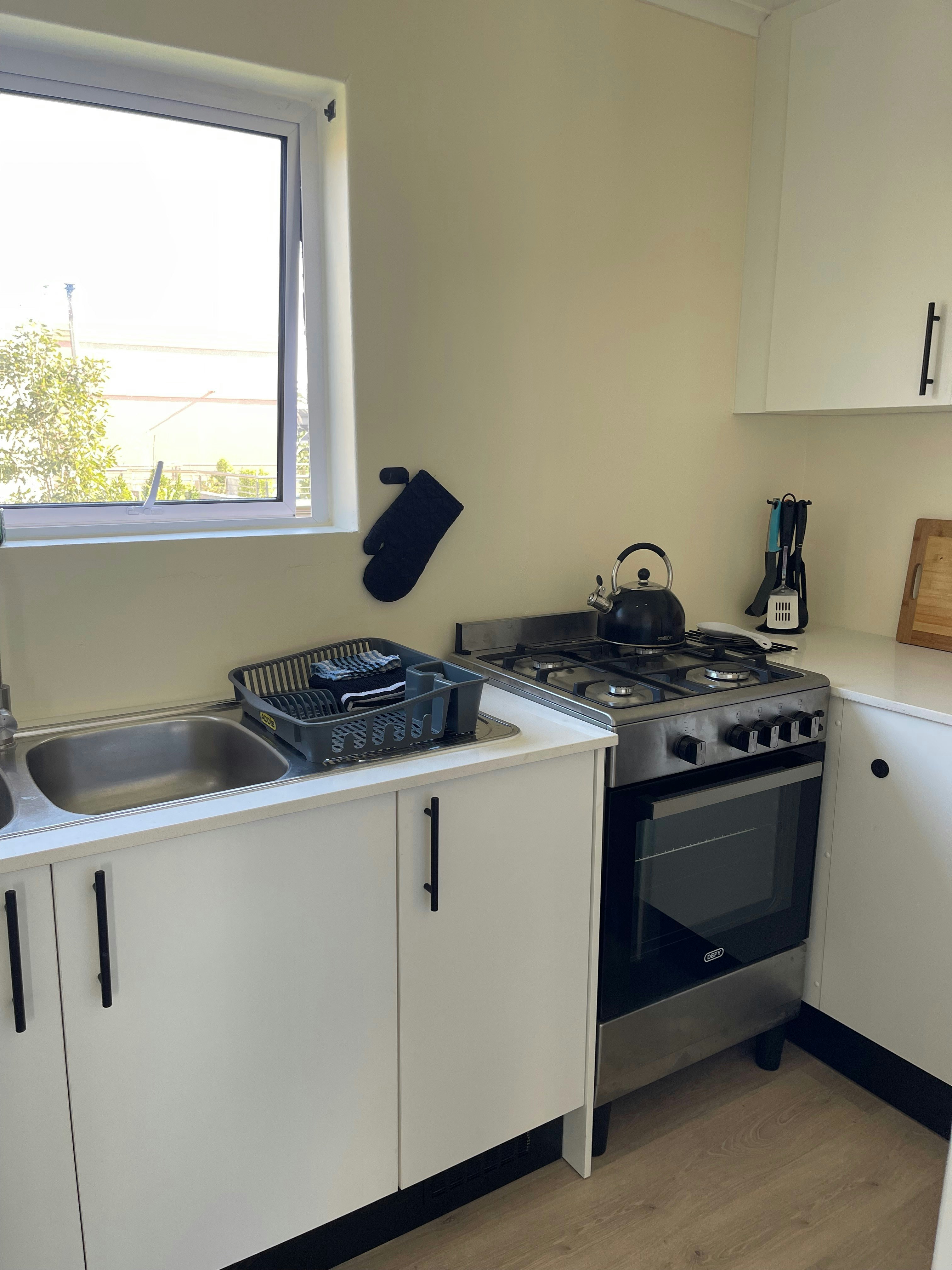 Die kombuis is volledig toegerus met 'n yskas-vrieskas, gasstoof en oond, mikrogolfoond, broodrooster, basiese eetgerei en breekware, sowel as tee- en koffiemaakgeriewe. Hierdie woonstel het 'n privaat binnehof met 'n ketelbraai en buitesitplek.