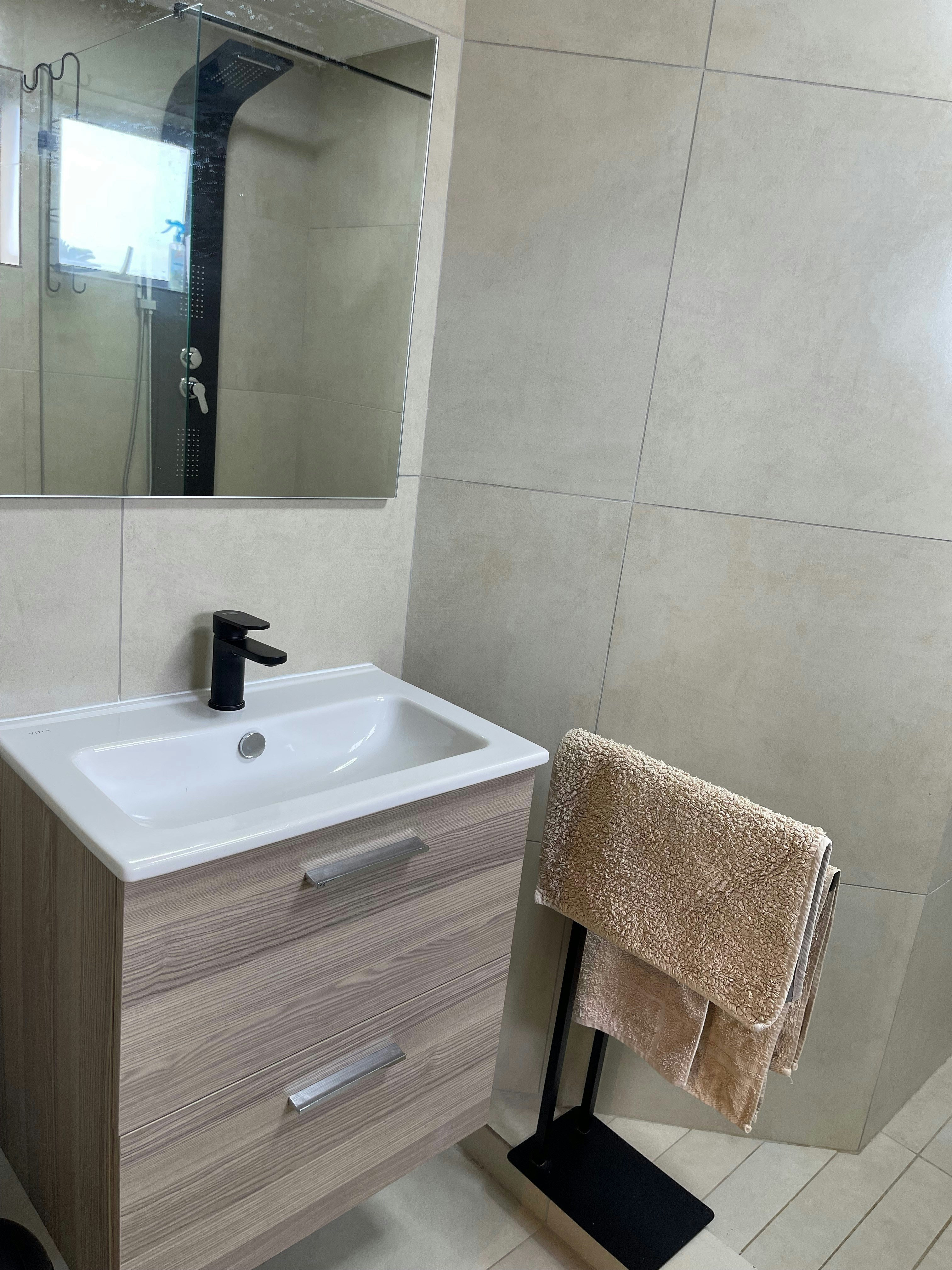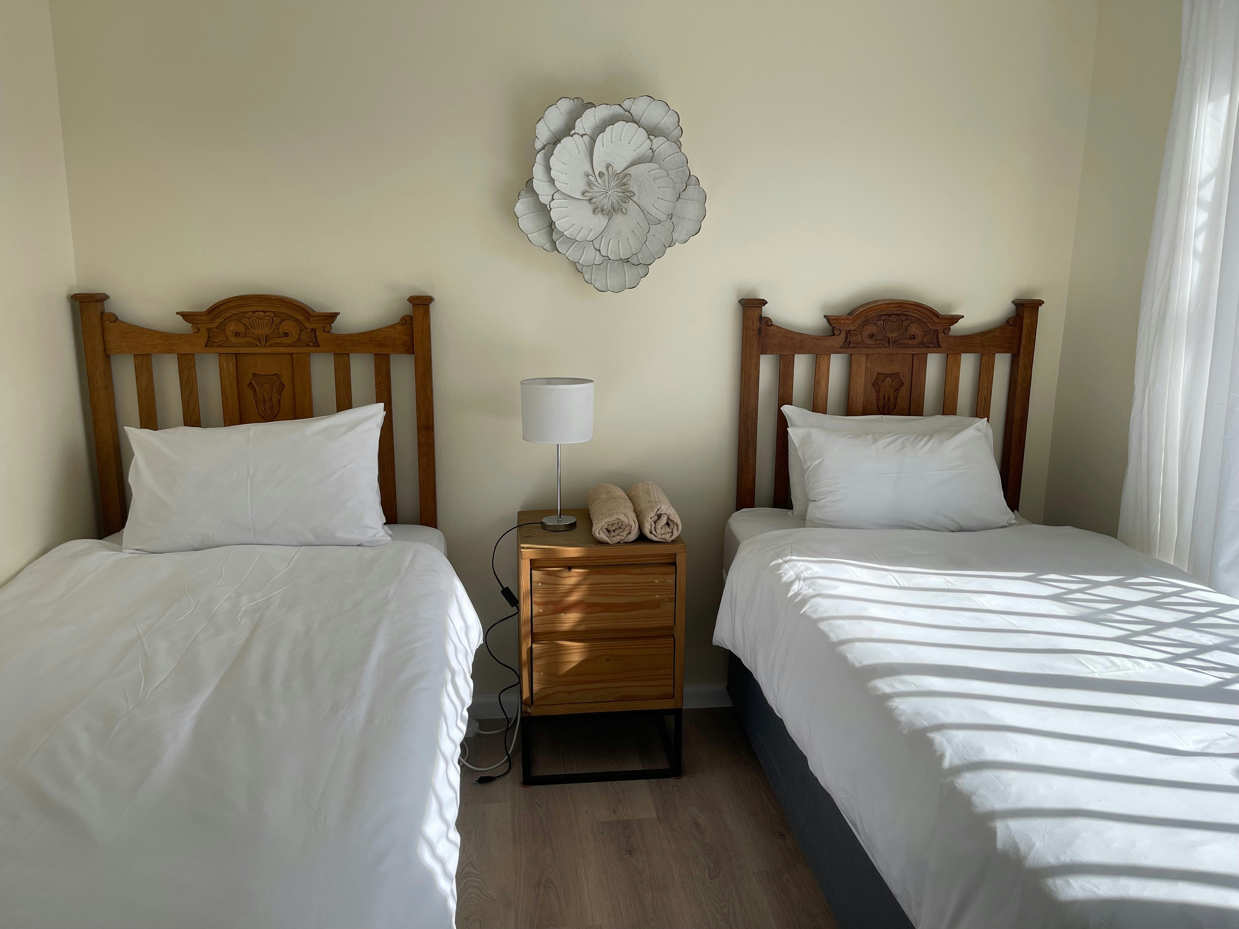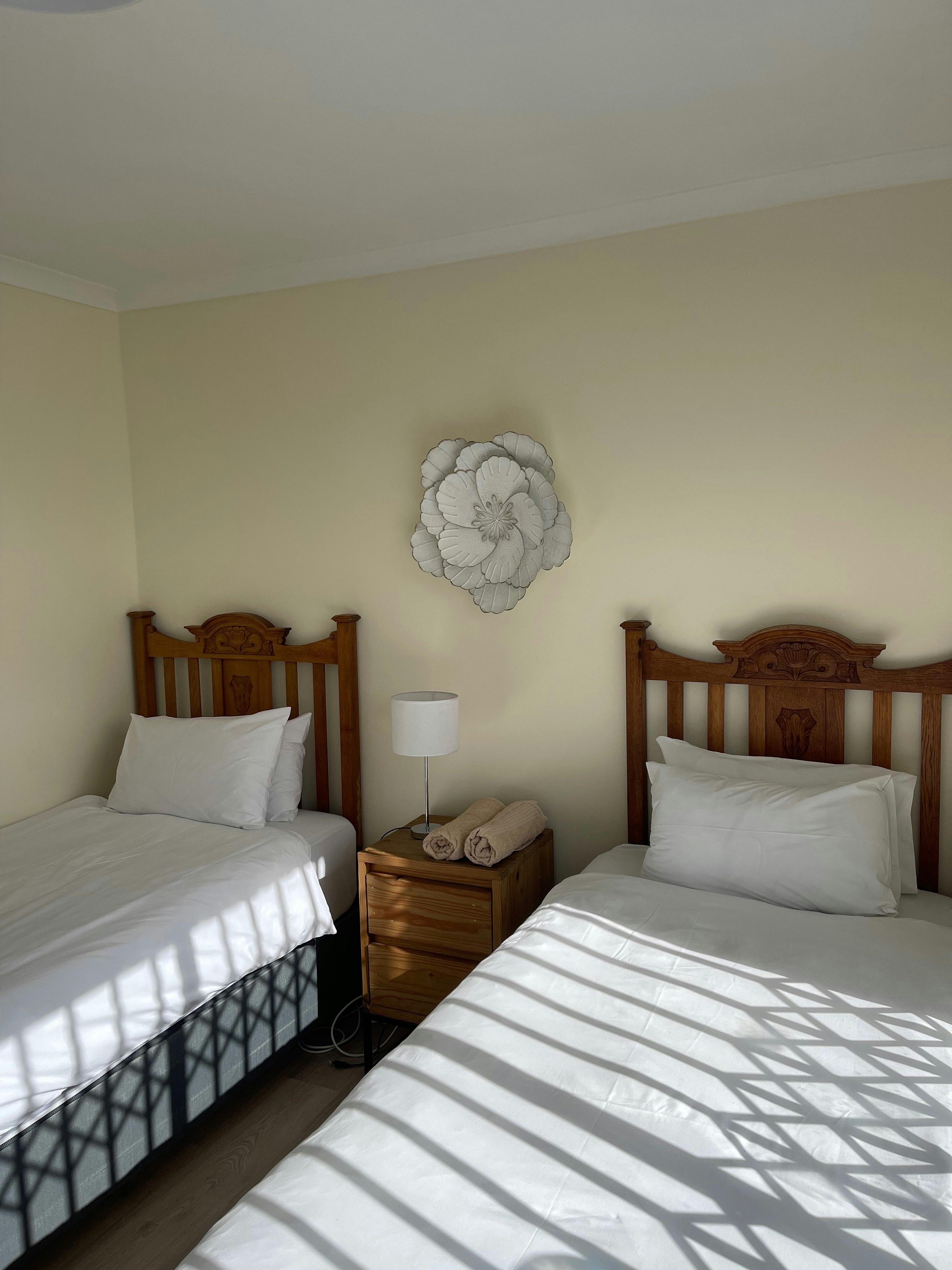 Ons bied twee woonstelle met 3 slaapkamers: Mountain en Ocean. Beide is 95 vk meter groot en bied gemaklik slaapplek vir tot 6 gaste. Elke woonstel beskik oor 3 slaapkamers en twee badkamers. Die hoofslaapkamer is gemeubileer met 'n koninggrootte-bed en 'n en suite-badkamer met 'n stort, toilet en wasbak. Die tweede en derde slaapkamers het elk 2 enkelbeddens. Die tweede badkamer bied 'n groot stort, wasbak en toilet.