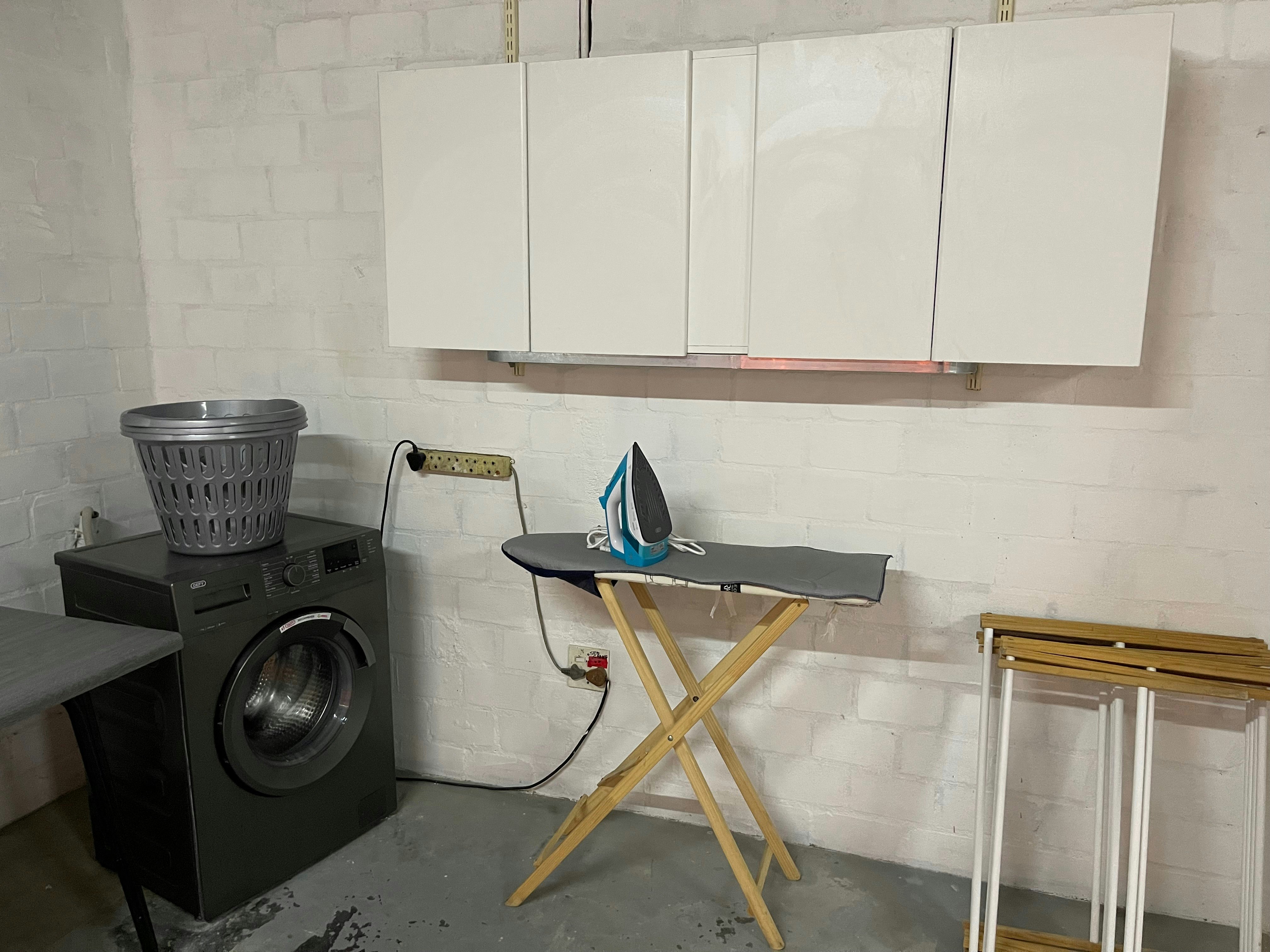 Bykomende geriewe: Gratis parkeerplek op die perseel is beskikbaar op die ruim opritte. 'n Gedeelde wasmasjien en wasgoedrakke word vir gaste se gebruik voorsien.