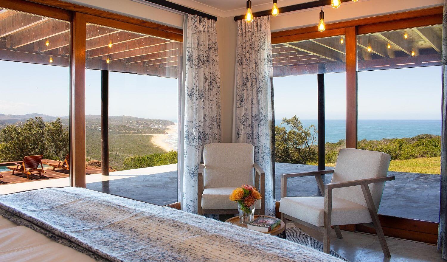 Accommodation is available in 8 guest suites which are able to accommodate 2 adults, and a 2 bedroom suite accommodating 4 people. The suites are perched high on the dunes overlooking the Indian Ocean, surrounded by a 600-hectare pristine fynbos reserve.