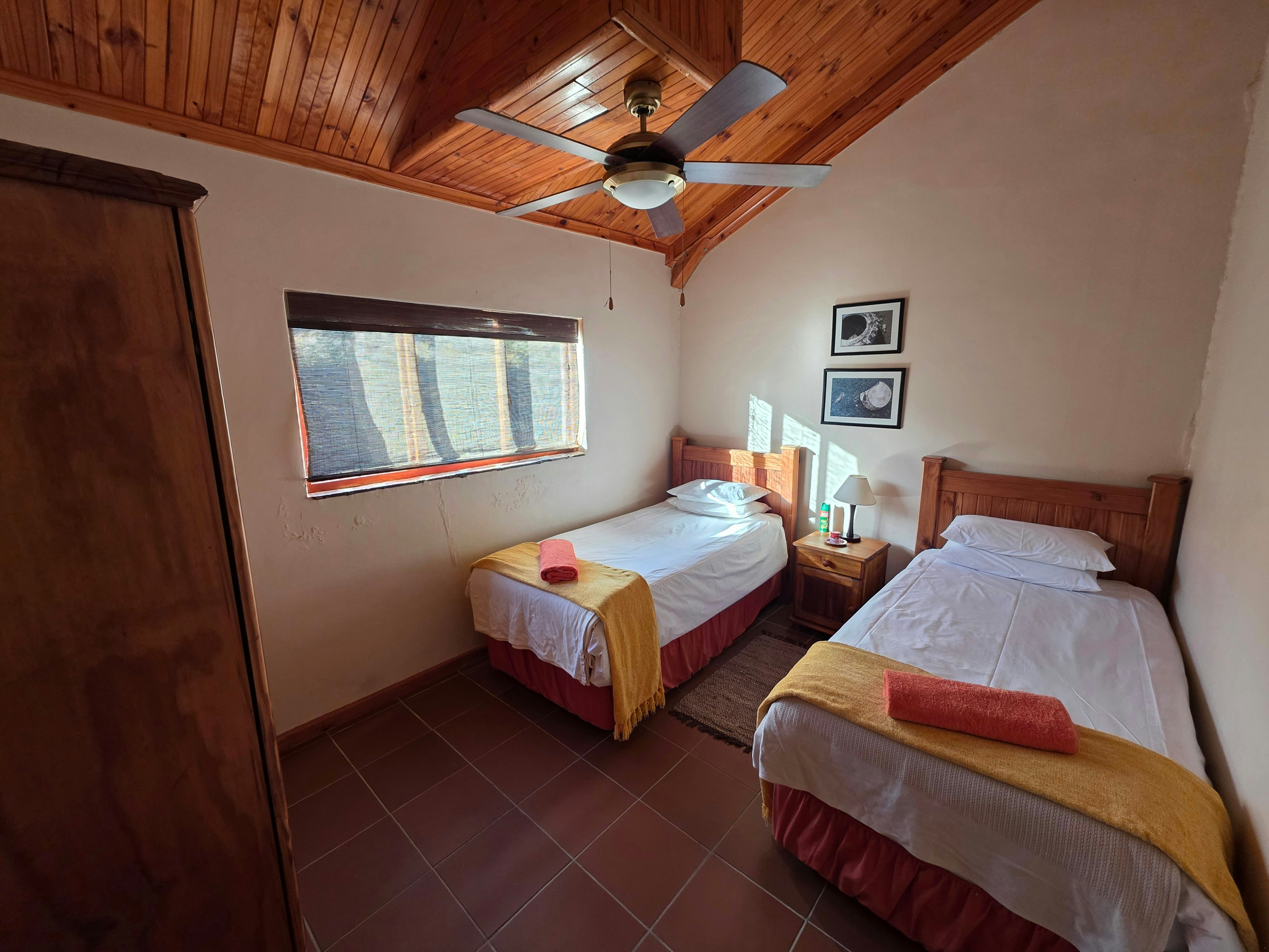 Gerieflike verblyf word aangebied in 2 selfsorgkothuise, wat elk slaapplek vir 6 gaste bied. Elke kothuis bestaan uit 3 slaapkamers. Die eerste slaapkamer het 'n dubbelbed en die ander 2 slaapkamers het elk 2 enkelbeddens. Die hoofslaapkamer het 'n en suite-badkamer en die tweede en derde slaapkamers het toegang tot 'n aparte stort en toilet.