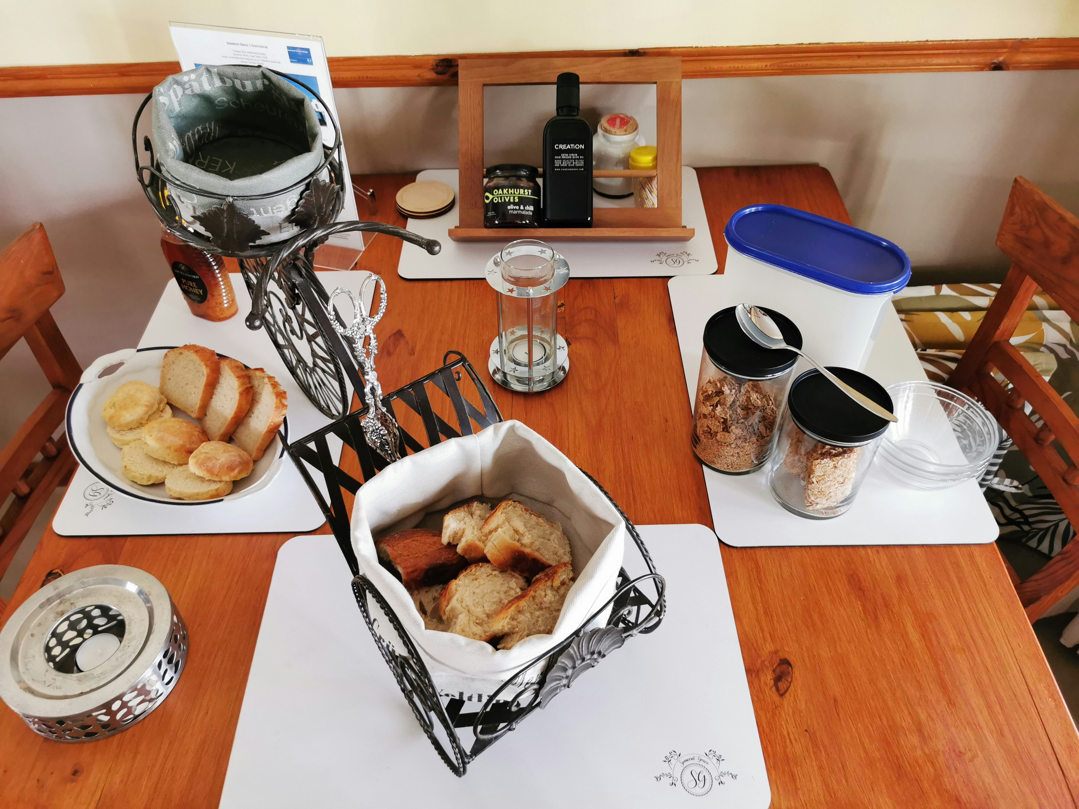 Ontbytvoorkeure kan onderhandel word. Ontbyt is ook op aanvraag beskikbaar vir gaste in die kothuis. Kos is seisoenaal en word hoofsaaklik van klein produsente in die streek verkry, en sommige word in die tuin gekweek. Geen diere word toegelaat nie. Rook is streng verbode in die kamers. Let asseblief daarop dat ons 'n sleutel- en afstandbeheerdeposito in kontant met aankoms (die Breekskadedeposito) vra.