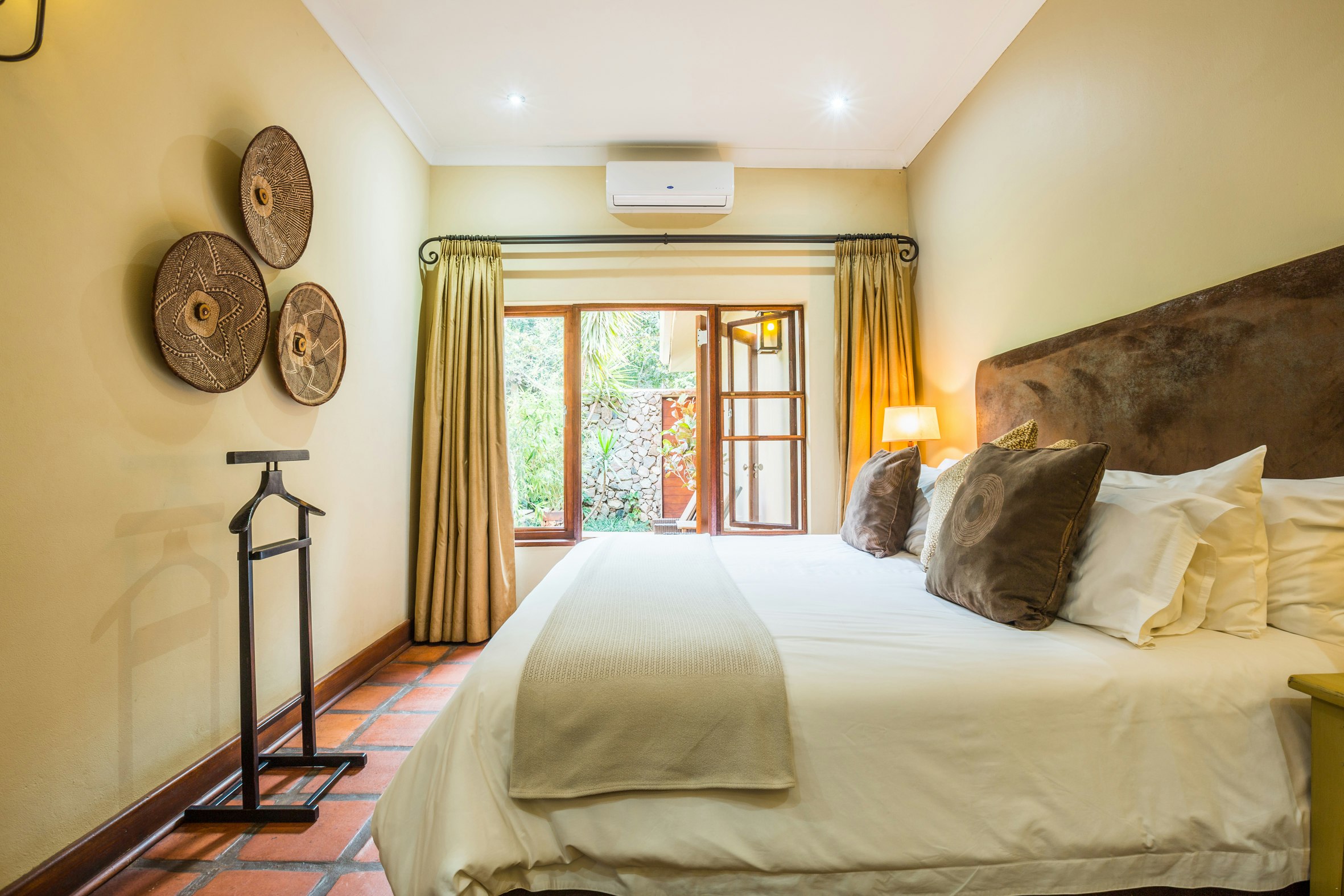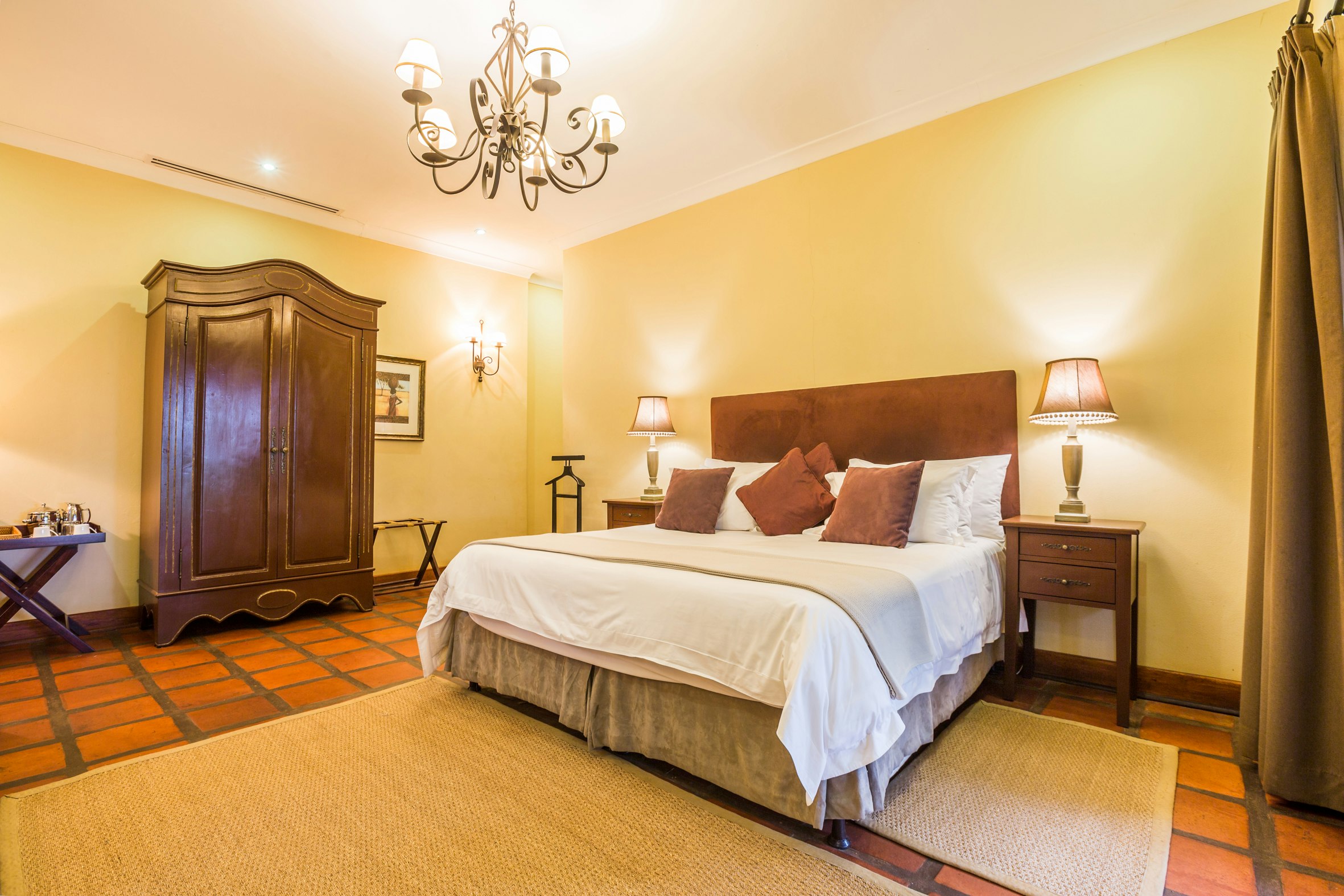 Ons bied verblyf in 7 slaapkamers, elkeen versier met sy eie individuele karakter met beeldskone meubels en vars linne, maar verder ook spesiale kenmerke soos 'n privaat buitestort of -bad. Ons intieme wittebrood-suite bied 'n privaat tuin en 'n spa-swembad. Ons het spesiale aandag geskenk aan die mooi toebehore, badkamergeriewe en die afwerkings. Elke kamer lei na 'n klein omheinde tuin of die lieflike grasperke met uitsigte oor die opstal se landerye.