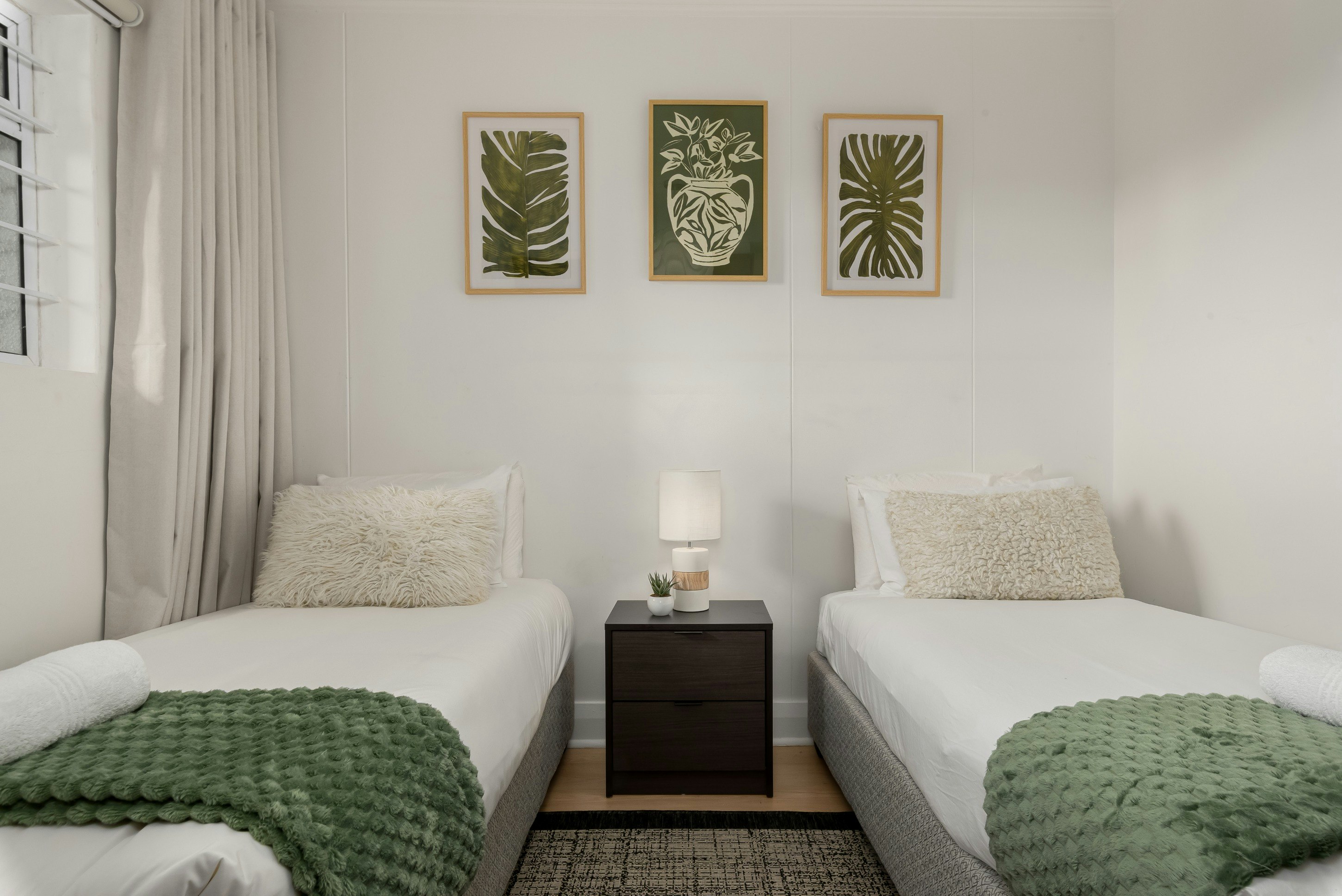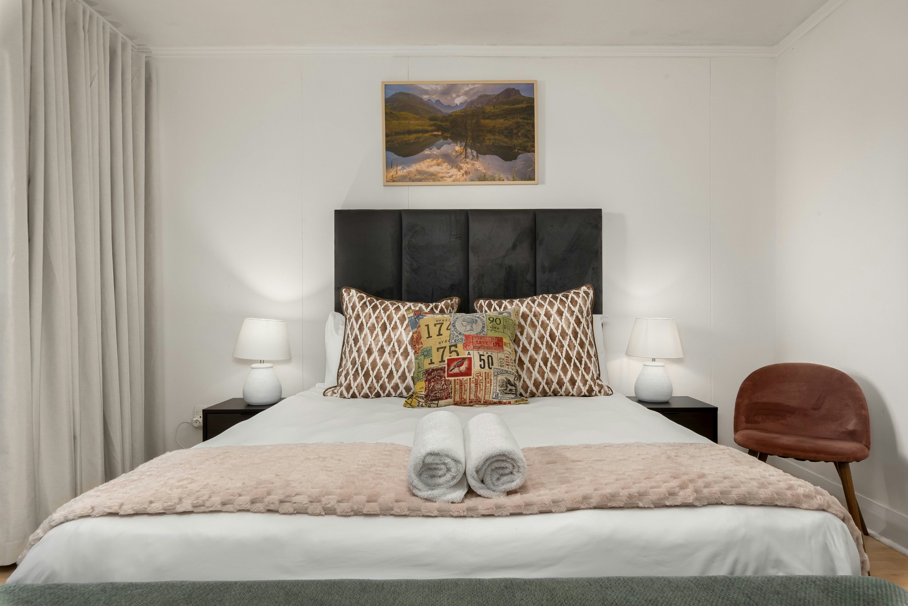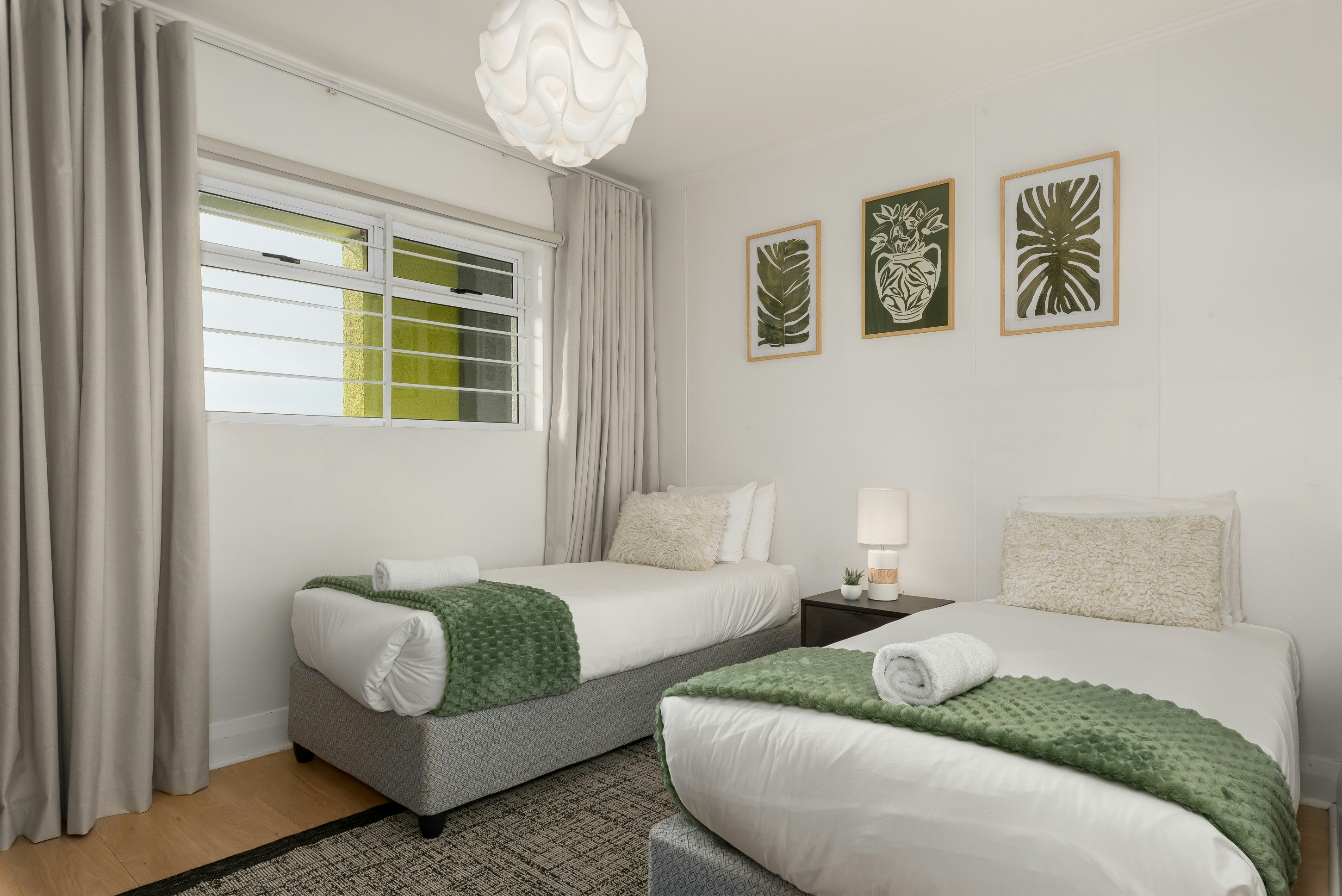 Die woonstel bied slaapplek vir tot 6 gaste in 3 slaapkamers en 2 badkamers. Die hoofslaapkamer is gemeubileer met 'n koningingrootte-bed en 'n en suite-badkamer met 'n instapstort. Die tweede slaapkamer het 2 enkelbeddens, terwyl die derde slaapkamer 'n dubbelbed het. Gaste deel 'n aparte badkamer met 'n instapstort. WiFi is beskikbaar vir gaste se gerief.