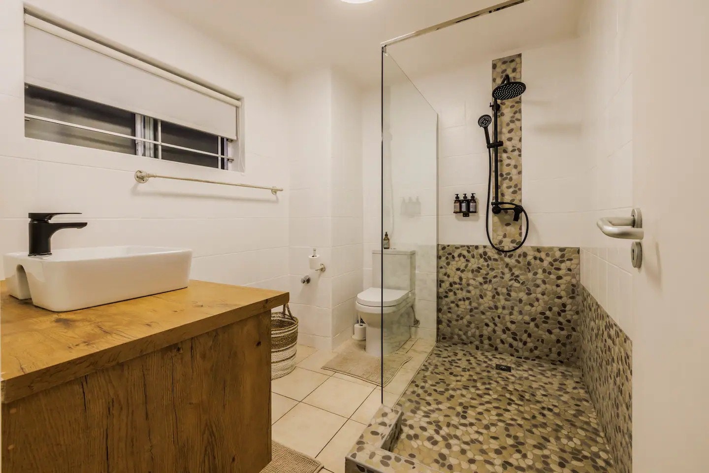 Dié woonstel bied gerieflike slaapplek aan 6 gaste en beskik oor 3 slaapkamers en 2 badkamers. Die hoofslaapkamer het 'n koninggrootte-bed en 'n en suite-badkamer met 'n stort. Die tweede slaapkamer het 'n dubbelbed en die derde slaapkamer het 2 enkelbeddens. Gaste in hierdie 2 kamers deel die tweede badkamer wat ook 'n stort het. Gehaltelinne en badhanddoeke word voorsien.