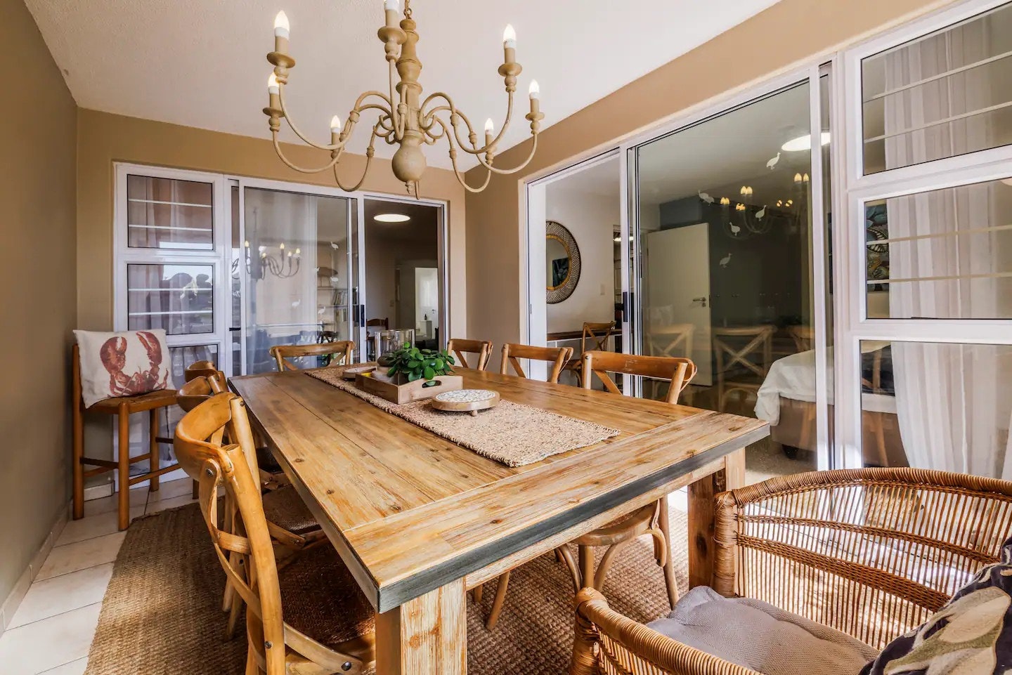 Die skuifdeure lei na 'n toegeboude stoep met 'n etenstafel wat oorgenoeg sitplek het vir gaste om maaltye saam te geniet. Die woonstel is ongeveer 50 m vanaf The Mole Main Beach en is stapafstand vanaf winkels en restaurante.