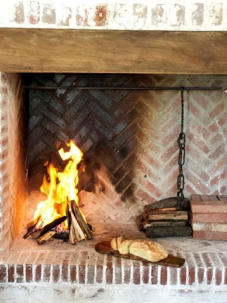 The kitchen is open-plan to the living area and is well-equipped with a fridge-freezer, microwave, oven, gas stove, washing machine, cutlery, crockery, and tea- and coffee-making facilities. The living area includes a dining table, a built-in fire place, a TV, and comfortable seating.