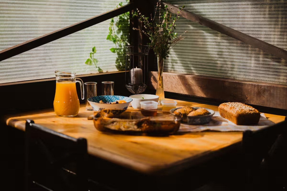 Die knus 'kombuiskajuit' is volledig toegerus vir selfsorg en sluit 'n yskas-vrieskas, gasstoof en oond, eetgerei, breekware en tee- en koffiemaakgeriewe in. Langs die kombuis is 'n klein eetarea en 'n gemaklike sitkamer met 'n houtkaggel - perfek vir koeler aande. Gratis WiFi is beskikbaar.