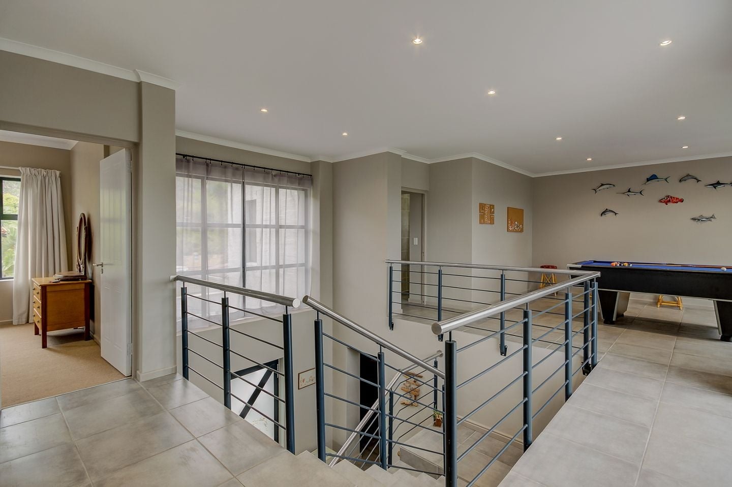 Die vakansiehuis bied slaapplek aan 7 gaste en beskik oor 4 slaapkamers, 3 badkamers, 'n kombuis en 'n leefarea. Die hoofslaapkamer het 'n dubbelbed en 'n en suite-badkamer met 'n stort. Die tweede slaapkamer het 'n dubbelbed en die derde slaapkamer het 2 enkelbeddens. Die gaste in hierdie 2 slaapkamers deel 'n badkamer met 'n stort, bad, toilet en 'n wasbak. Die vierde slaapkamer op die onderste verdieping het 1 enkelbed. Daar is ook 'n derde badkamer met 'n wasbak en toilet op die onderste verdieping.