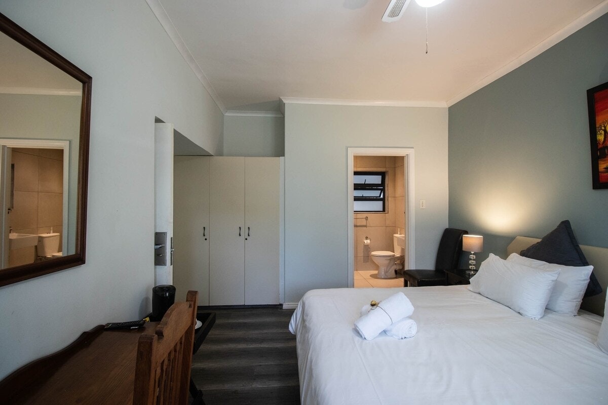 Die eenheid is gemeubileer met 'n koninggrootte-bed en het 'n en suite-badkamer met 'n stort, wasbak en toilet. Dit is toegerus met linne en handdoeke, 'n haardroër, 'n kluis, tee- en koffiemaakgeriewe, 'n slim-TV, gratis WiFi en lugversorging.