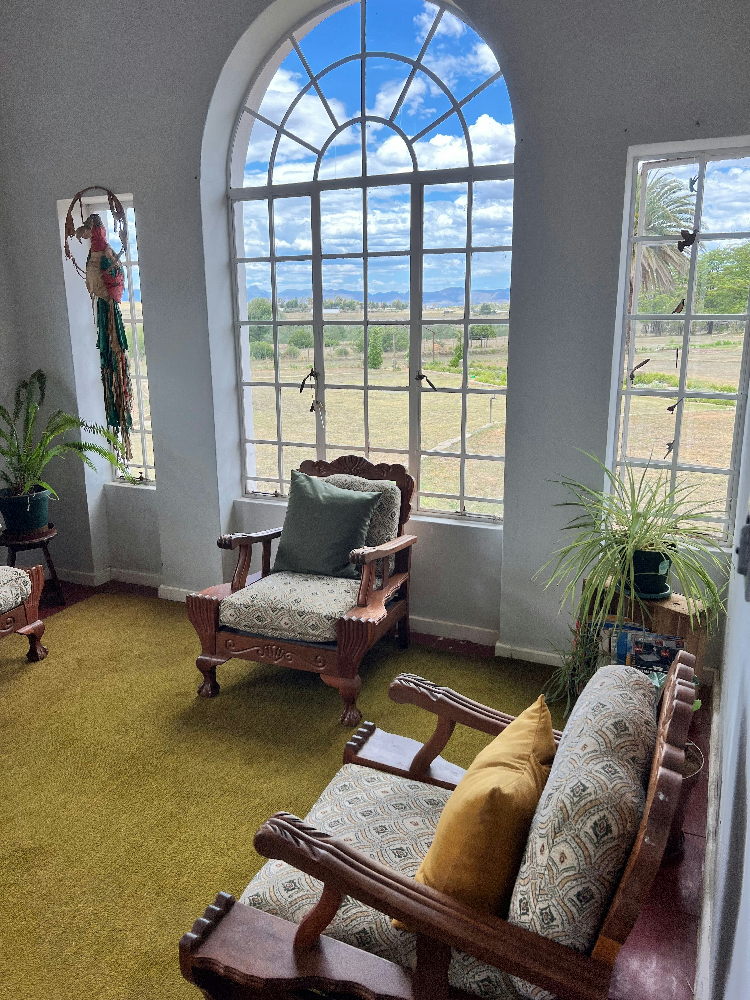 Vanaf die ruim en pragtige plaasstoep kan besoekers asemrowende uitsigte oor Lesotho geniet.