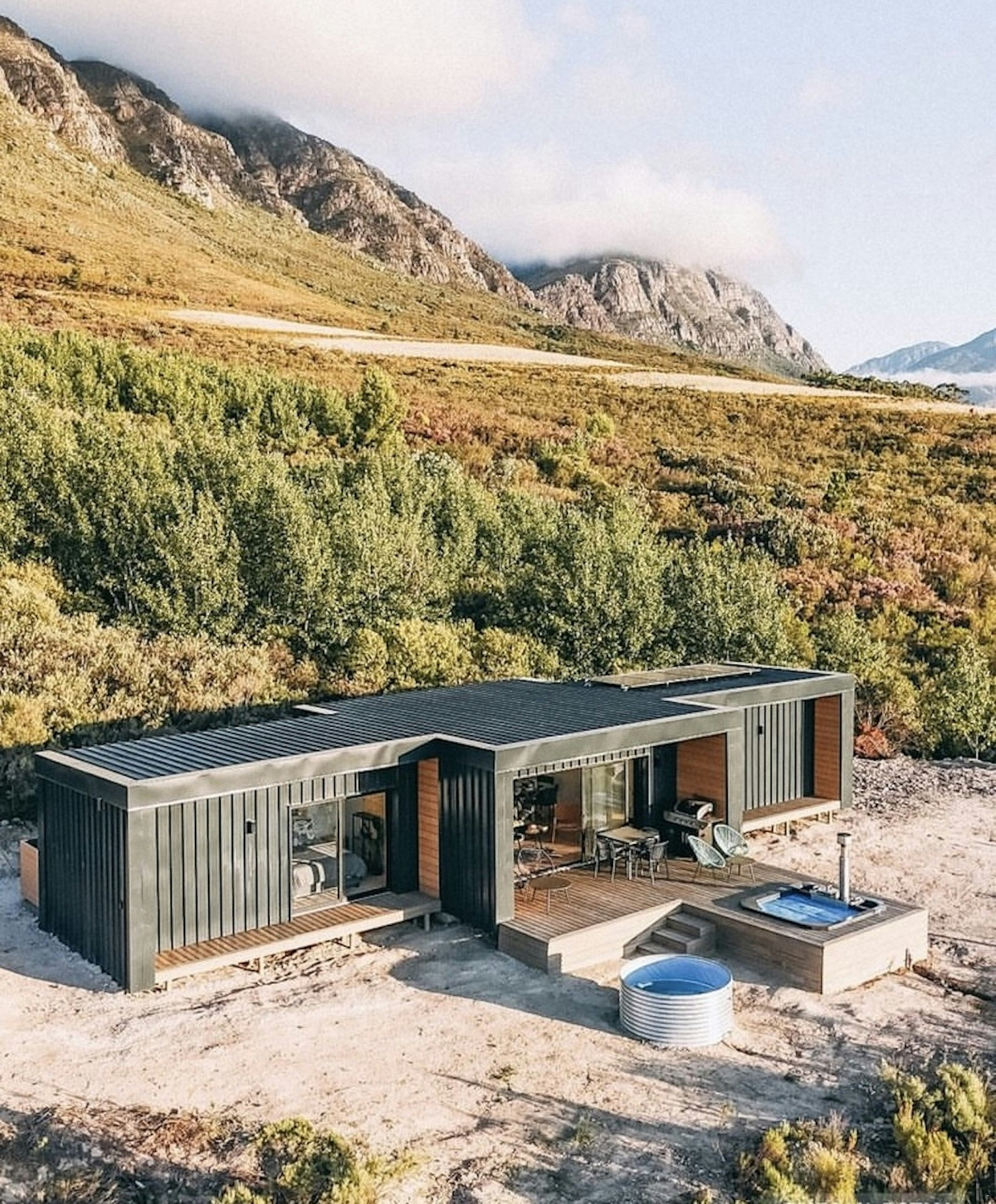 Die houthuisie is sowat 1 km teen 'n berg op en daar is 'n grondpad wat na die verblyf lei. 'n Kar met 'n hoë grondvryhoogte word aanbeveel.