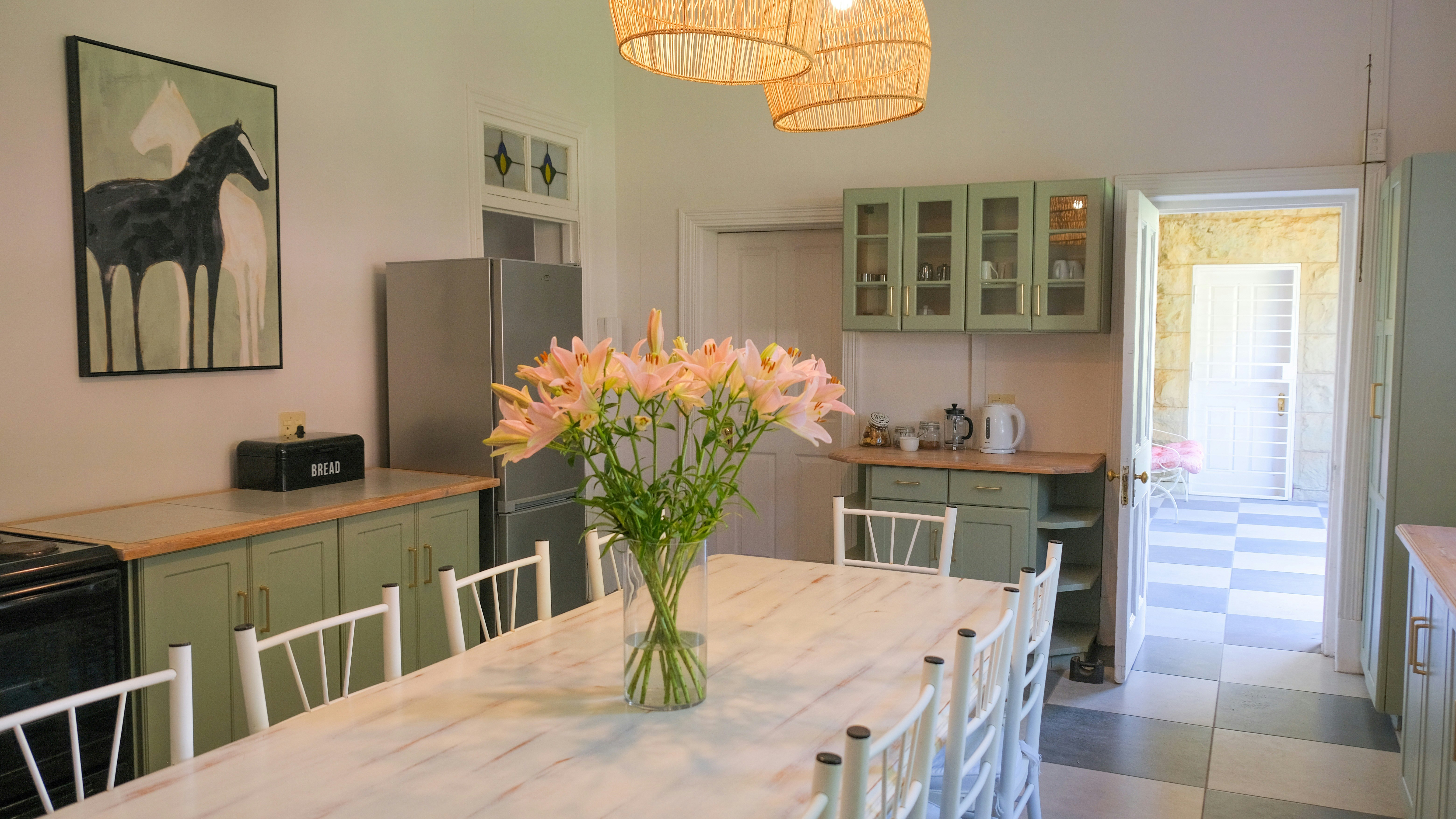 Die gastehuis is in 3 eenhede verdeel, die hoofhuis, aanhangsel en die plaaskothuis.