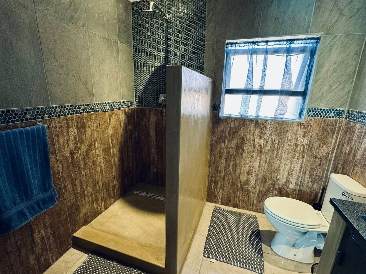 Die huis beskik oor 'n volledig toegeruste kombuis wat 'n gasstoof, oond, mikrogolfoond, ketel, eetgerei, breekware, yskas-vrieskas, wasmasjien en tuimeldroër insluit. Die sitkamer en eetarea bied gemaklike sitplek vir gaste om te eet en te ontspan, en vir vermaak is 'n platskerm-TV en komplimentêre hoëspoed-Wi-Fi beskikbaar.