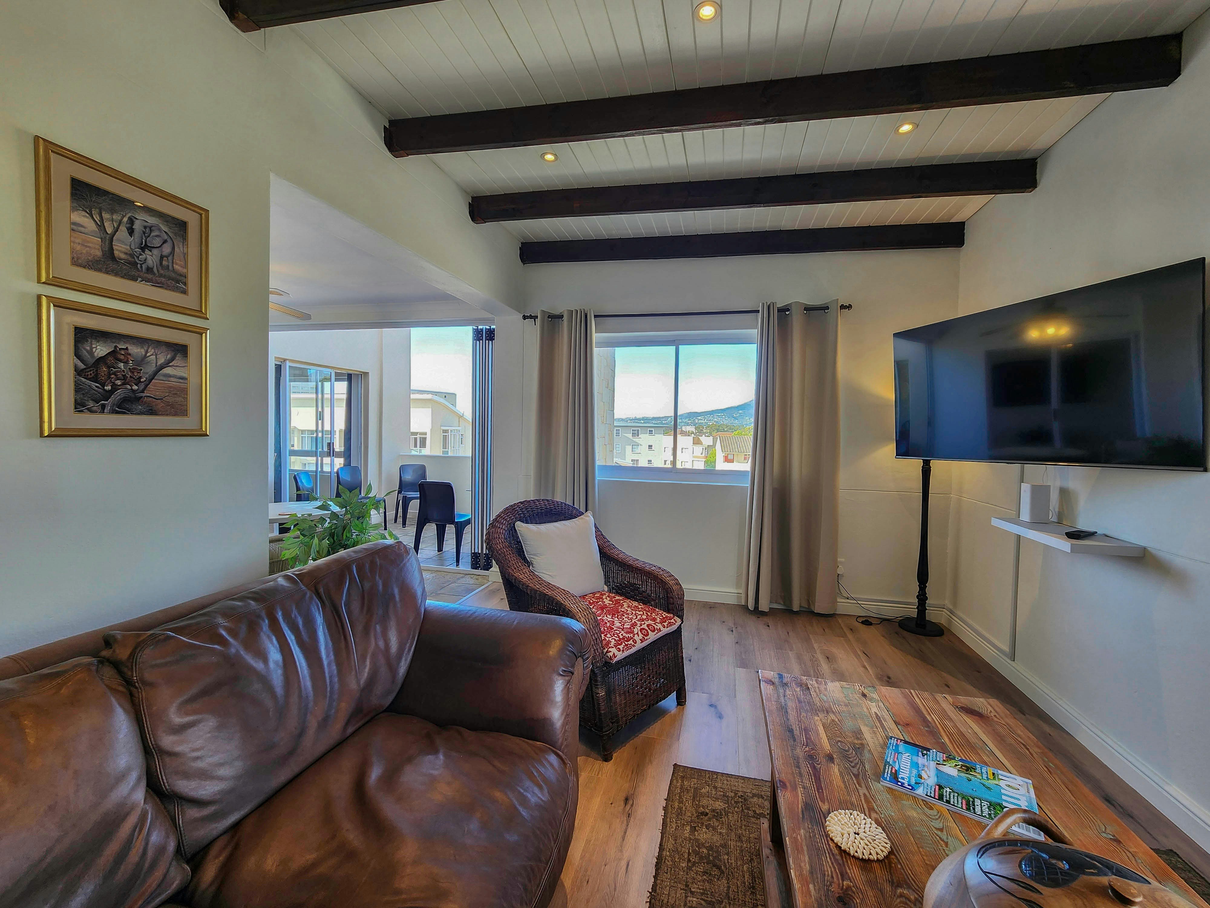 Die leefarea lei na 'n balkon met braaigeriewe, wat die perfekte plek skep vir gaste om te ontspan en die uitsigte te geniet. Gaste het volle toegang tot die kompleks se gemeenskaplike swembadarea en veilige parkering.