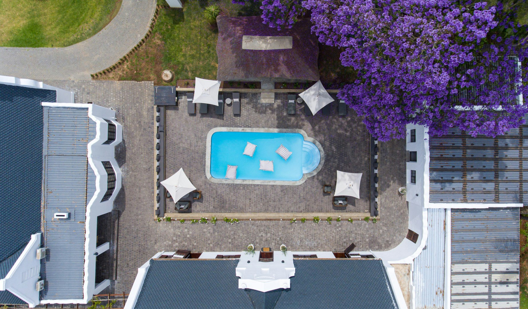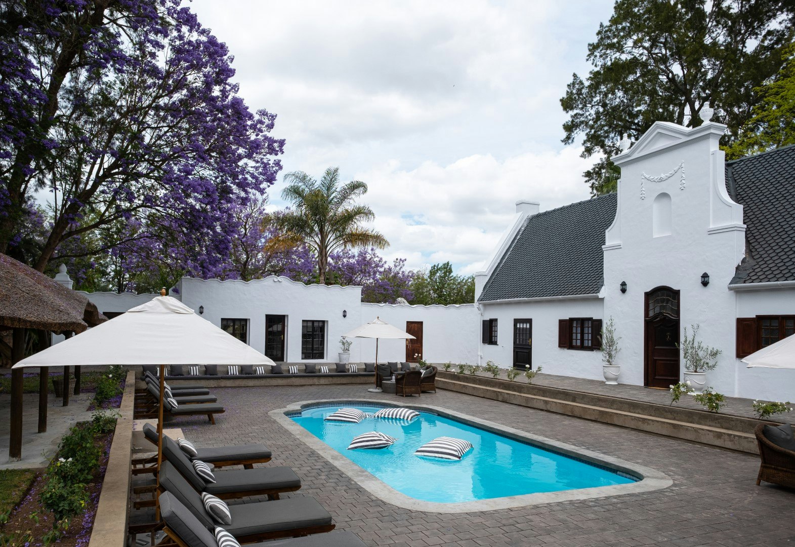 There is a communal swimming pool with a lapa, braai area and a pizza oven. The garden is lush with trees that are older than 100 years. Stellenhof has a restaurant that is reserved for guests only where breakfast, lunch and dinner are available.