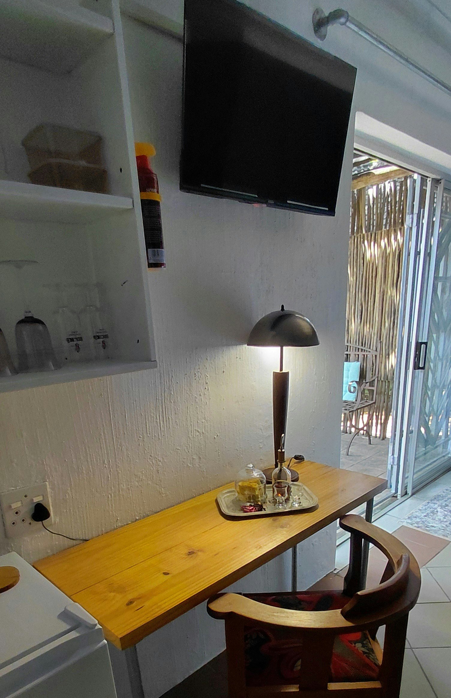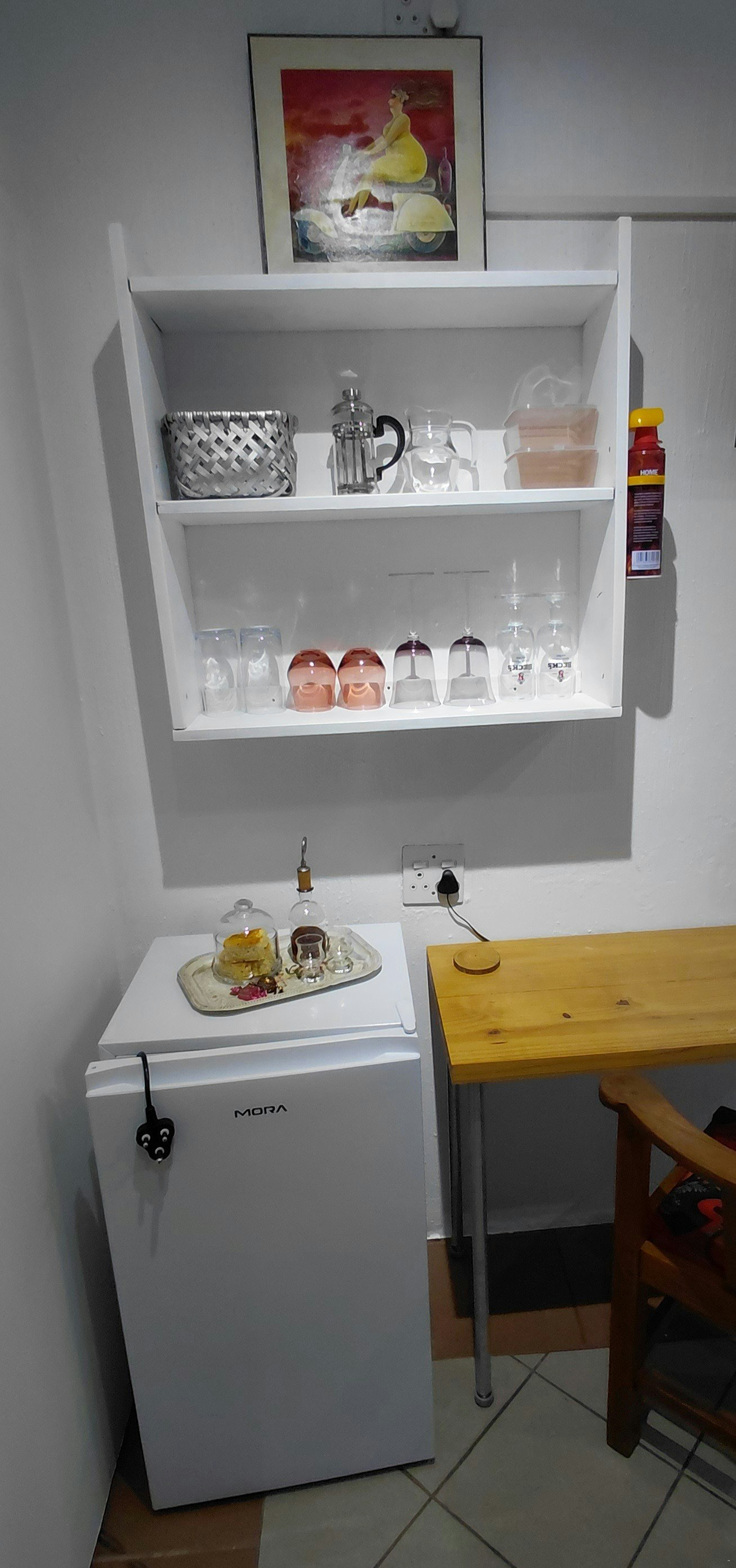 Die kothuis het 'n kombuisie wat toegerus is met verhit-en-eet-geriewe. n Eettafel- en stoele en gemakstoele asook n klerekas en spieeltafel. Bykomende geriewe sluit in 'n platskerm-TV met DStv, 'n privaat ingang, 'n alarmstelsel en 'n buite-sitarea. Gaste het toegang tot WiFi, braaigeriewe sowel as veilige parkering op die perseel.