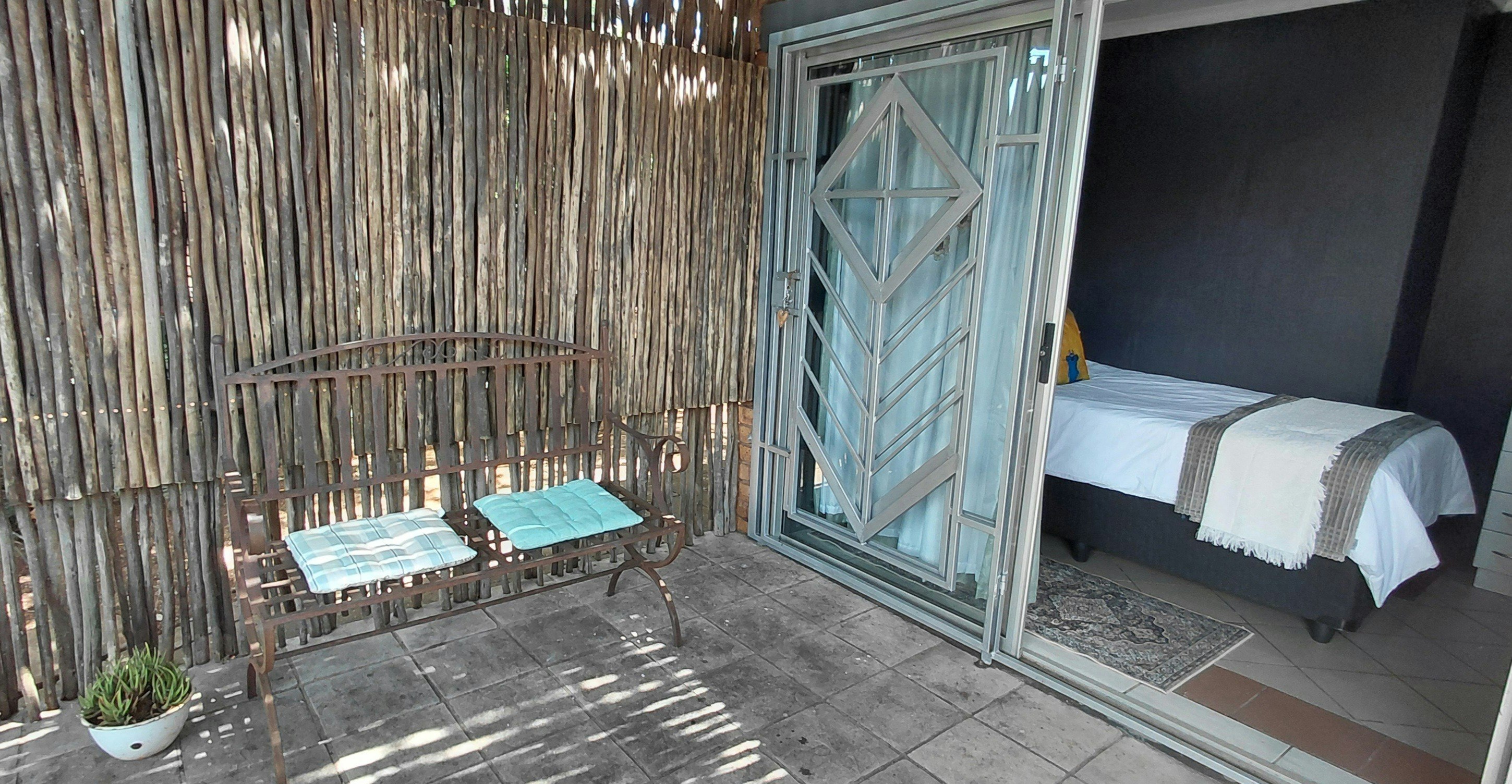 Verblyf word gebied in 2 eenhede: 'n Grasdak-houthuisie wat slaapplek bied vir 2 gaste en apart van die hoofhuis geleë is. Daar is ook 'n ateljee-eenheid wat slaapplek vir 1 gas (3/4 bed) bied en apart is van die hoofhuis en die kothuis. Dus 3 mense kan beide eenhede bespreek, een slaap apart in die ateljee en 2 in die kothuis. Twee persone wat aparte kamers wil neem, kan die eenhede ook apart bespreek en twee mense wat wil deel, kan die kothuis as n eenheid bespreek. Die kothuis kan ook as 'n eenheid vir 'n enkelpersoon bespreek word.
