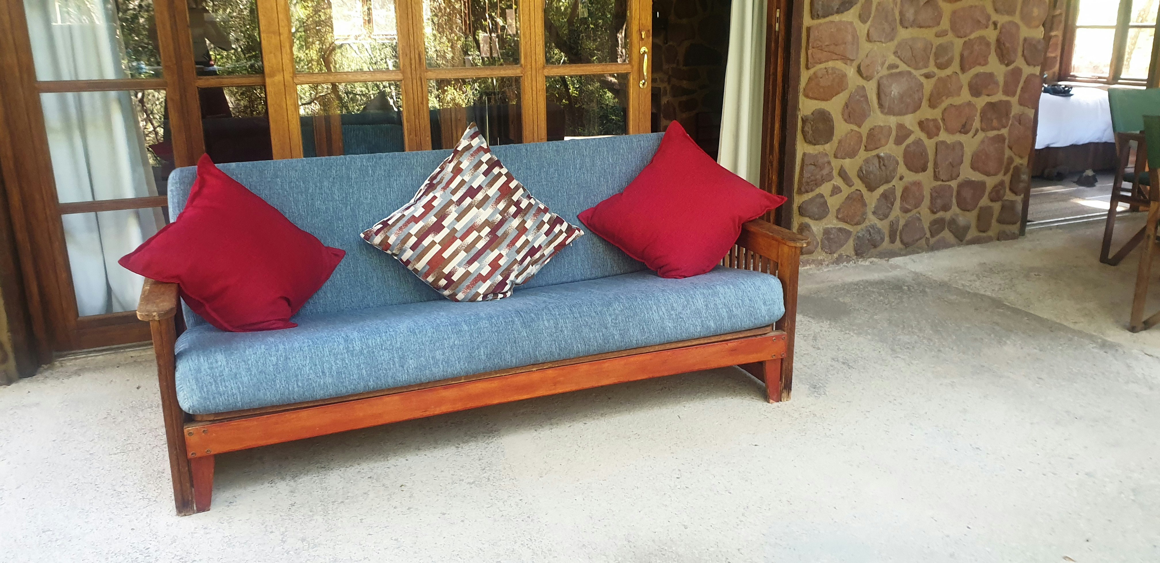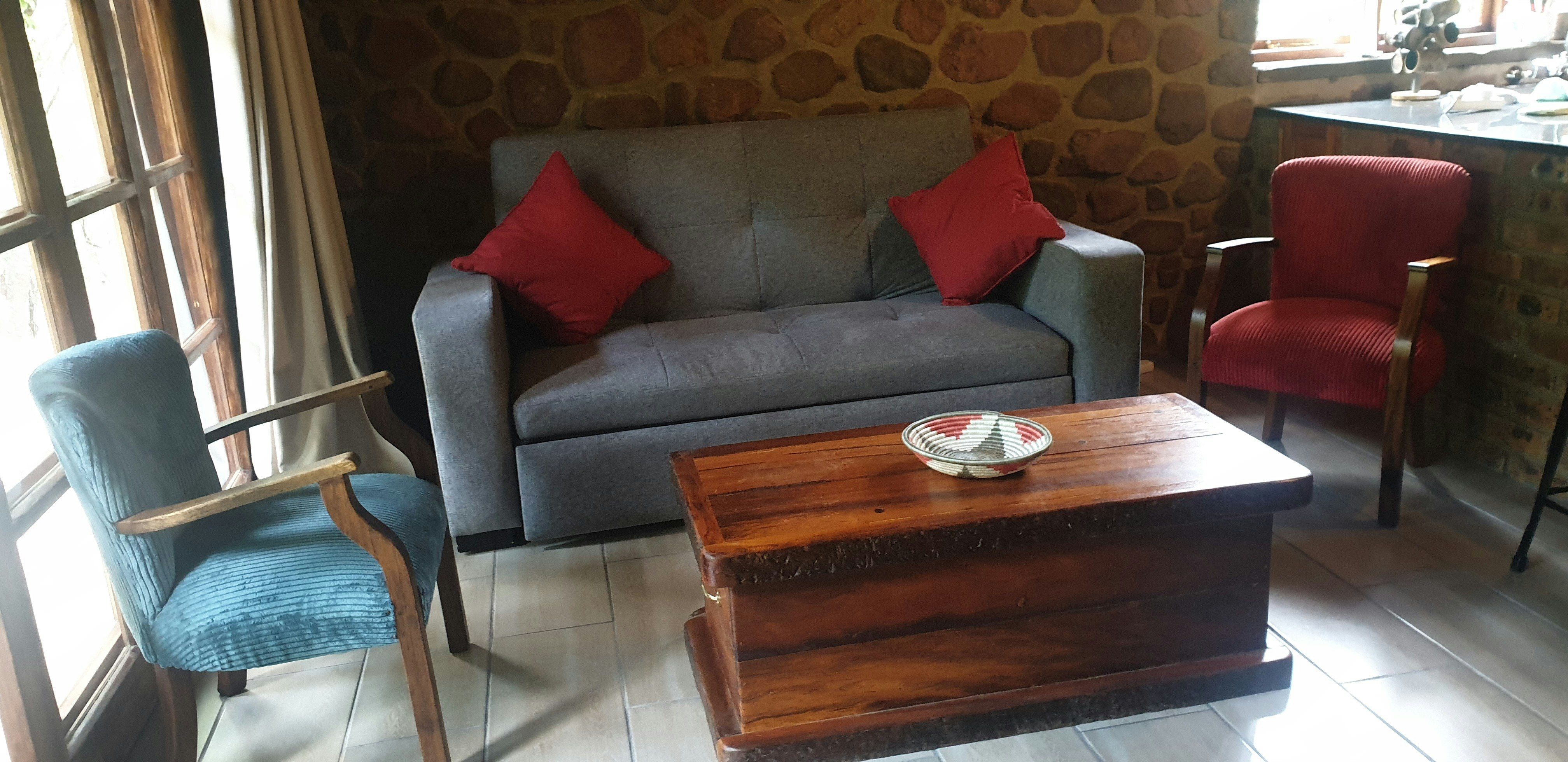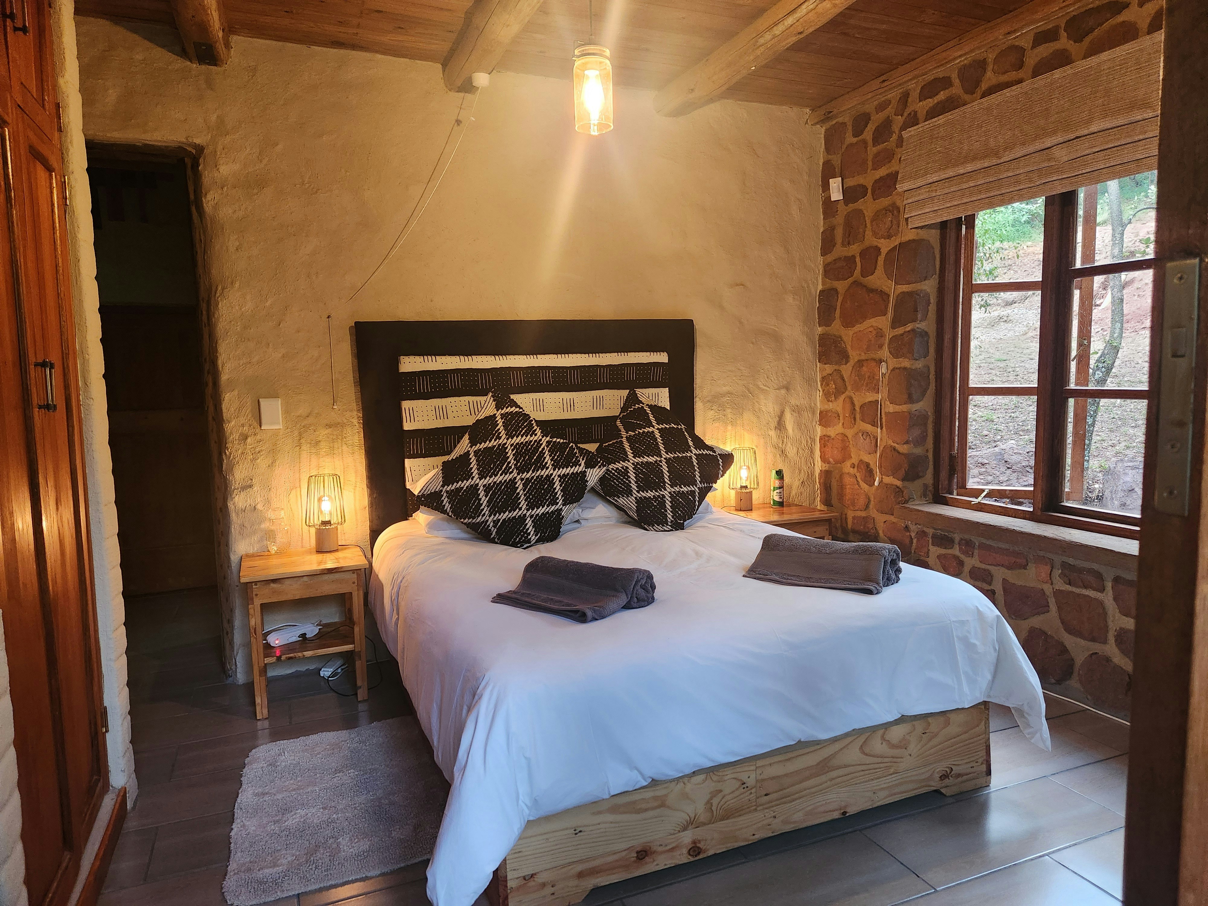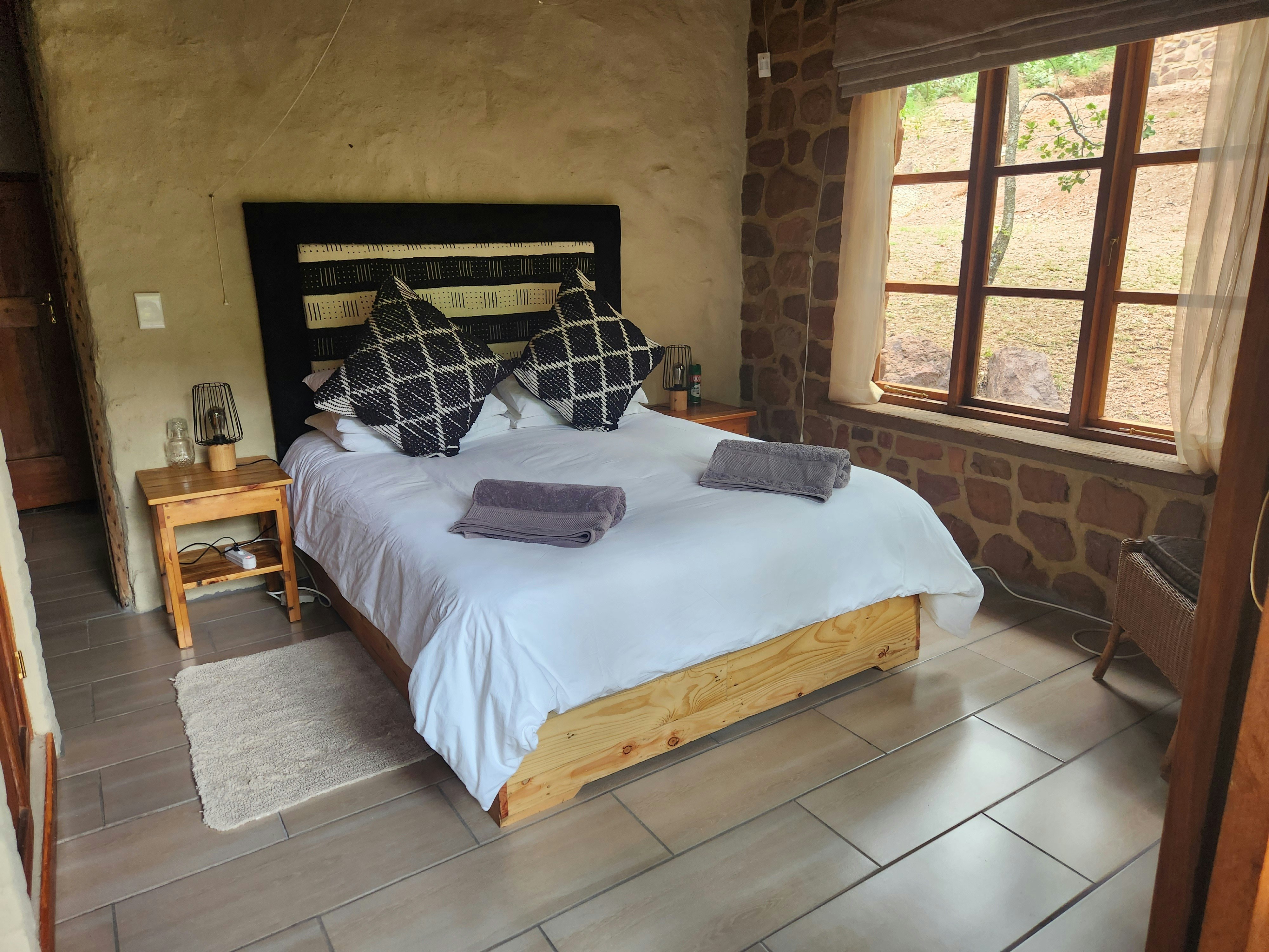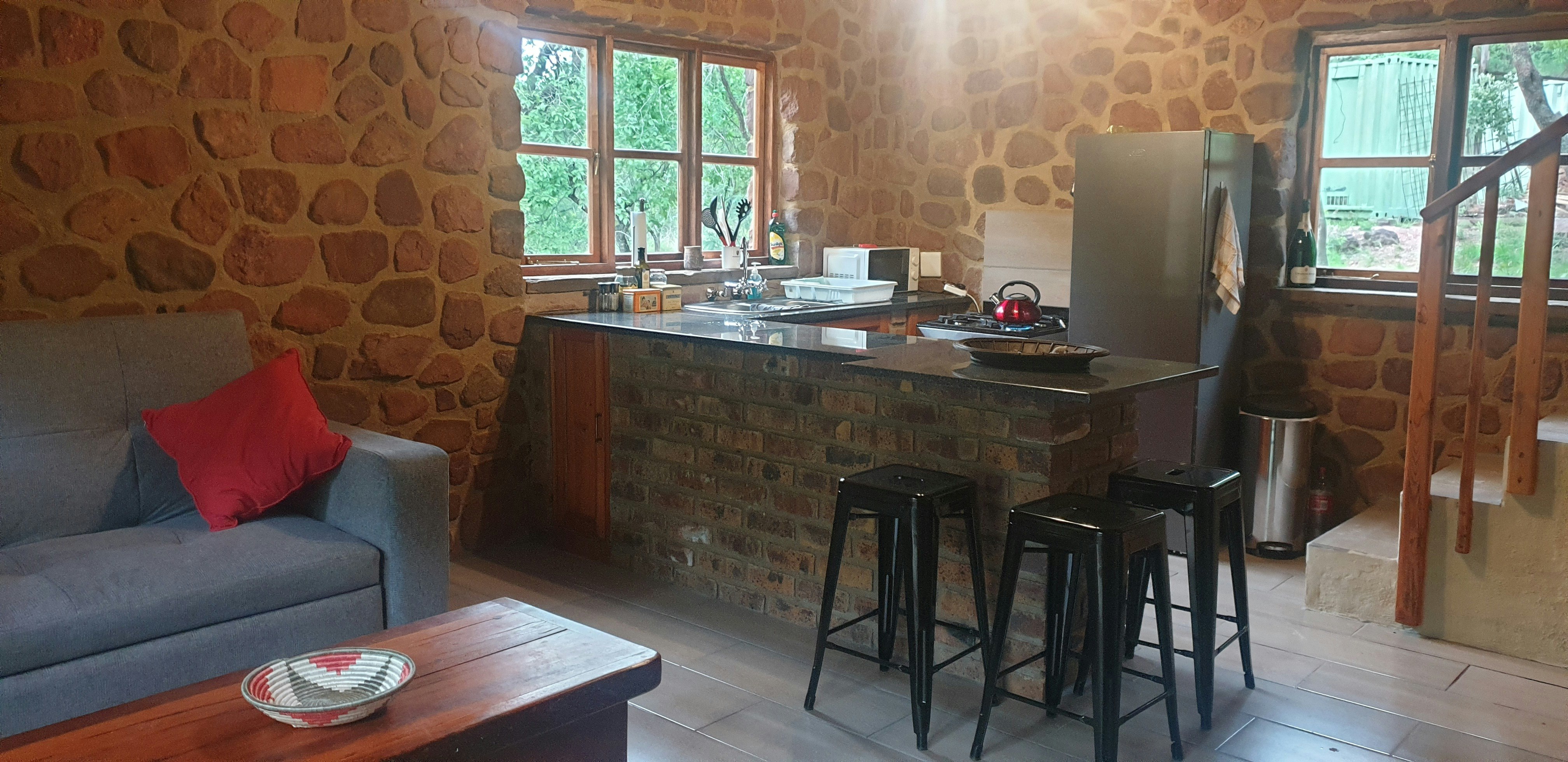 Die eiendom bied een selfsorgkothuis met 2 slaapkamers, gemeubileer met gemaklike beddens en een volledige badkamer, met 'n kombuis wat 'n mikrogolfoond, ketel, gasstoof en oond, yskas-vrieskas, eetgerei en breekware insluit. Die leefarea beskik oor 'n gemaklike rusbank wat in 'n koningingrootte bed omskep kan word. Daar is nog 2 pragtig gemeubileerde kamers toegerus met gemaklike beddens en privaat en suite-badkamers, wat teen 'n bykomende koste saam met die kothuis gehuur kan word. Die kothuis is van die kragnetwerk af en werk op sonenergie. Daar is 'n privaat warm bad vir gaste se gebruik.