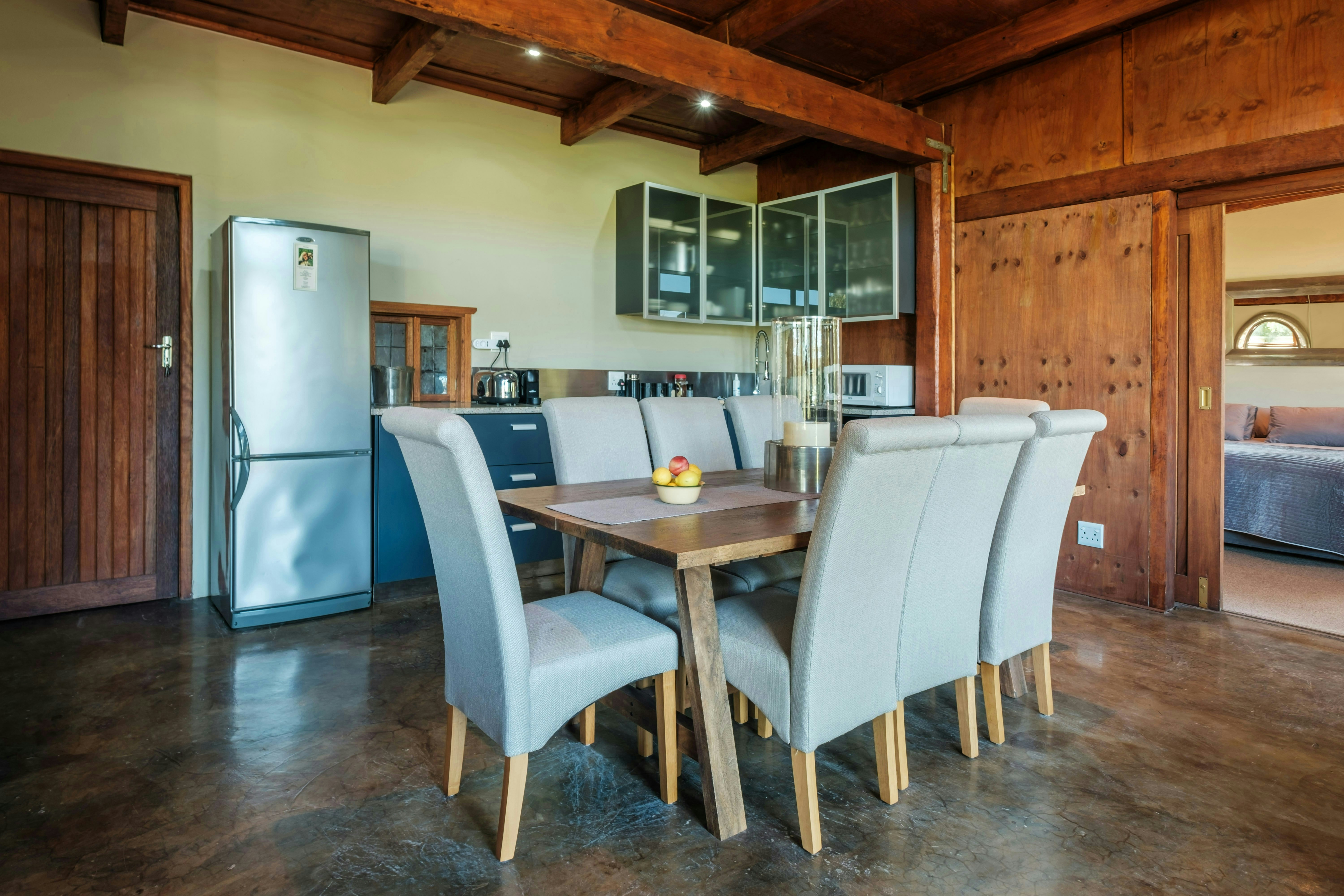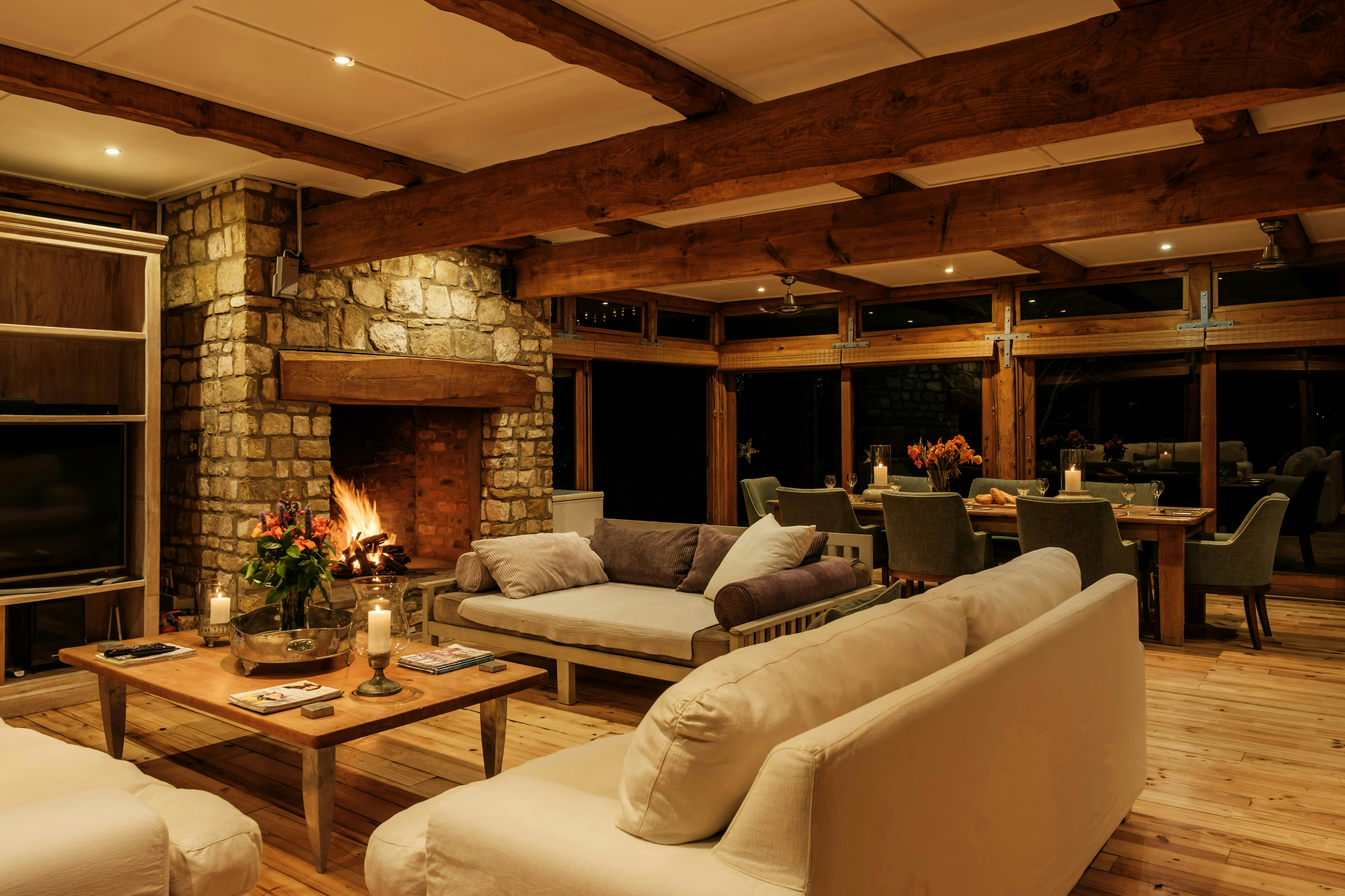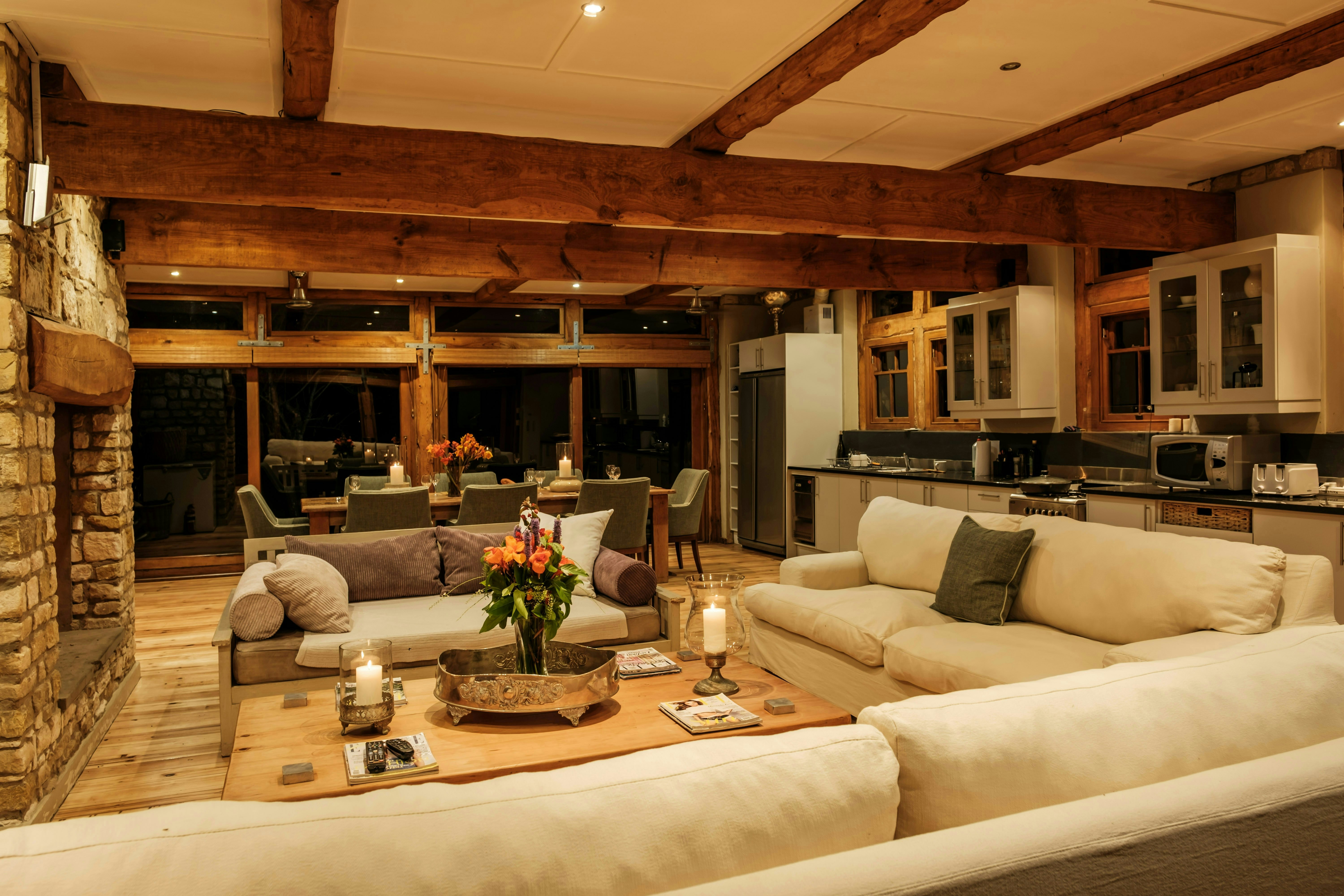 Daarbenewens is daar 'n leefarea in elke eenheid met 'n kombuis wat met kookgeriewe toegerus is. Hierdie eenhede sluit 'n eetarea en 'n knus sitarea met 'n kaggel in. Vir sommige sal 'n TV ook in die eenheid beskikbaar wees. Toegang tot gratis WiFi is regdeur die lodge beskikbaar. Buite elke eenheid is daar 'n privaat patio met buitesitplek en braaigeriewe.