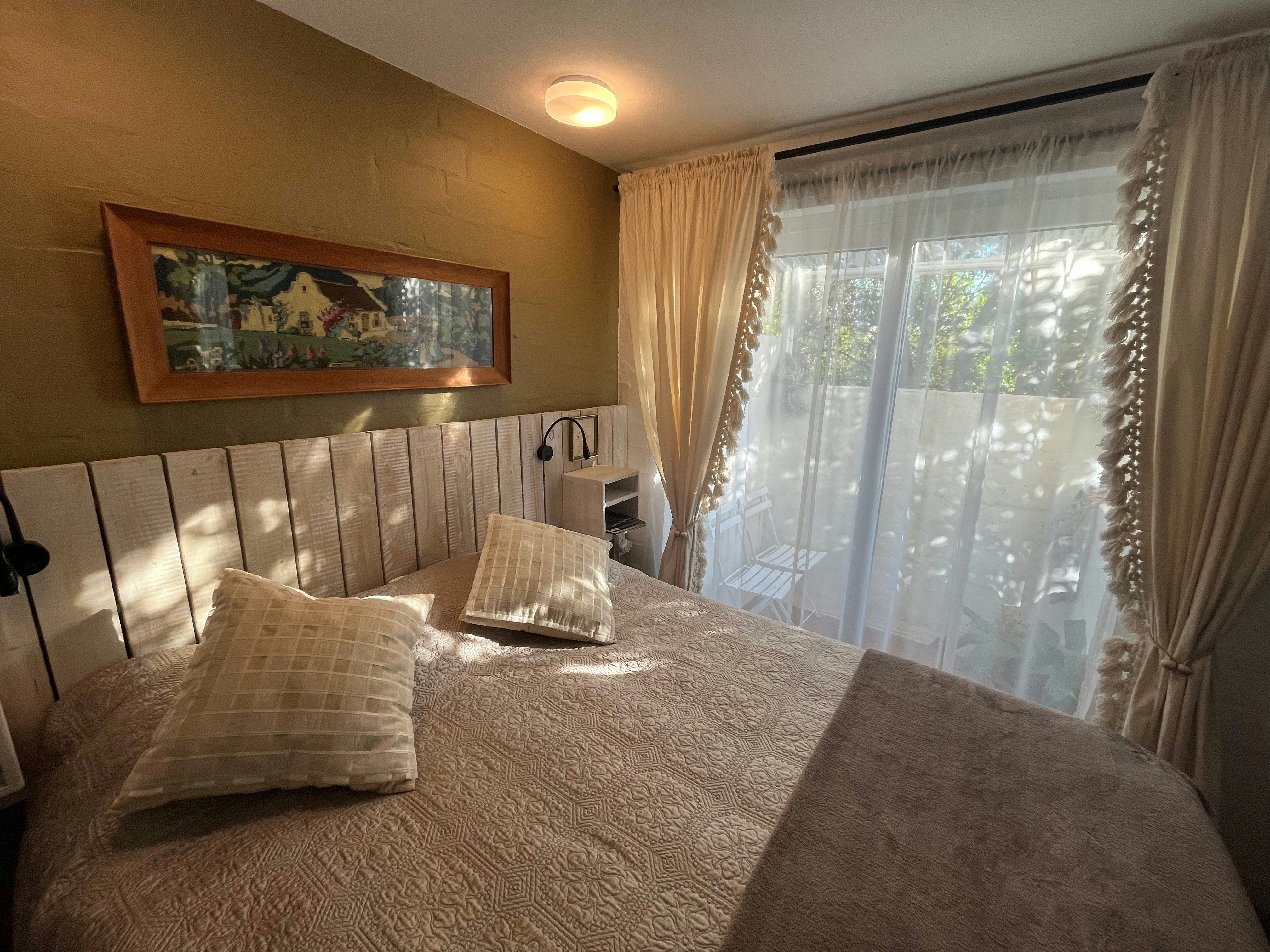 Die Eenslaapkamer-selfsorgeenheid bied 'n koningingrootte bed en 'n en suite-badkamer met 'n stort, toilet en wasbak.