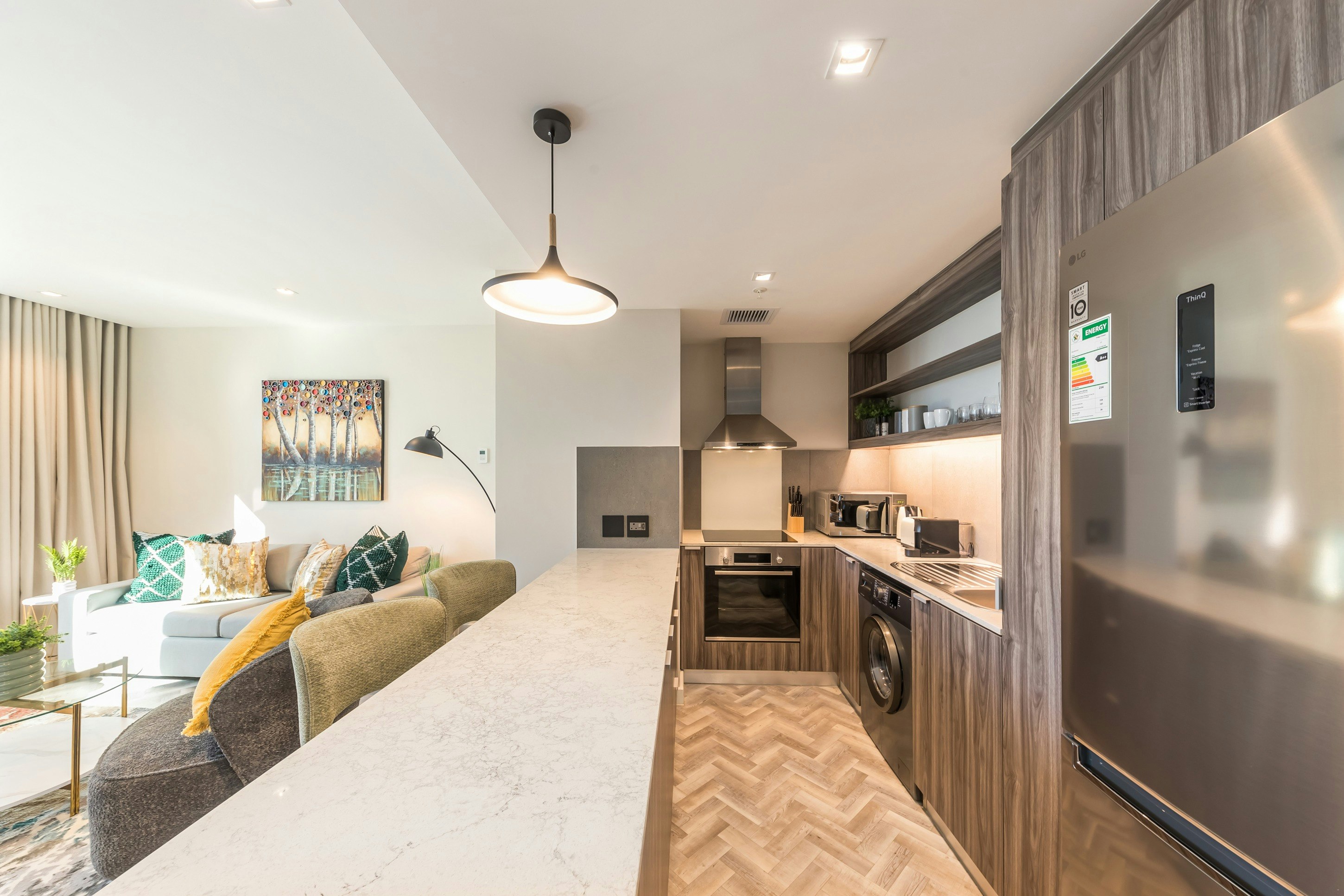 The kitchen is equipped with a fridge-freezer, stove, oven, microwave, cutlery and crockery, tea- and coffee-making facilities and a breakfast bar with stools. A washing machine is available for added convenience. The lounging area has comfortable seating for guests to relax, and for guests' entertainment there is a TV. Access to Wi-Fi is available.