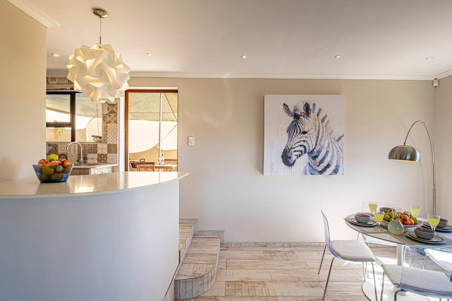 Die kombuis is met 'n yskas-vrieskas, gasstoof, oond, wasmasjien, eetgerei, breekware en tee- en koffiemaakgeriewe toegerus. Die ruim leefarea het 'n gemaklike rusbank, 'n slim-TV en 'n etenstafel. WiFi is beskikbaar.