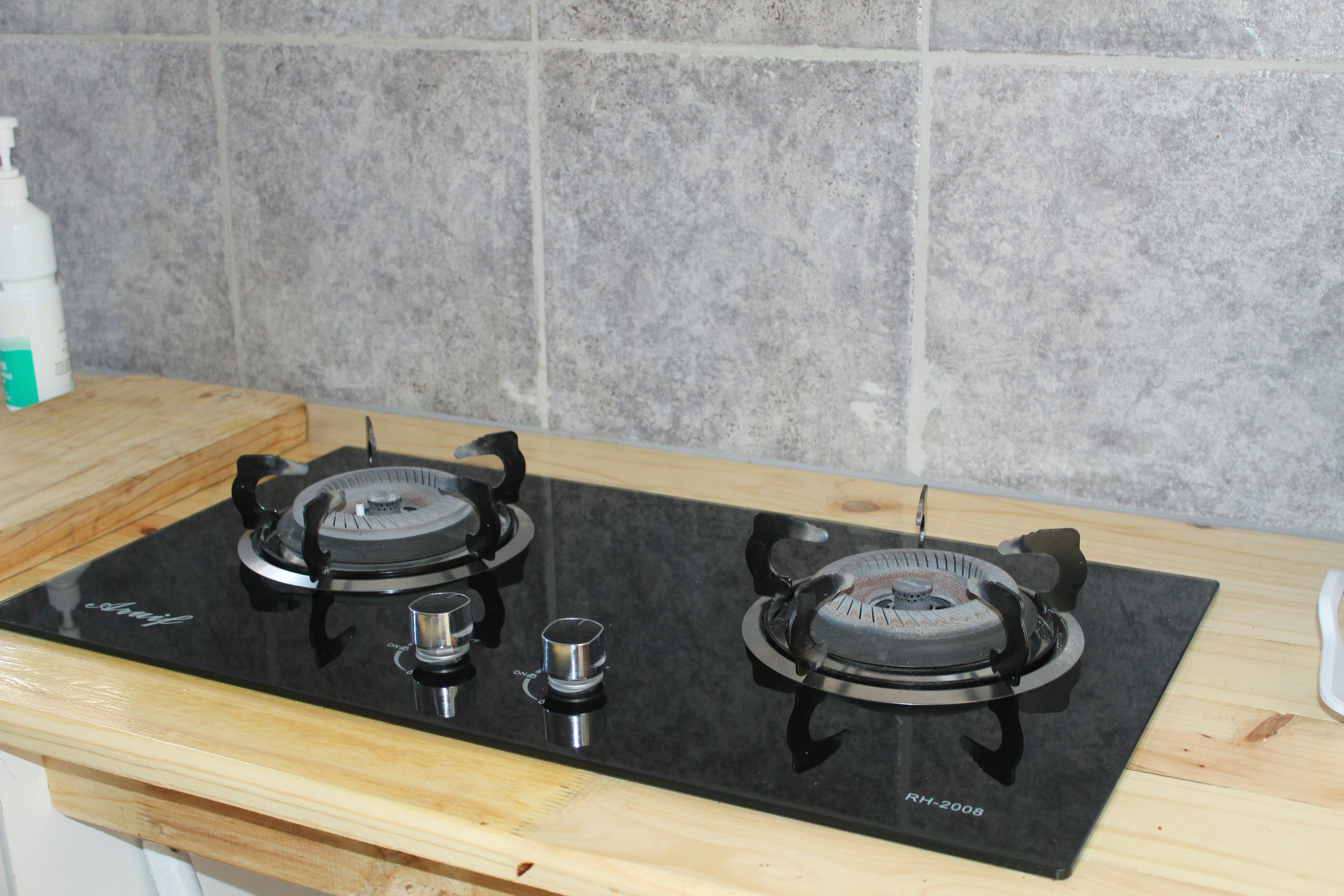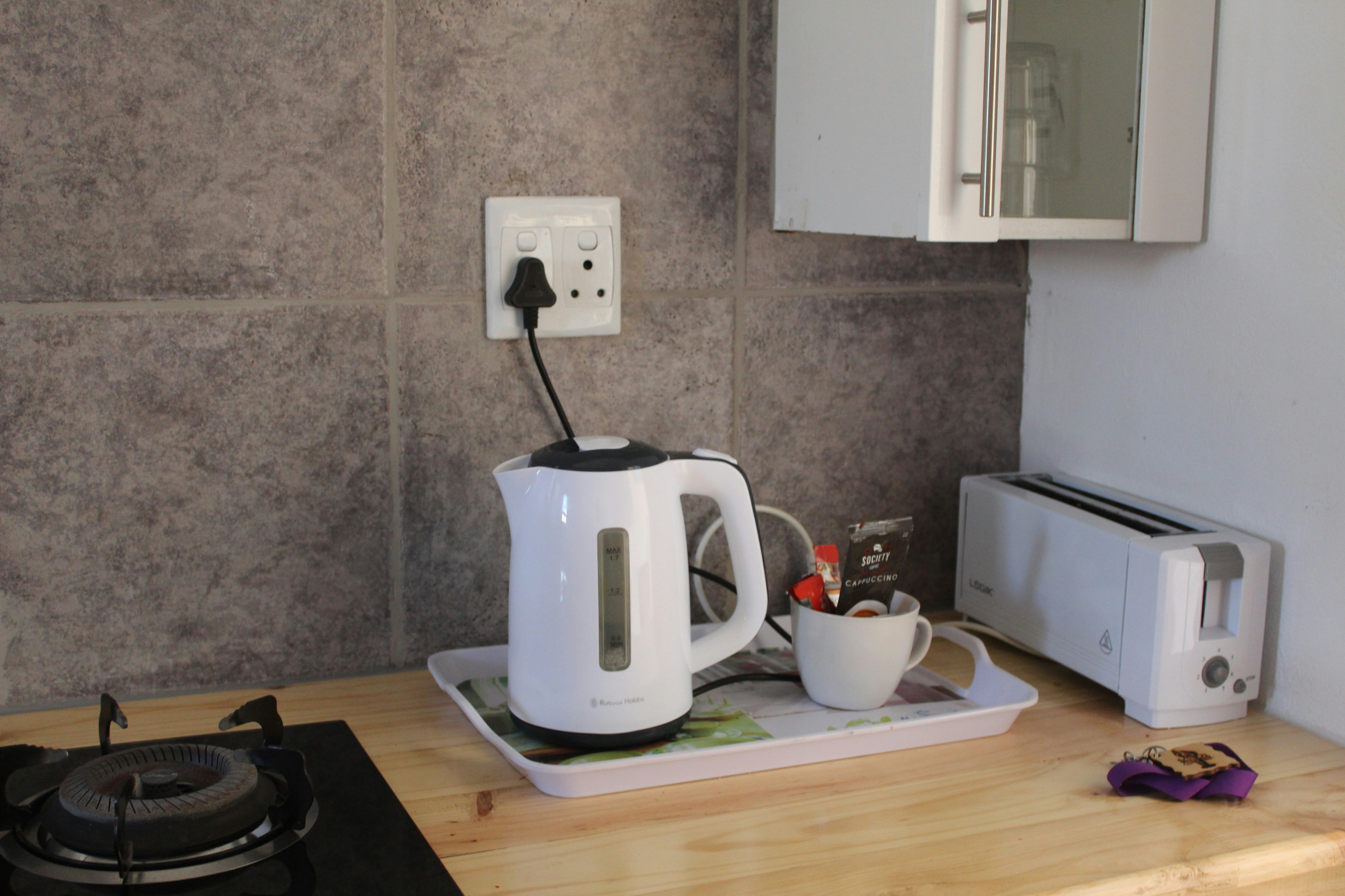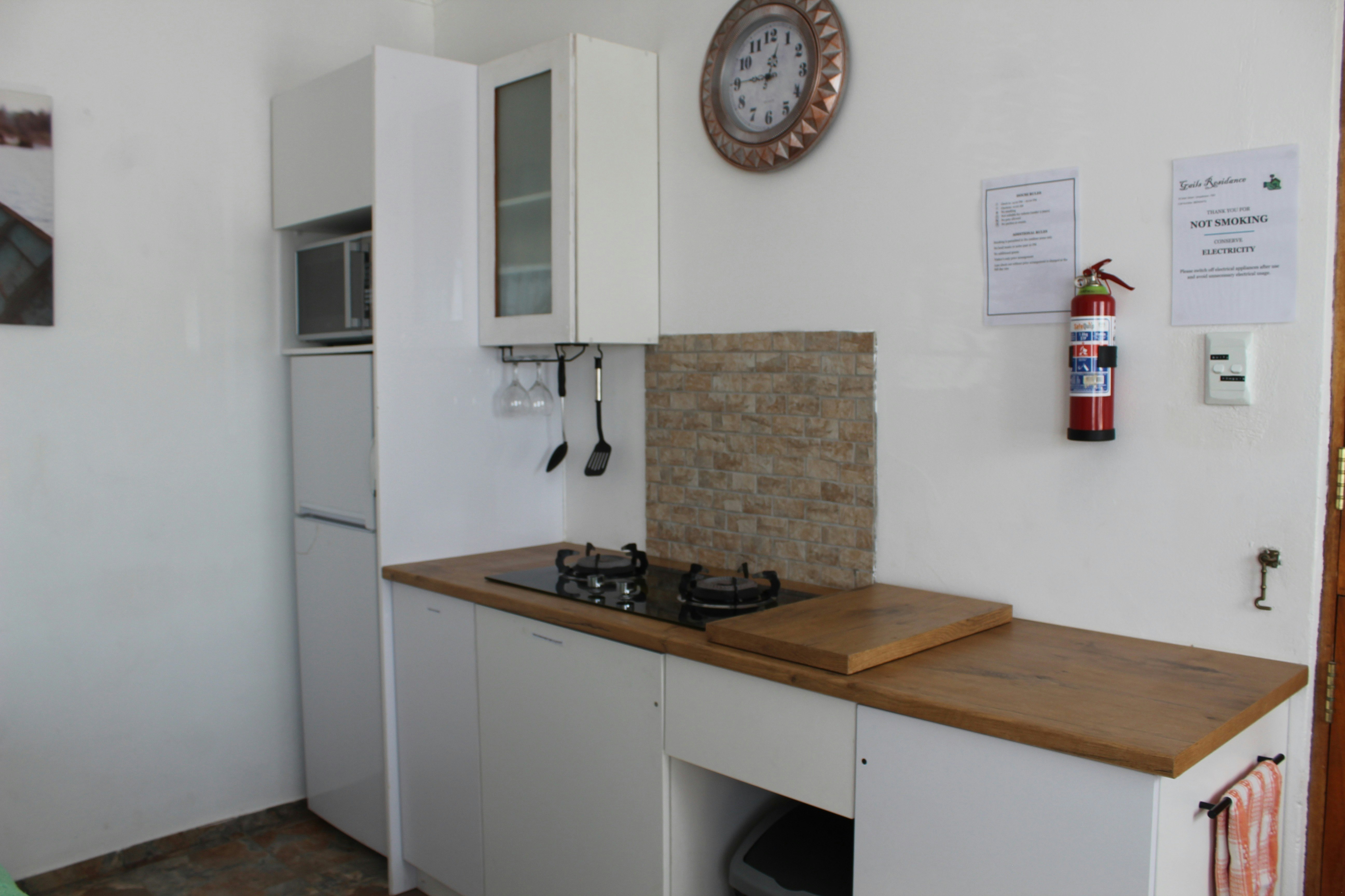 Elke kombuis is toegerus met 'n gasplaat, yskas en mikrogolf, asook tee- en koffiemaakgeriewe.
