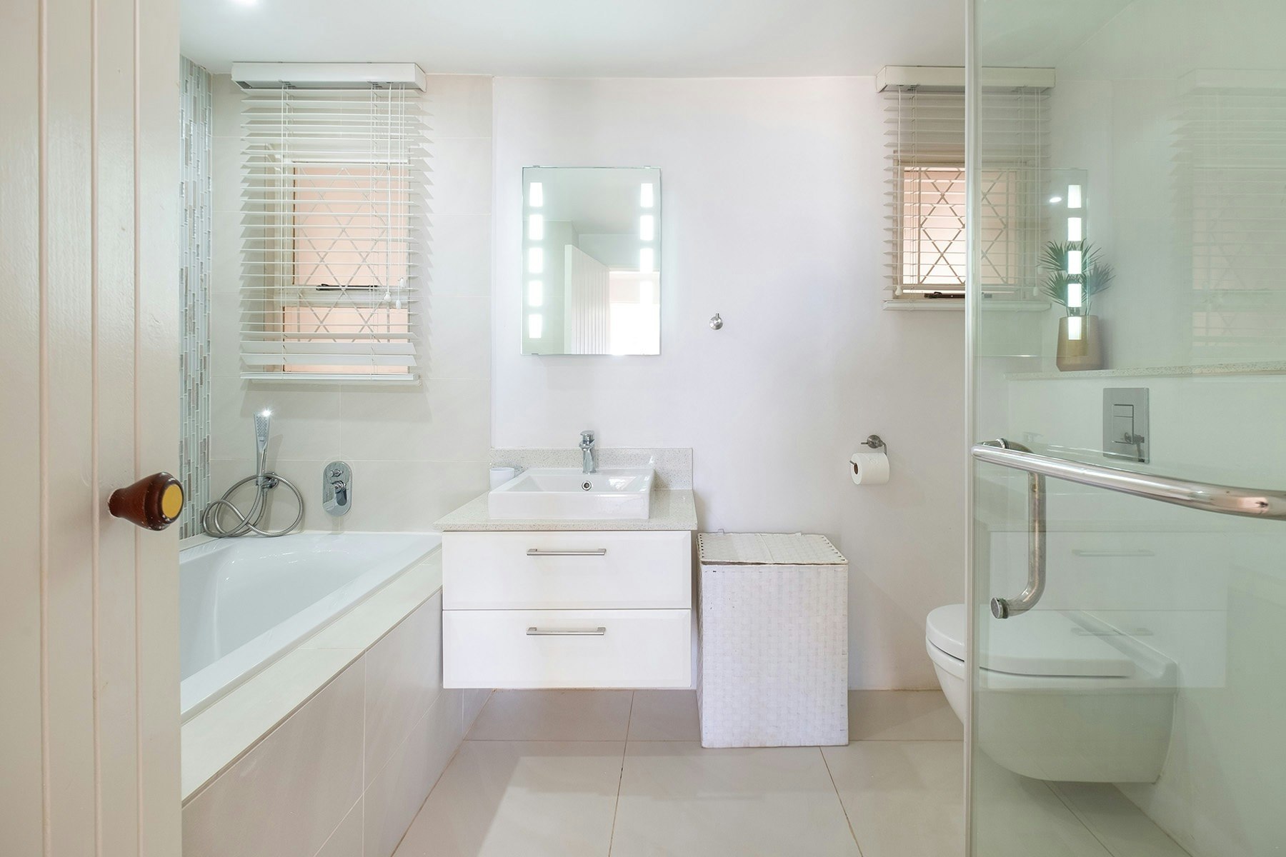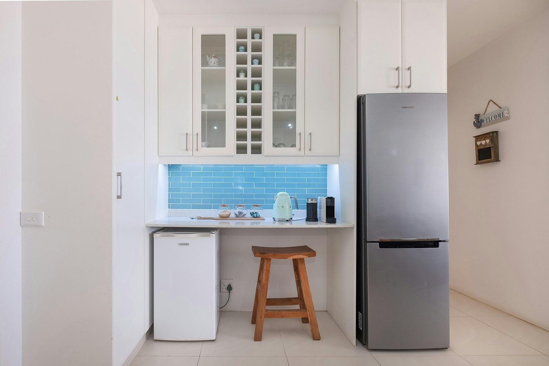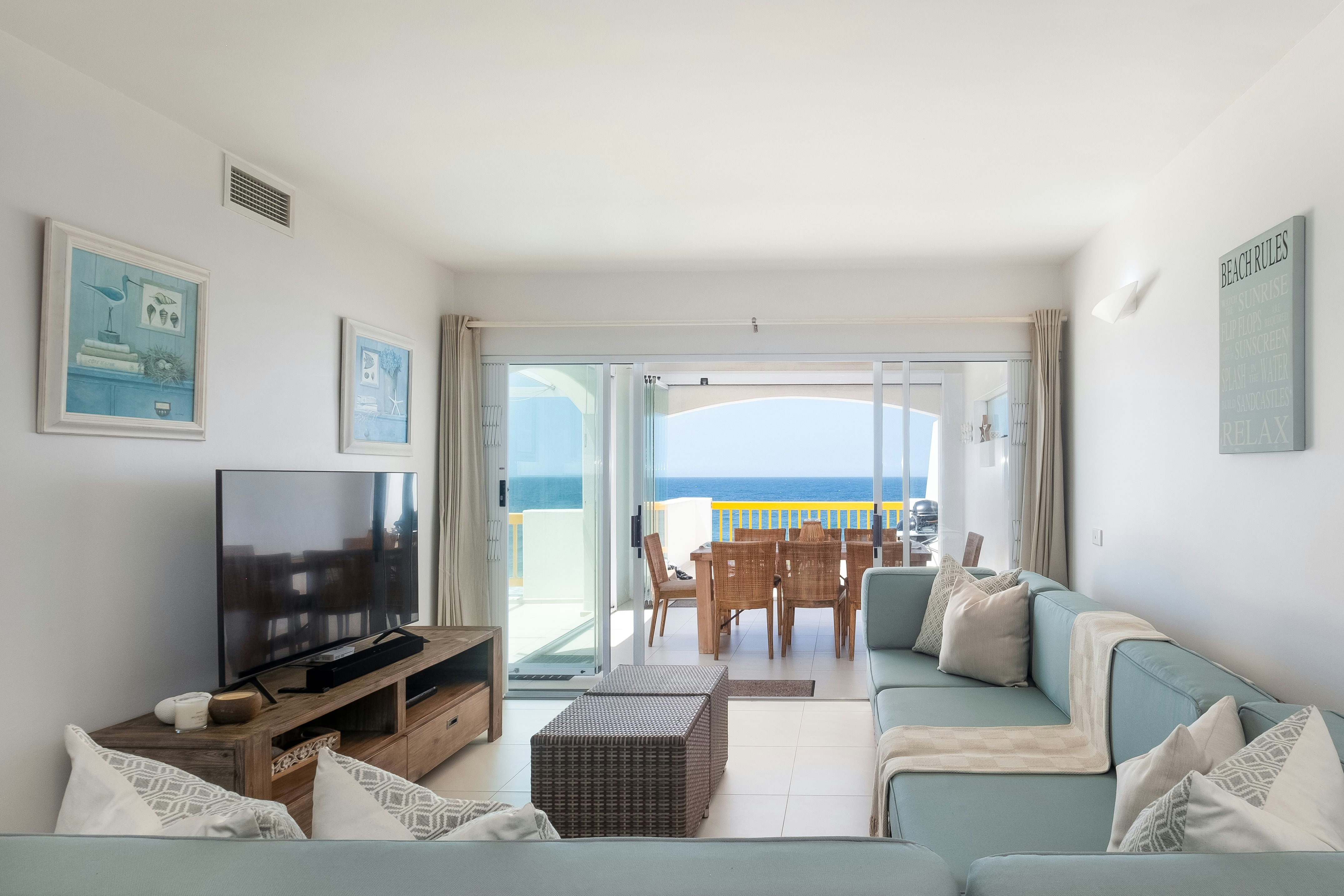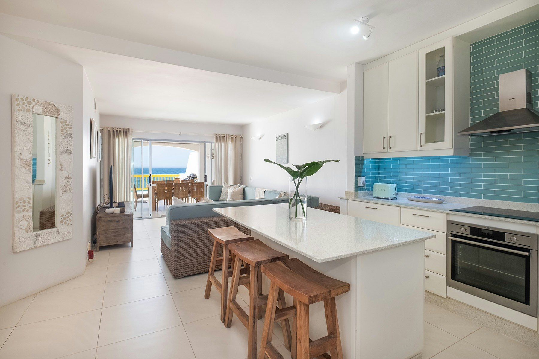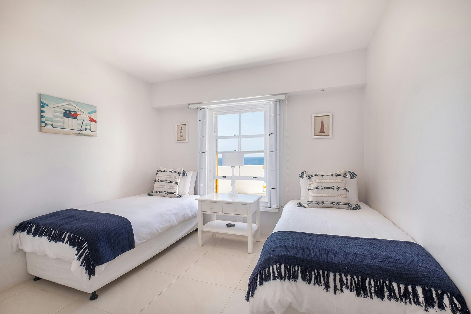 This modern, air-conditioned apartment comprises 3 bedrooms and 2 bathrooms, accommodating 6 adults and 2 children. The first bedroom is furnished with a king-size bed and has an en-suite bathroom fitted with a shower. This bedroom has a designated workstation and a small private balcony. The second bedroom is furnished with 2 single beds while the remaining bedroom is furnished with a double bed. These 2 bedrooms share a bathroom fitted with a bath and shower.