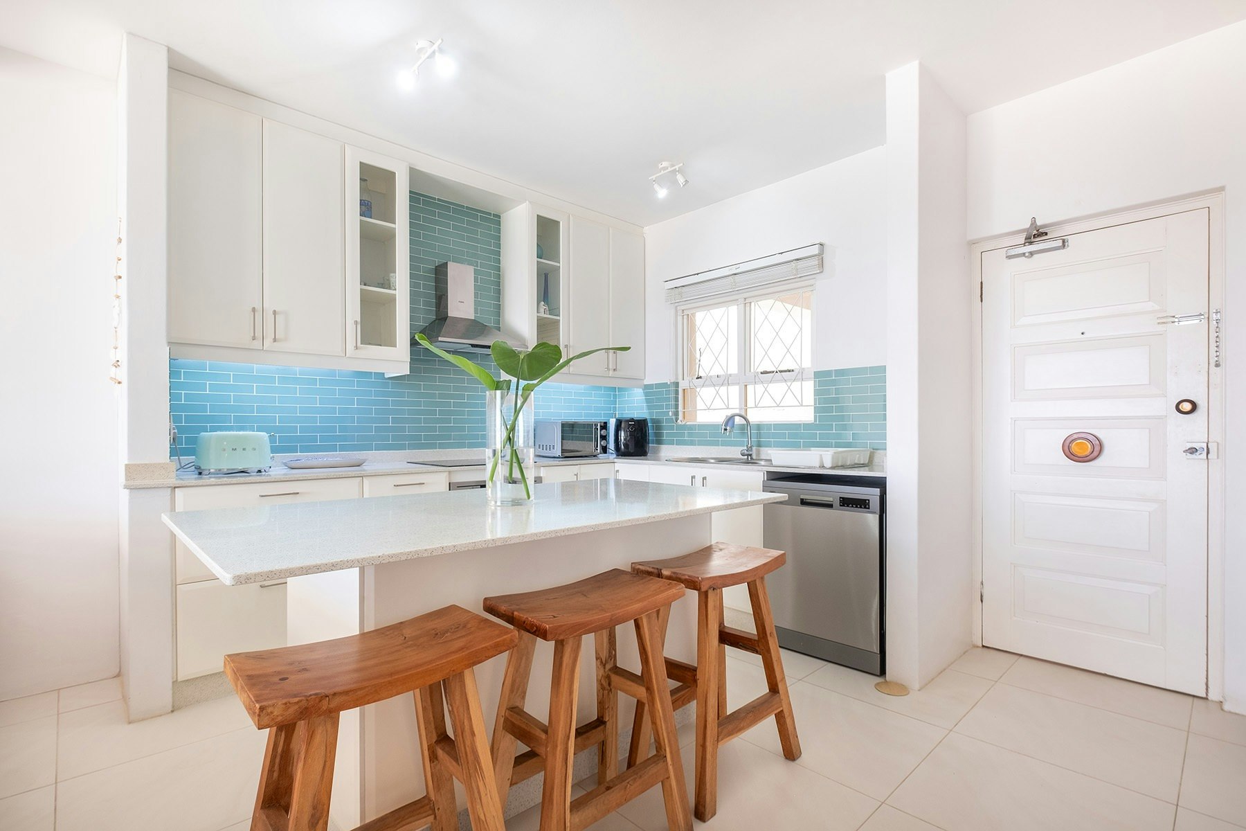 The large main balcony features 2 sun loungers, a Weber kettle braai, and a gas grill. The Santorini Estate has direct access to two stunning beaches. The first is the beautiful Perissa Beach immediately in front of the apartment, which offers privacy for Santorini guests even though it is next door to Ballito's main beach. Perissa Beach has a small tidal pool and offers swimming. The second option is the popular Thompson's Bay Beach, which features a tide pool and is safe for snorkelling.