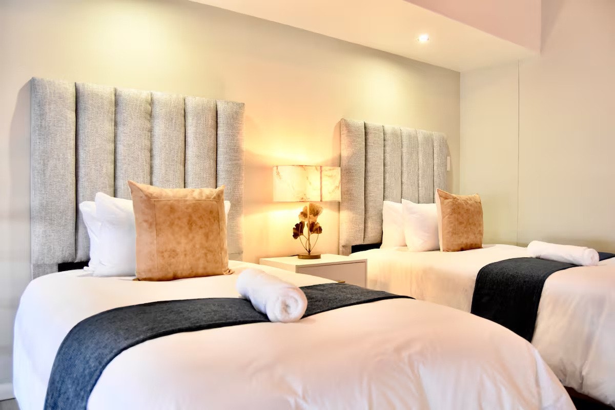 Hierdie woonstel bied slaapplek vir 4 gaste en bestaan uit 2 slaapkamers en 2 badkamers. Die eerste slaapkamer is gemaklik gemeubileer met 'n dubbelbed, terwyl die tweede slaapkamer 2 driekwartbeddens bevat. Elke badkamer is toegerus met 'n stort, toilet en wasbak. Linne en badhanddoeke word voorsien.