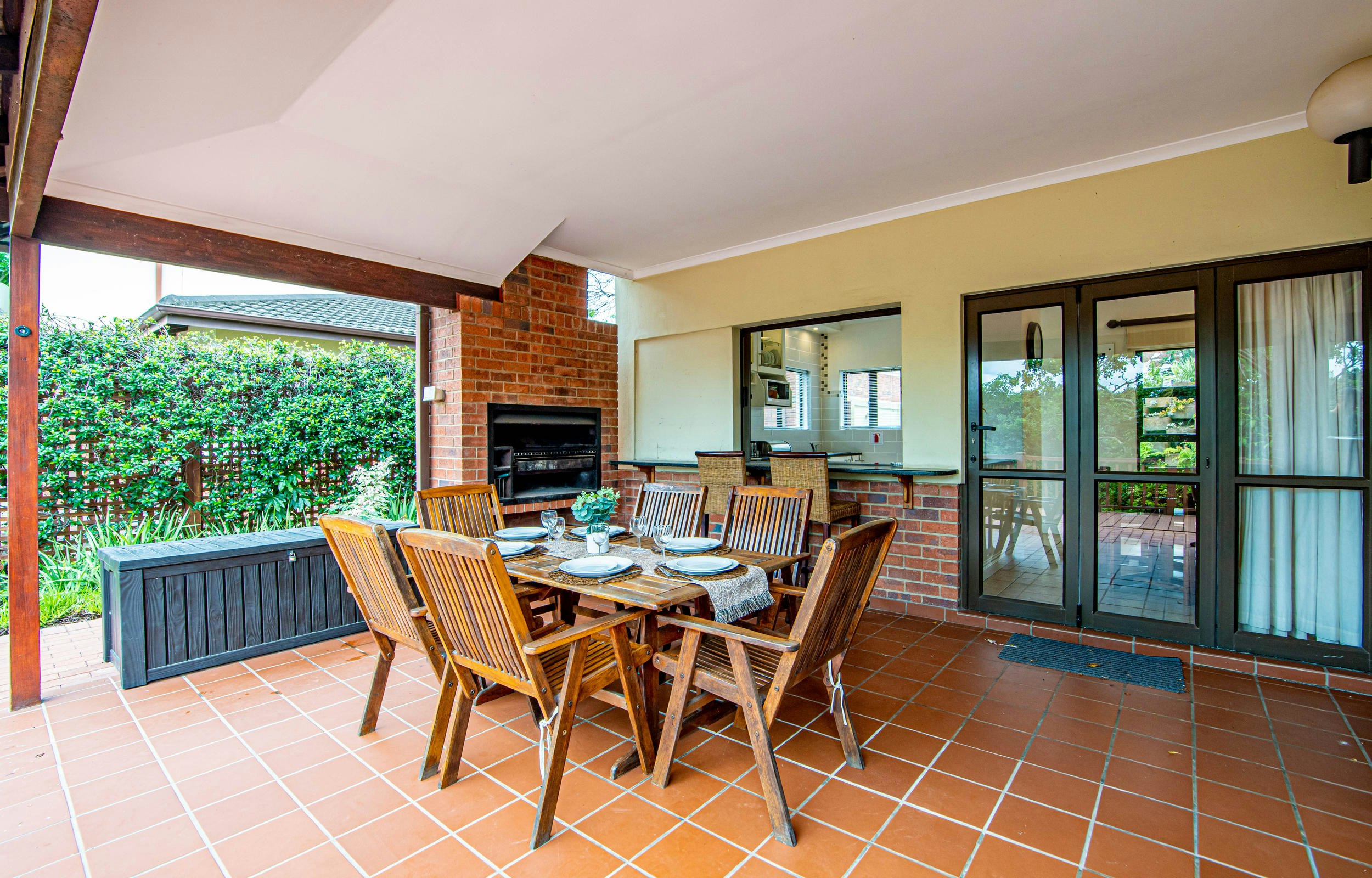 Buite het die huis 'n onderdakstoep met meubels en 'n ingeboude braai en Jacuzzi. Die Jacuzzi is slegs in die somermaande beskikbaar vir gebruik.