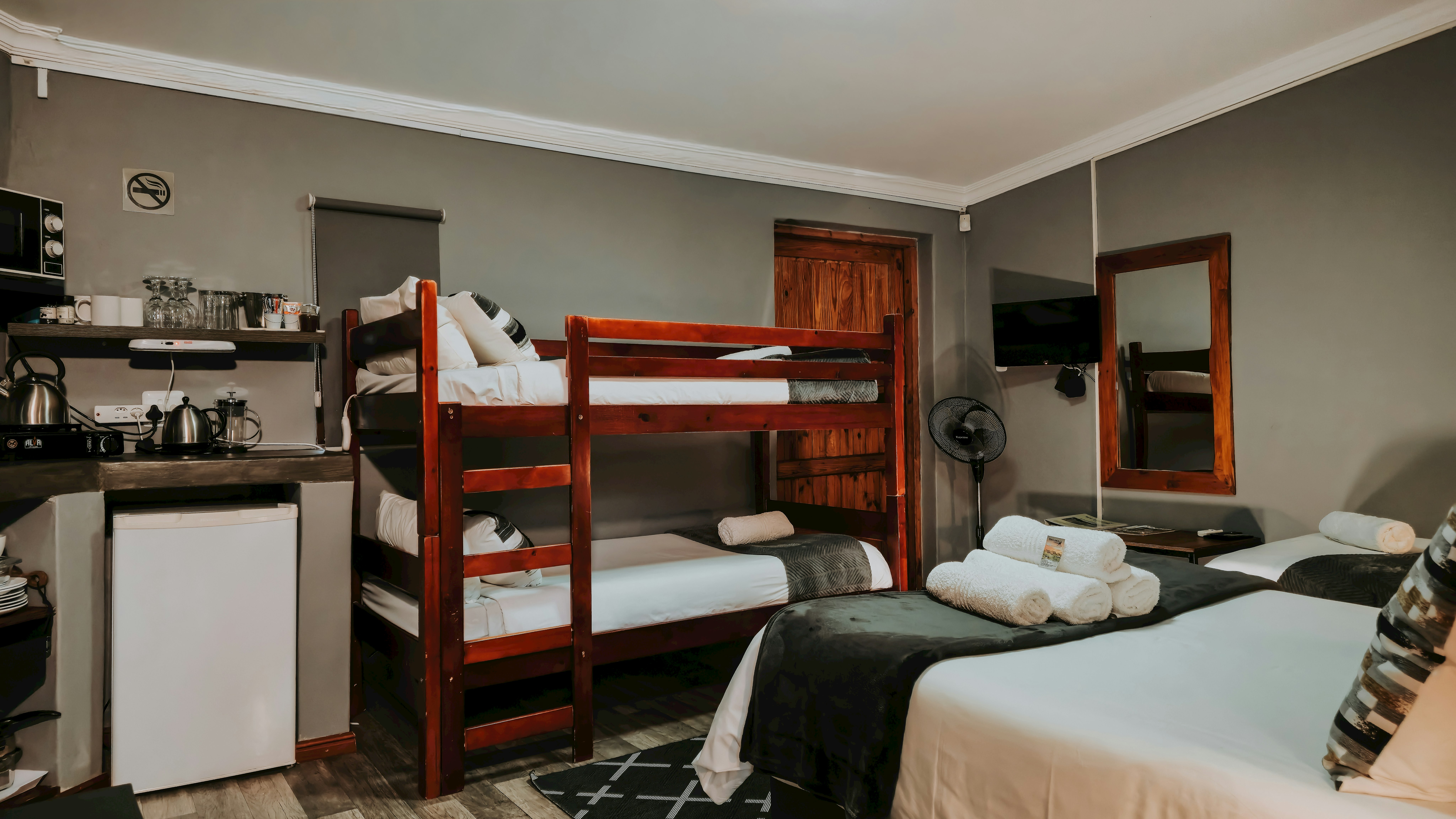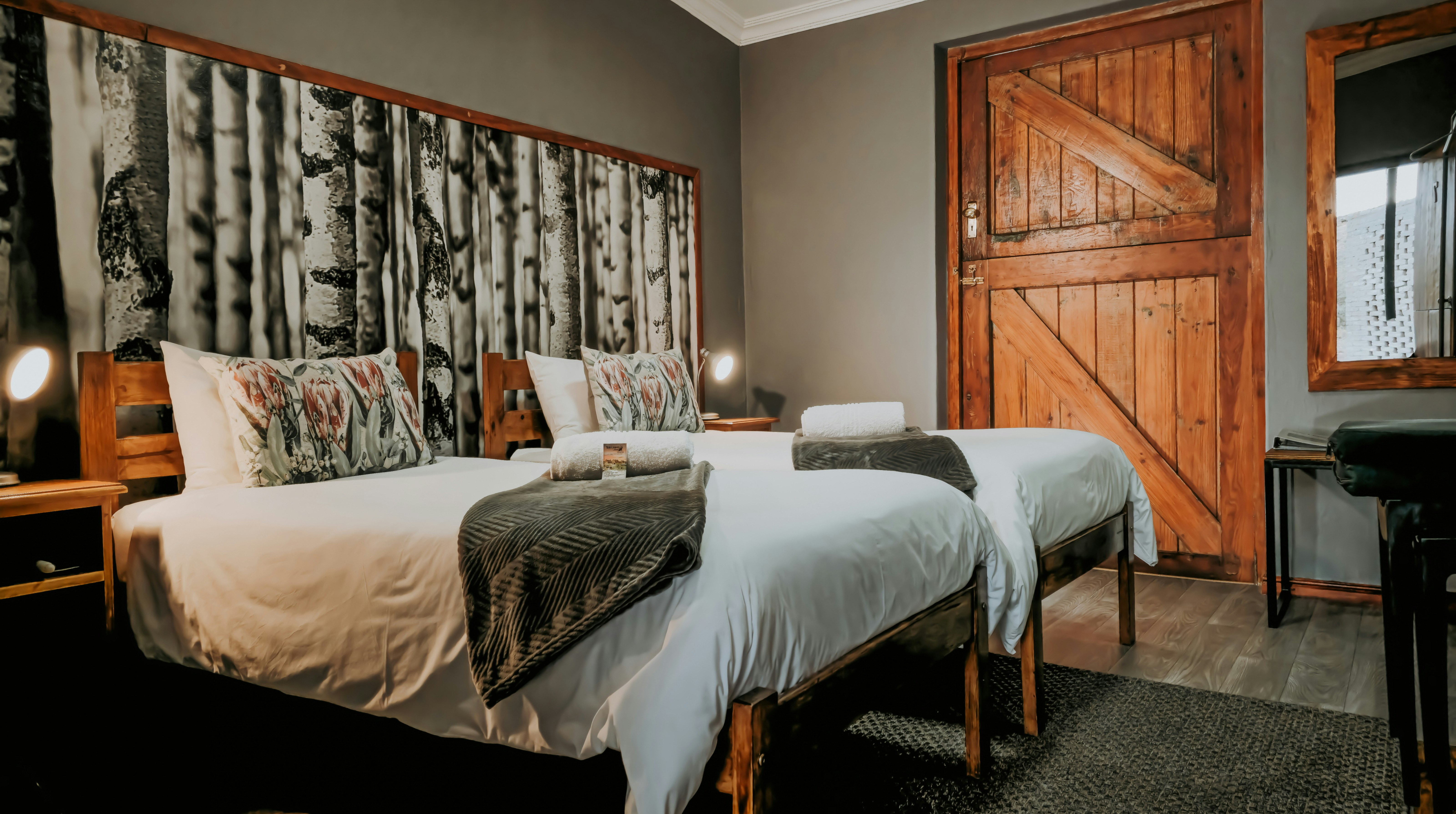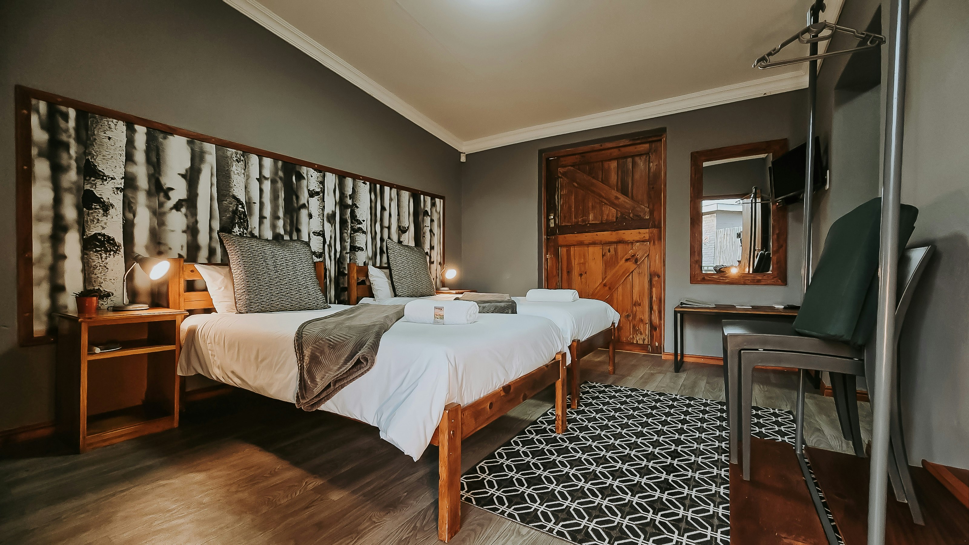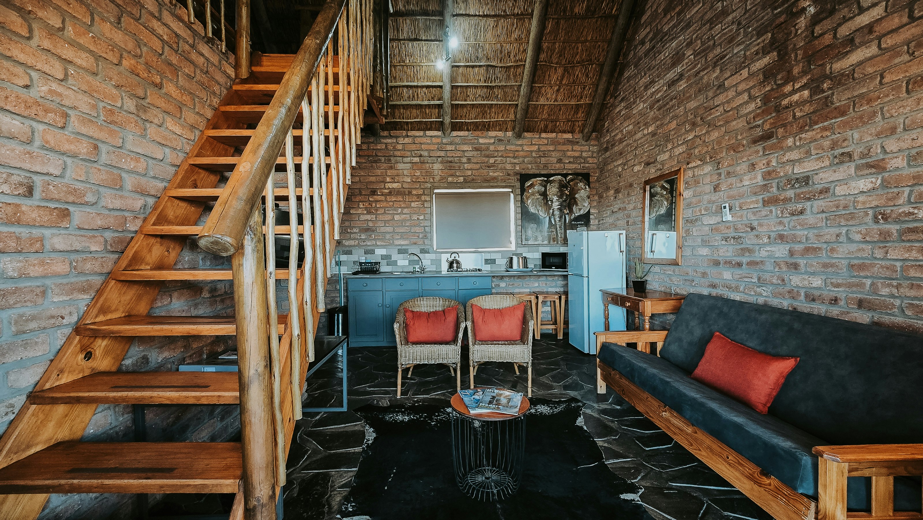 Accommodation comprises fully-equipped chalets close to the main building, each with twin or double beds, a fold-out double sleeper couch, 2 single beds in the loft and private bathrooms, with either a bath and/or shower. Amenities include a smart TV and free Wi-Fi access. DStv is also available in the chalets. Air-conditioning in all rooms/units. Up to 6 people can be accommodated per self-catering chalet.