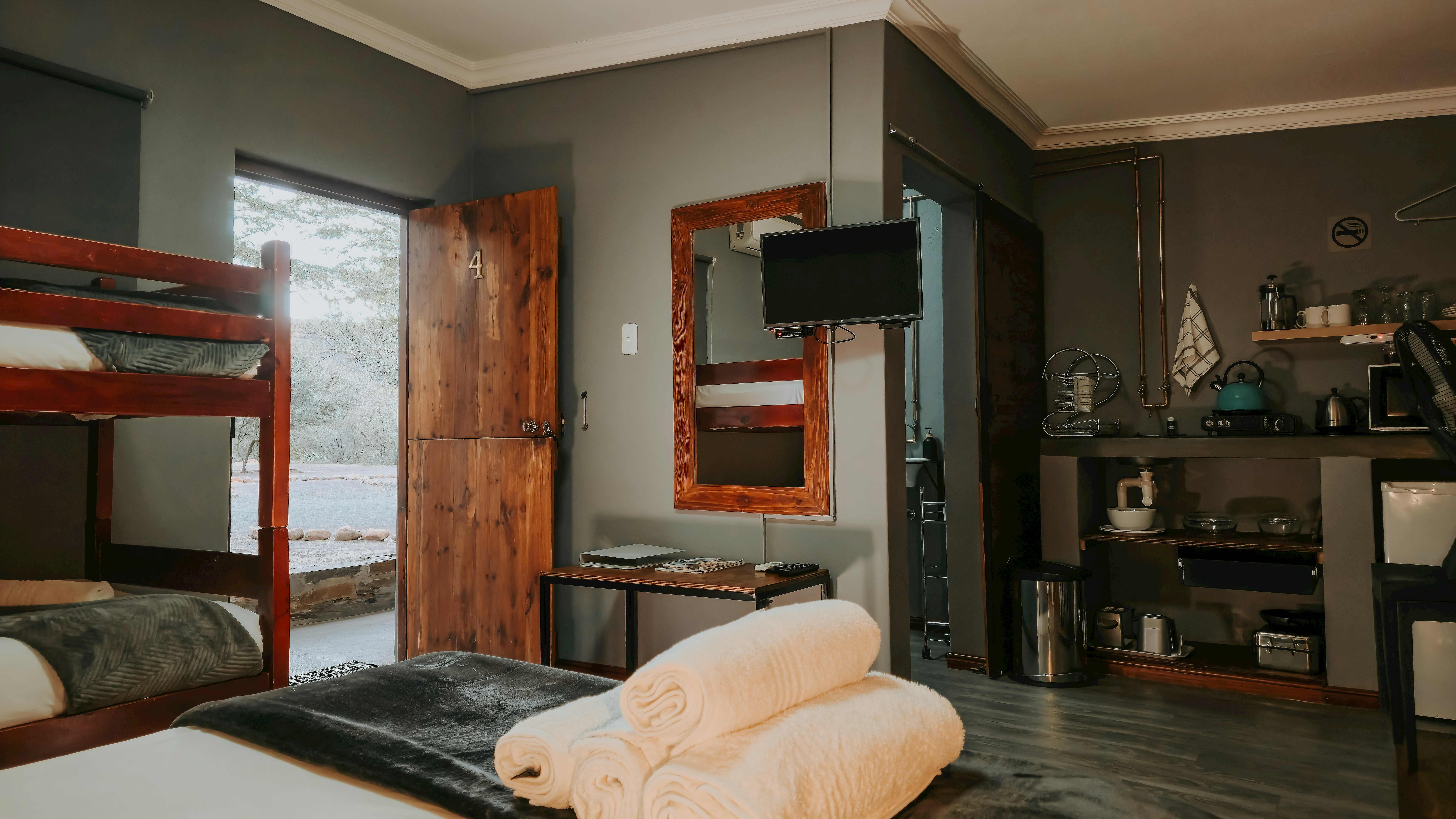 Other room types include the tastefully decorated Stable Rooms (Standard Double and Family Rooms). These rooms are private and isolated, situated below the Stolsriverdam, 4km away from the main building. The double rooms and family rooms are equipped with a smart TV along with free Wi-Fi, OpenView, air-conditioning, and kitchenette. Each unit features a private bathroom with free toiletries and a hairdryer. Braai facilities are available.
