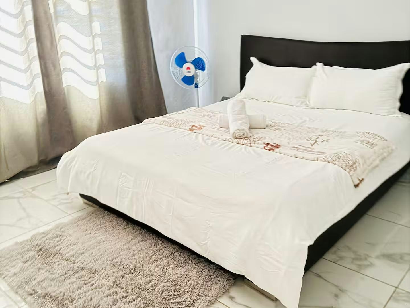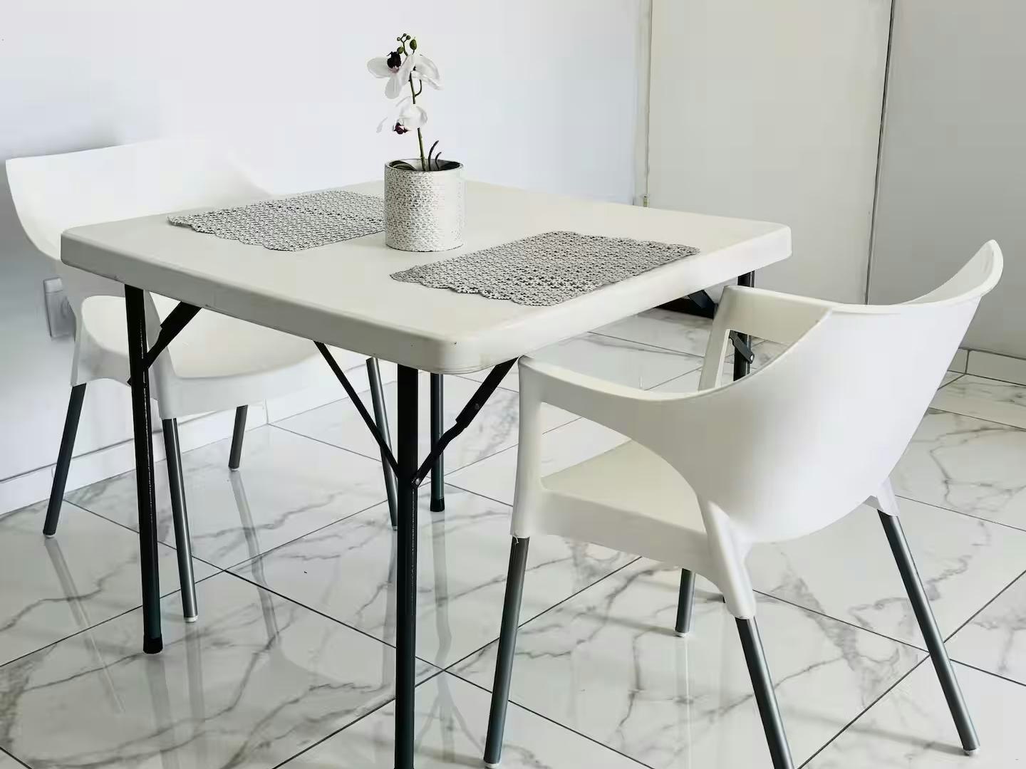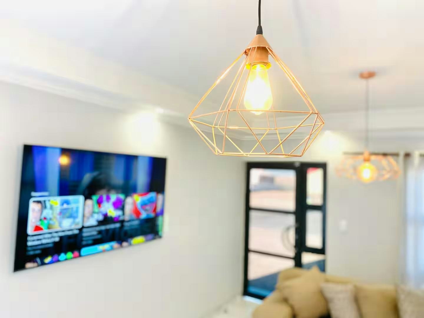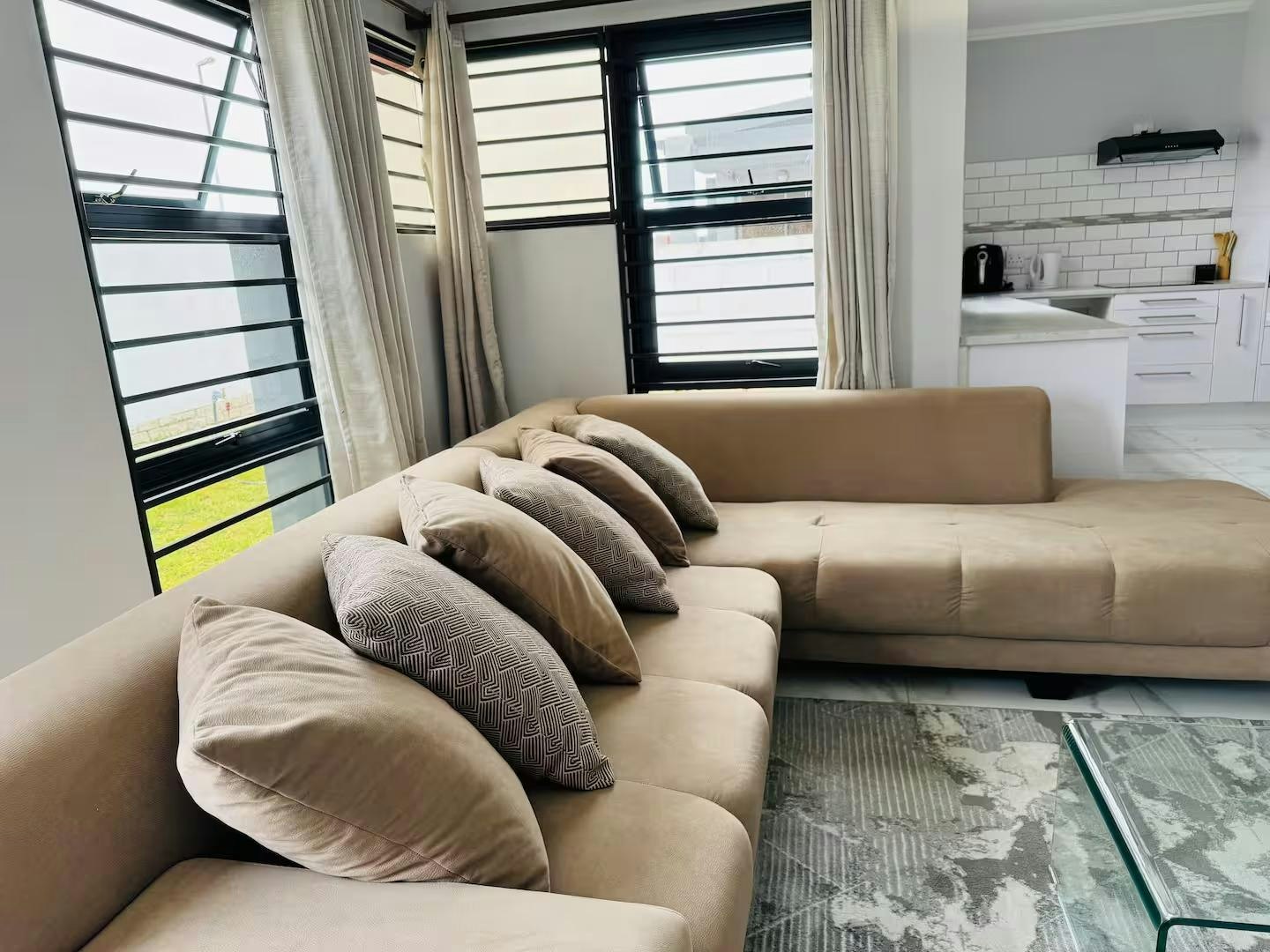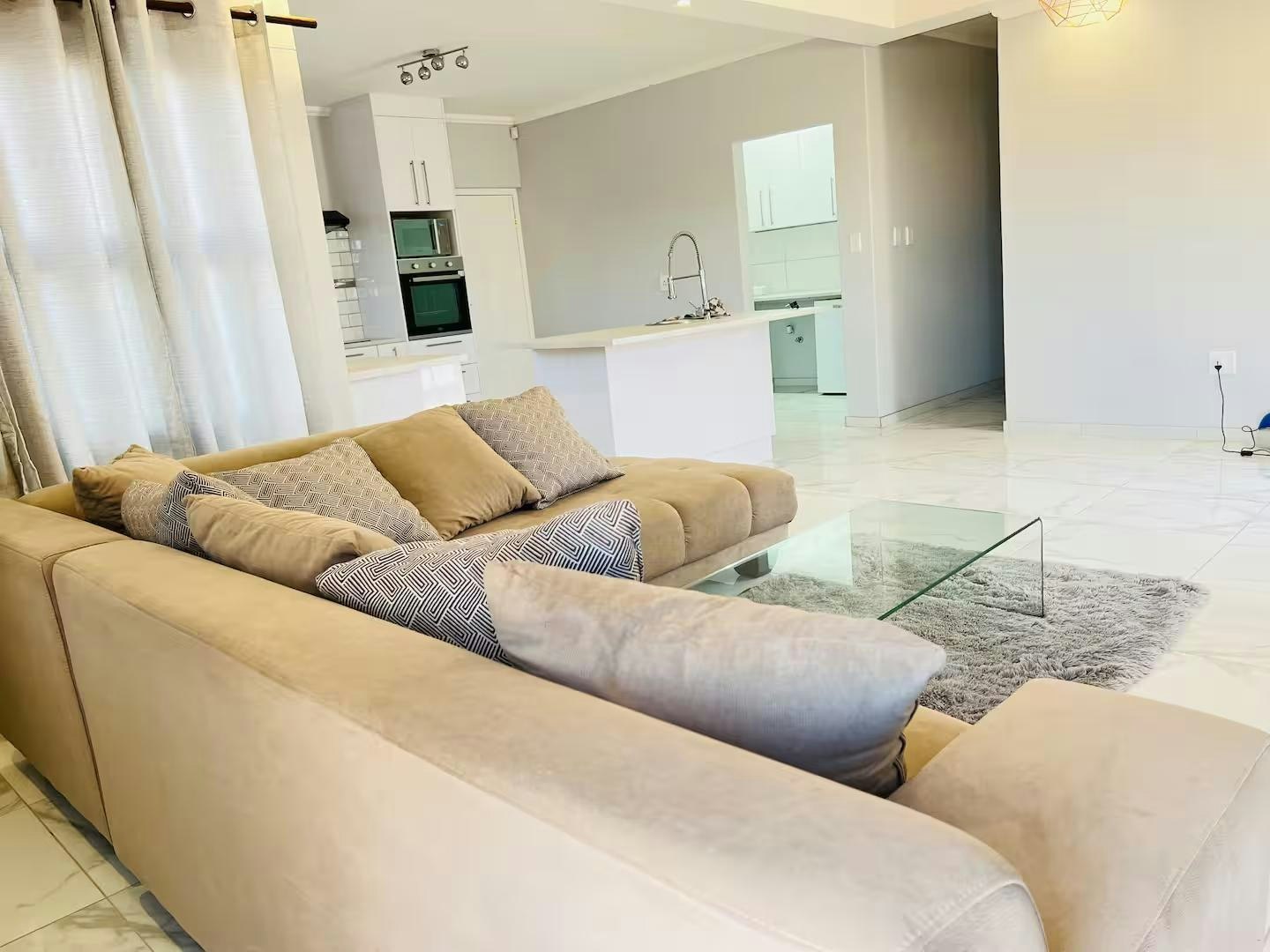 Die oopplan-leefruimte beskik oor 'n aangewese werkstasie, 'n eetarea en 'n sitkamer met 'n slim-TV gelaai met Netflix en 'n gemaklike rusbank. Die kombuis is volledig toegerus met 'n yskas-vrieskas, stoof, oond en mikrogolfoond.