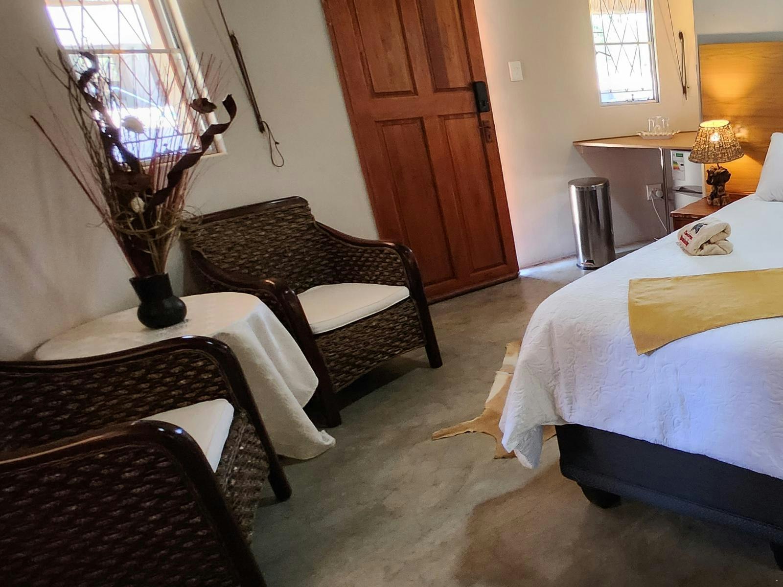 The accommodation comprises 3 chalets and the free-standing bush house, located separately from the main lodge. Each thatch-roof chalet is air-conditioned and contains a king-size bed that can be converted to 2 single beds. The en-suite bathrooms are fitted with a shower. A bar fridge, coffee- and tea-making facilities, and free Wi-Fi are available in each chalet.