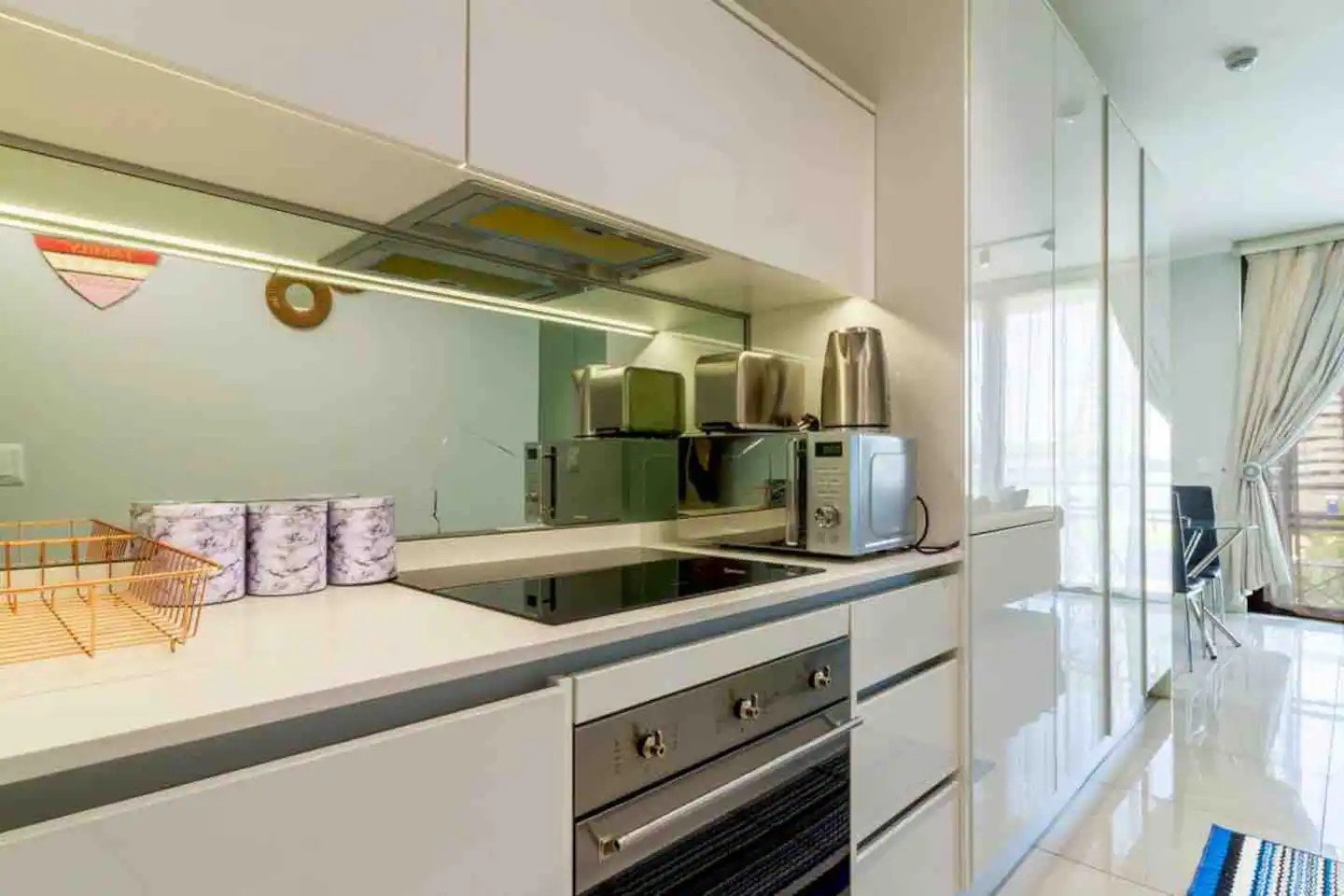 Die gerieflike oopplan-leefarea beskik oor 'n kombuis wat met 'n stoof, mikrogolf, oond, eetgerei, breekware, 'n yskas en 'n wasmasjien toegerus is. Langs die kombuis is daar 'n etenstafel met sitplek vir 2 en 'n sitarea met 'n gemaklike rusbank en 'n TV teen die muur. Gratis WiFi word voorsien.